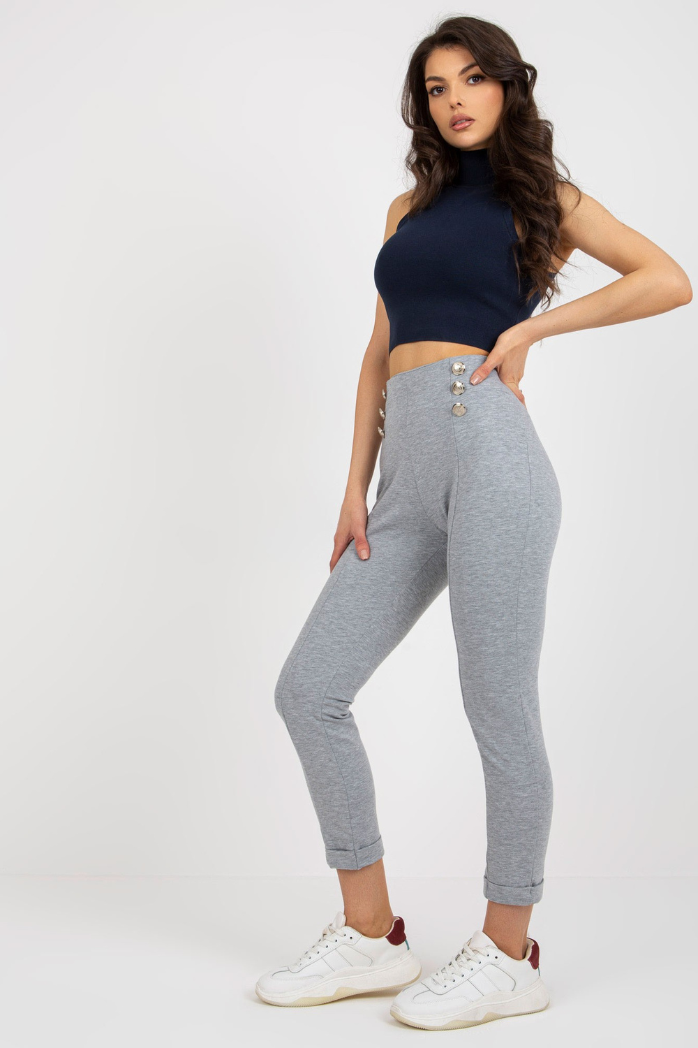 Pelēkas kokvilnas treniņbikses bez aizdares.