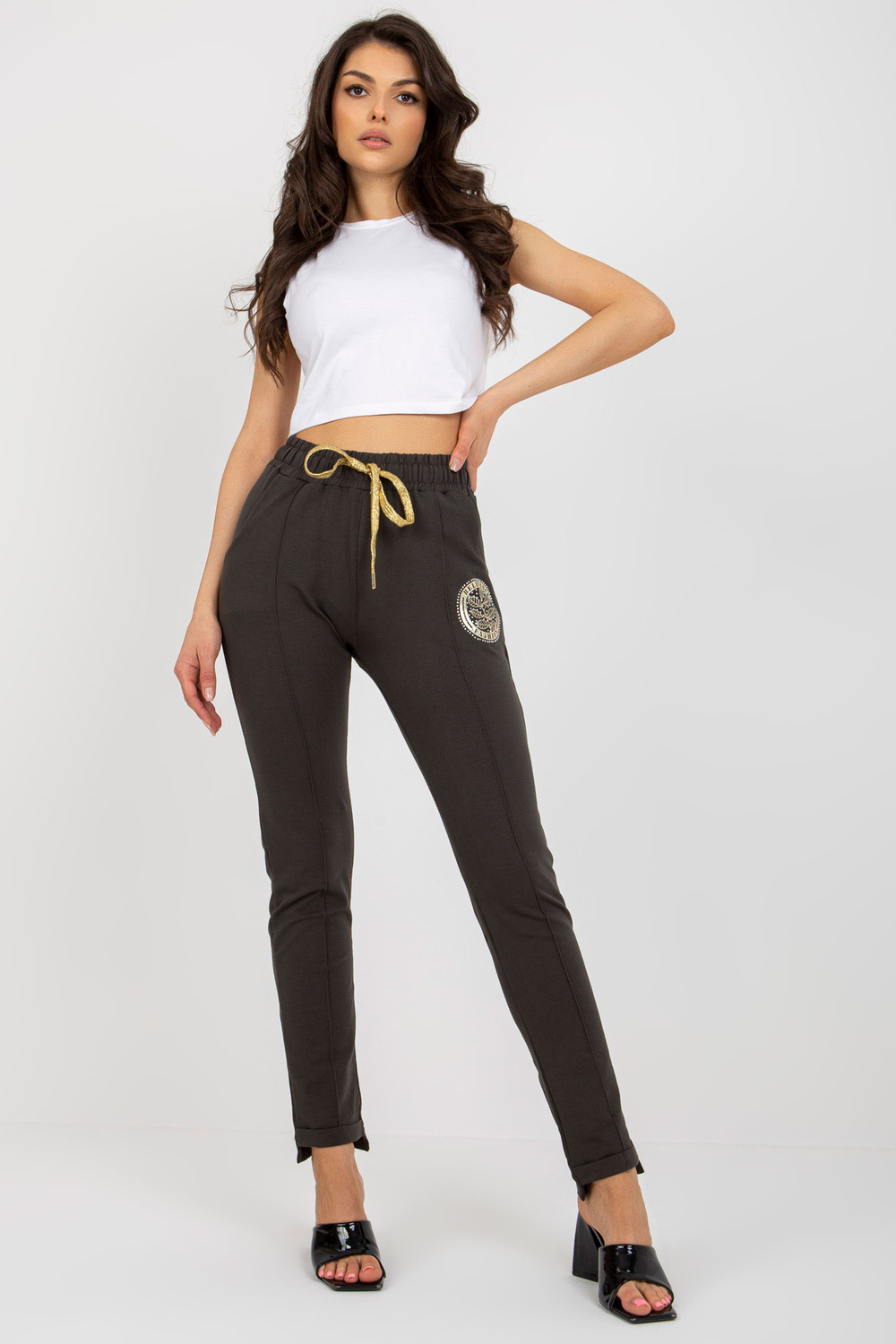 Khaki krāsas kokvilnas treniņbikses ar kabatām.