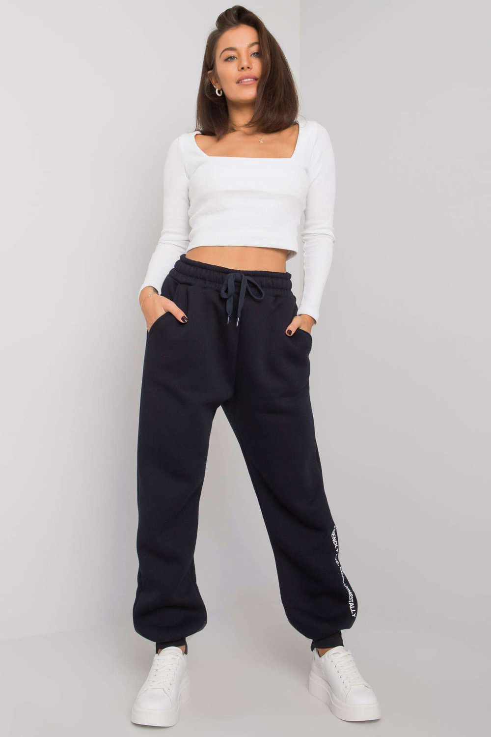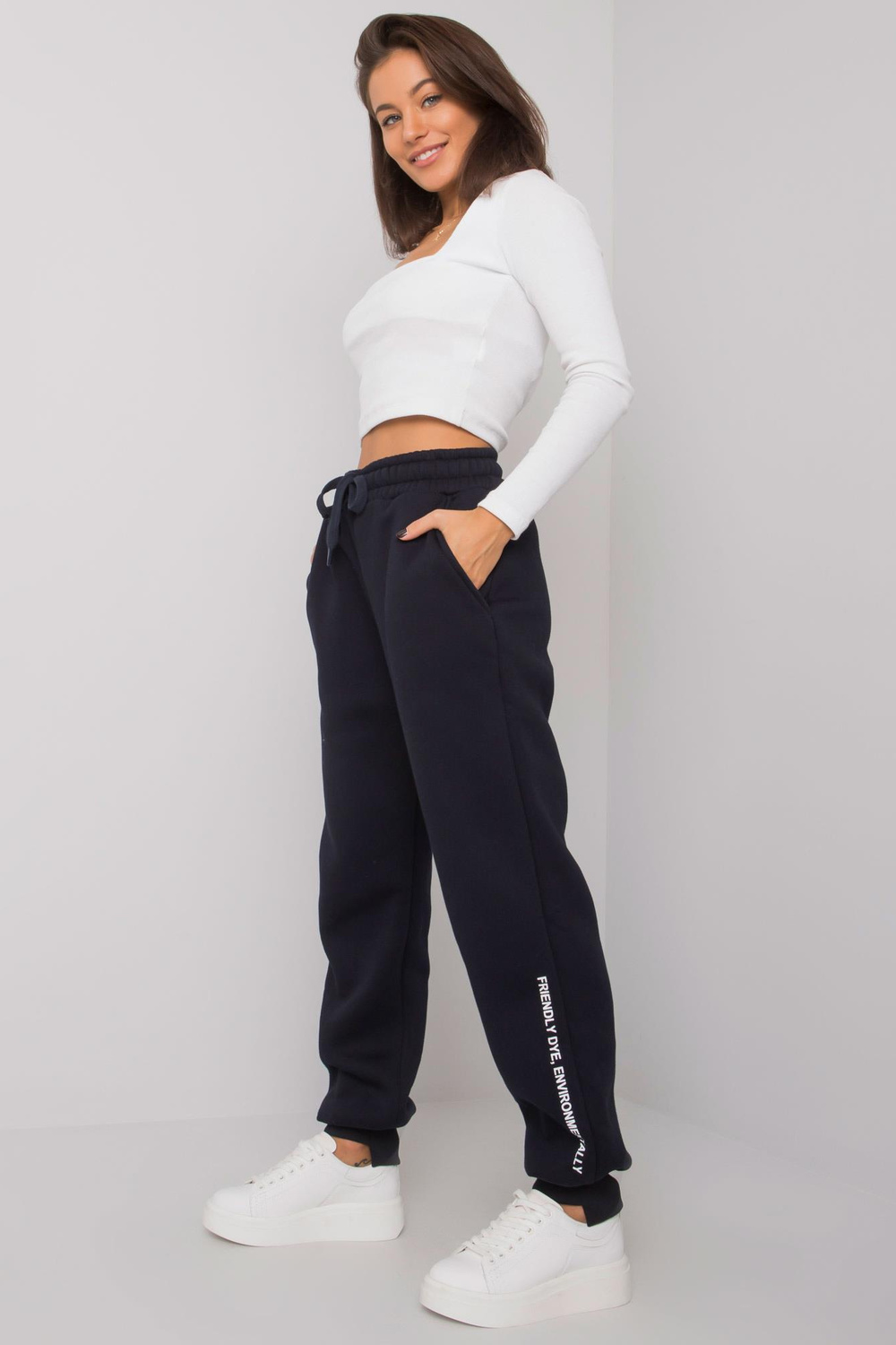 Navyblue sieviešu treniņbikses Atlanta. materiāla sastāvs: 90% kokvilna, 10% elastāns mazgāšanas metode: mazgāšana veļasmašīnā 30°C Produkta kods: RV-DR-7237.81 dominējošais raksts: bez raksta Stils: ikdienišķs, sporta krekls gadījumā: ikdienišķs, ārpus pilsētas, pastaigāties Themodel