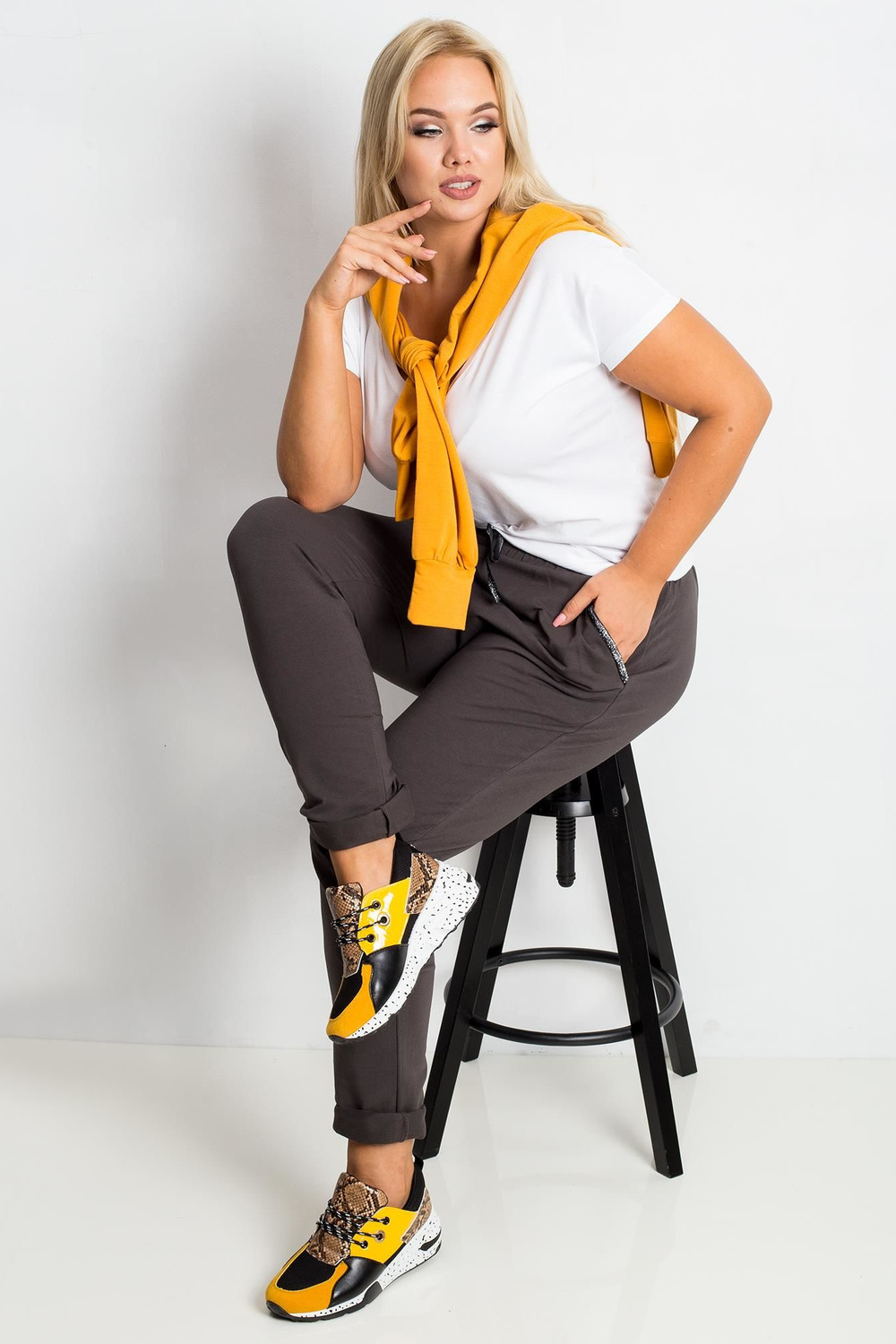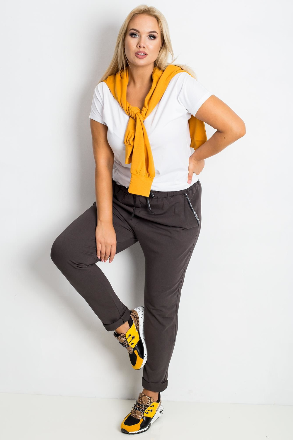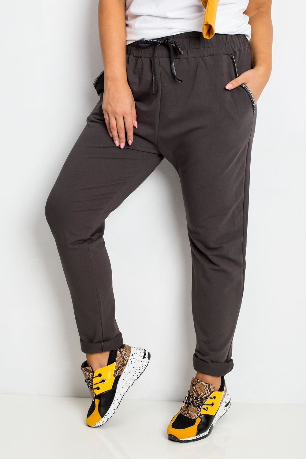 Kaķa krāsas kokvilnas bikses lielākam izmēram.