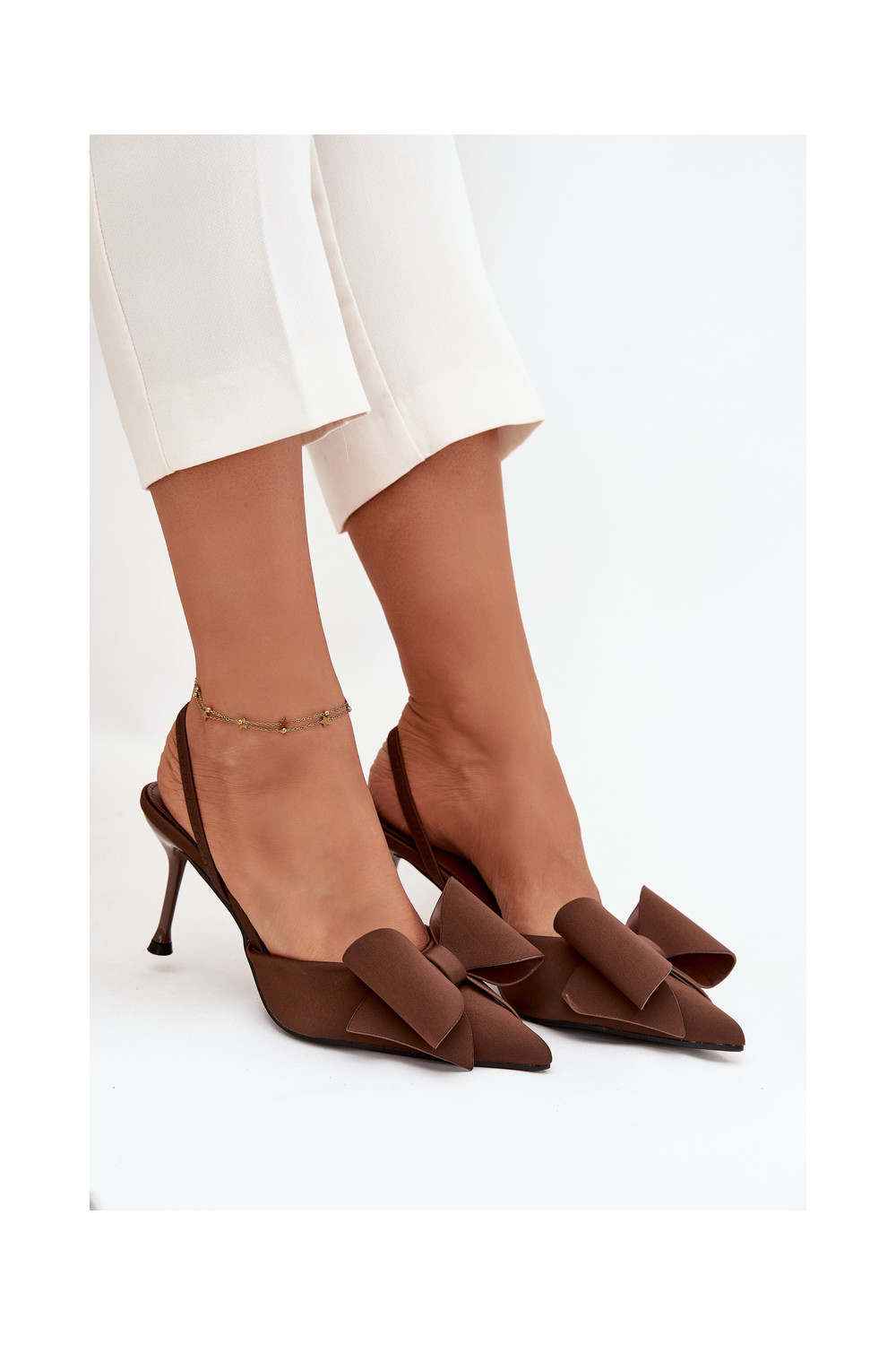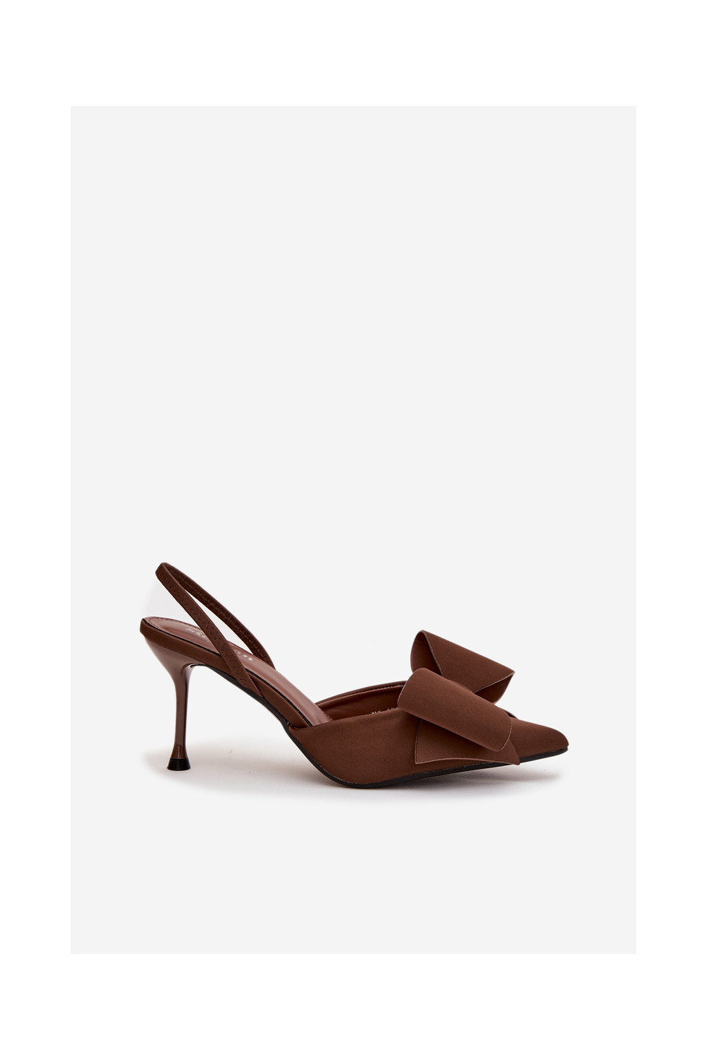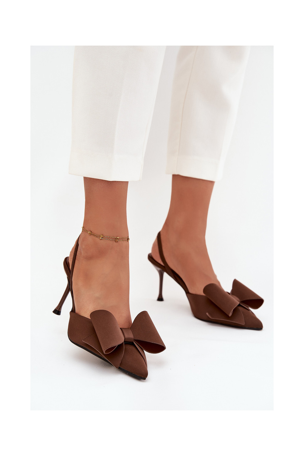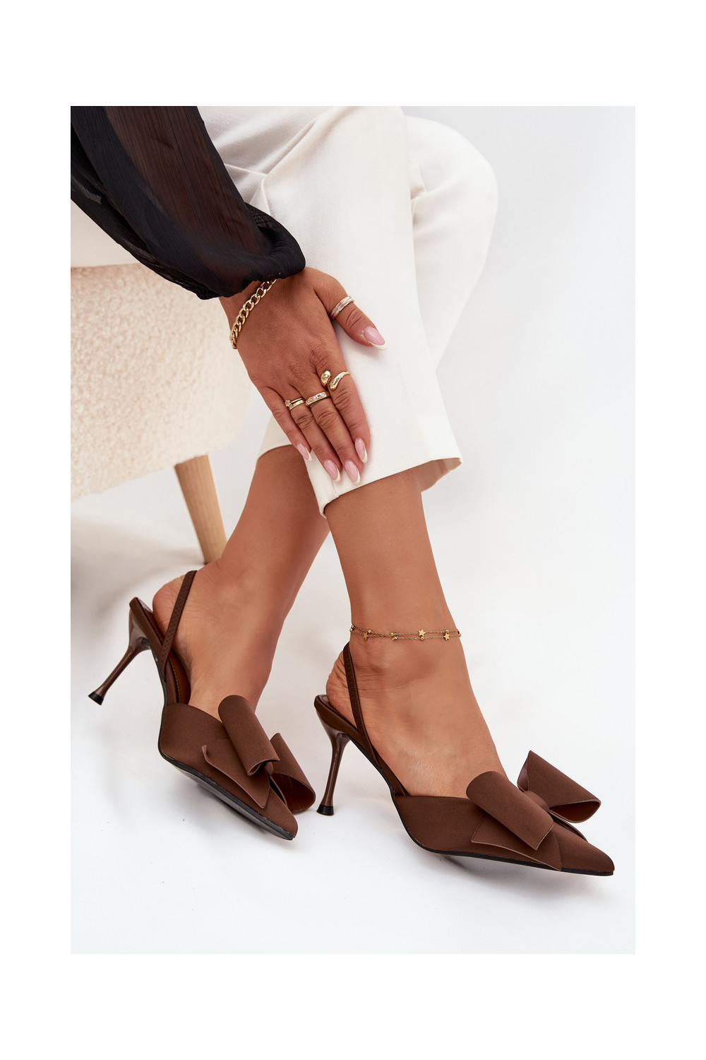 Augstpapēžu apavi ar atvērtu papēdi un lentīti brūnā krāsā Eklevia