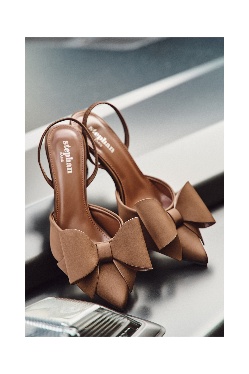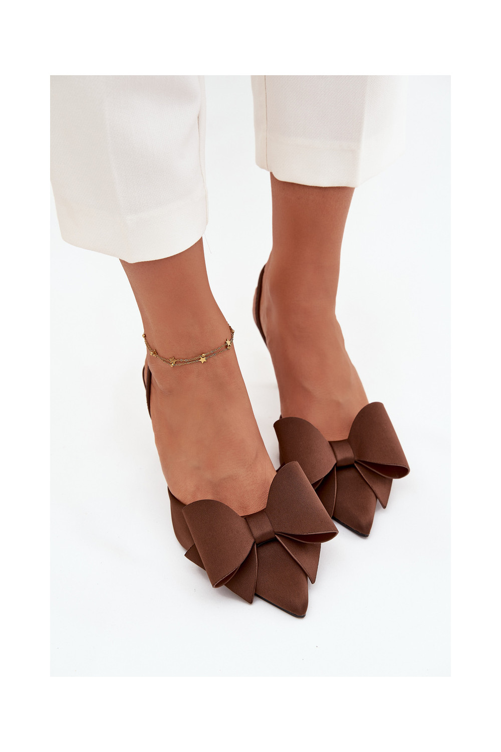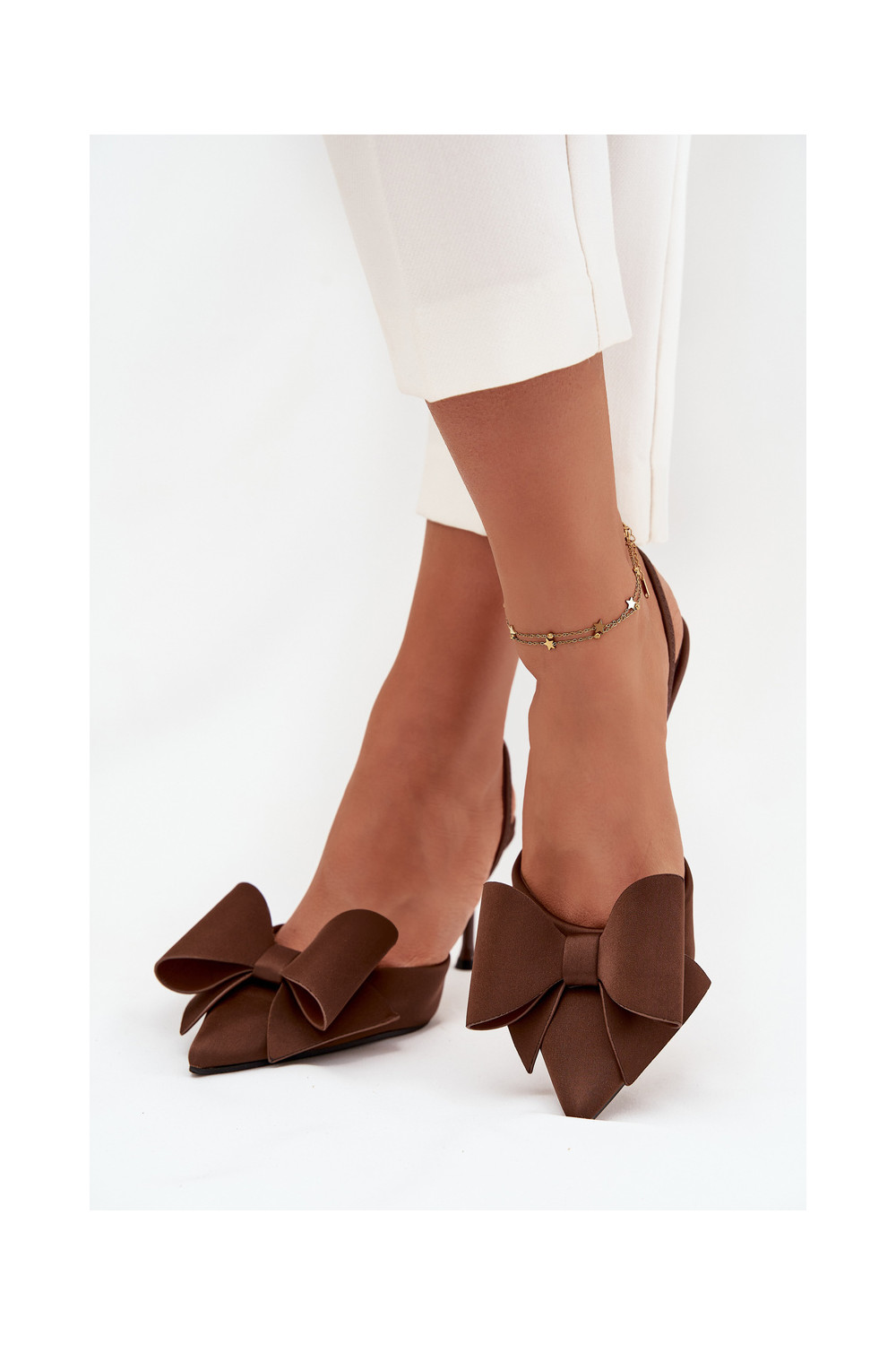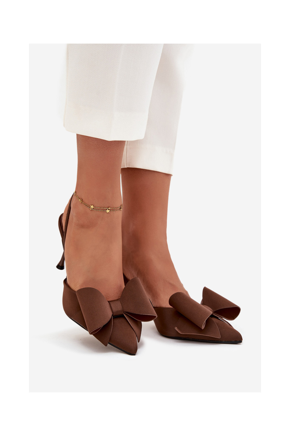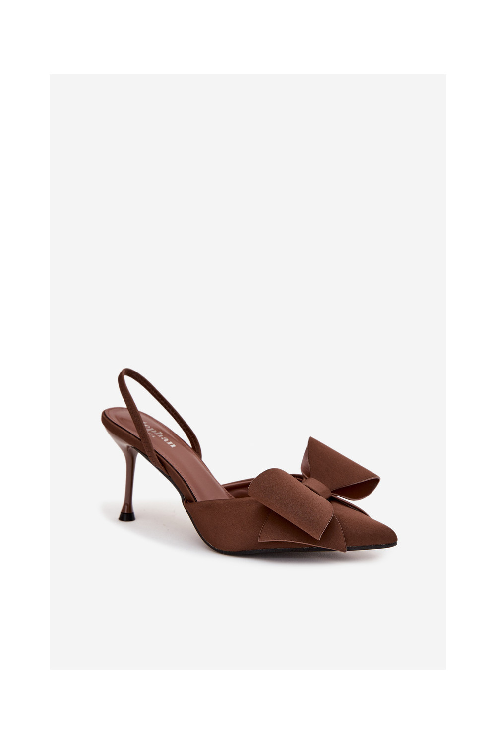 Augstpapēžu apavi ar atvērtu papēdi un lentīti brūnā krāsā Eklevia