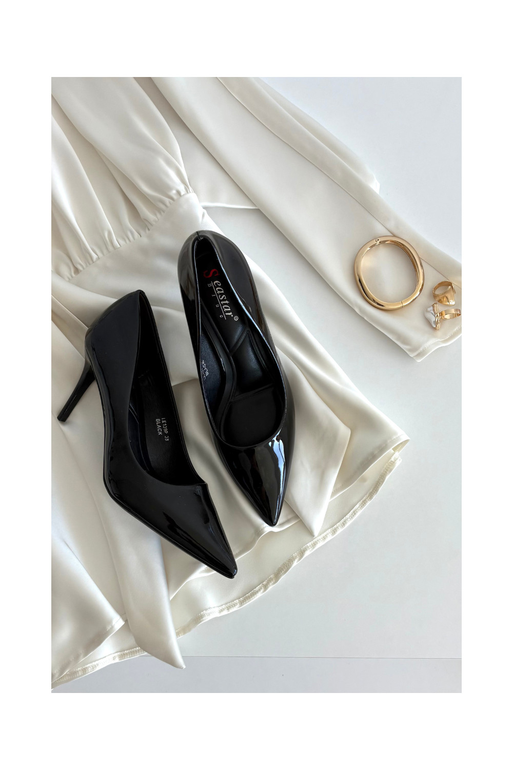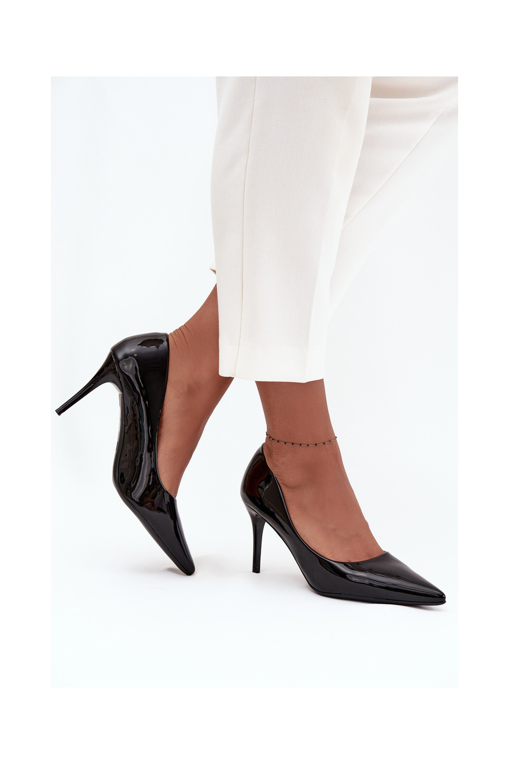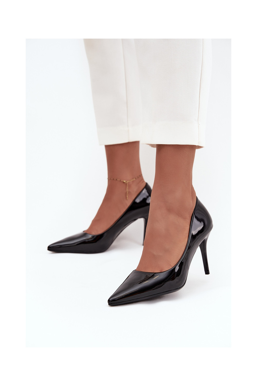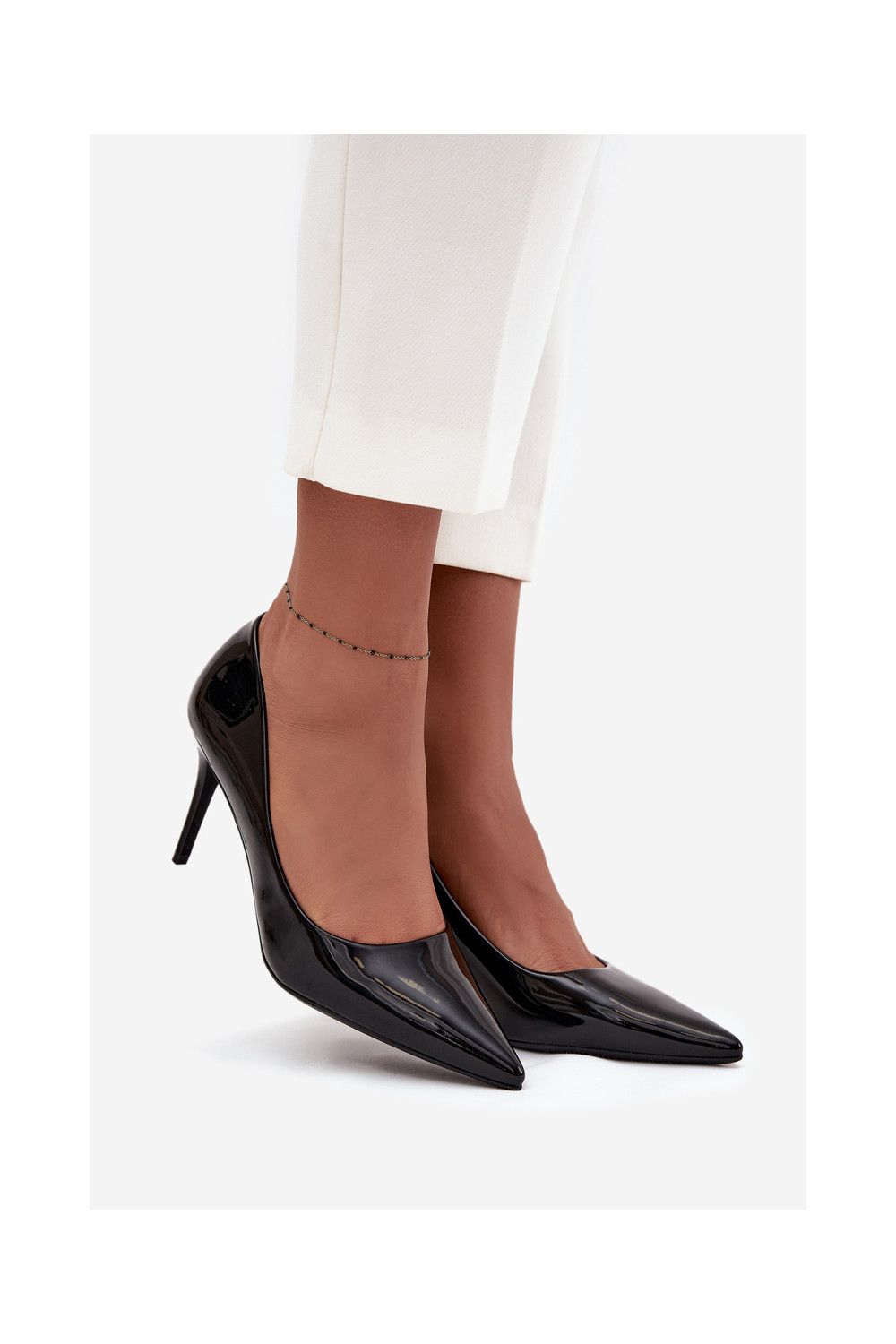 Sieviešu lakotie augstpapēžu kurpes „Jadira" ar smailiem galiem, melnā krāsā