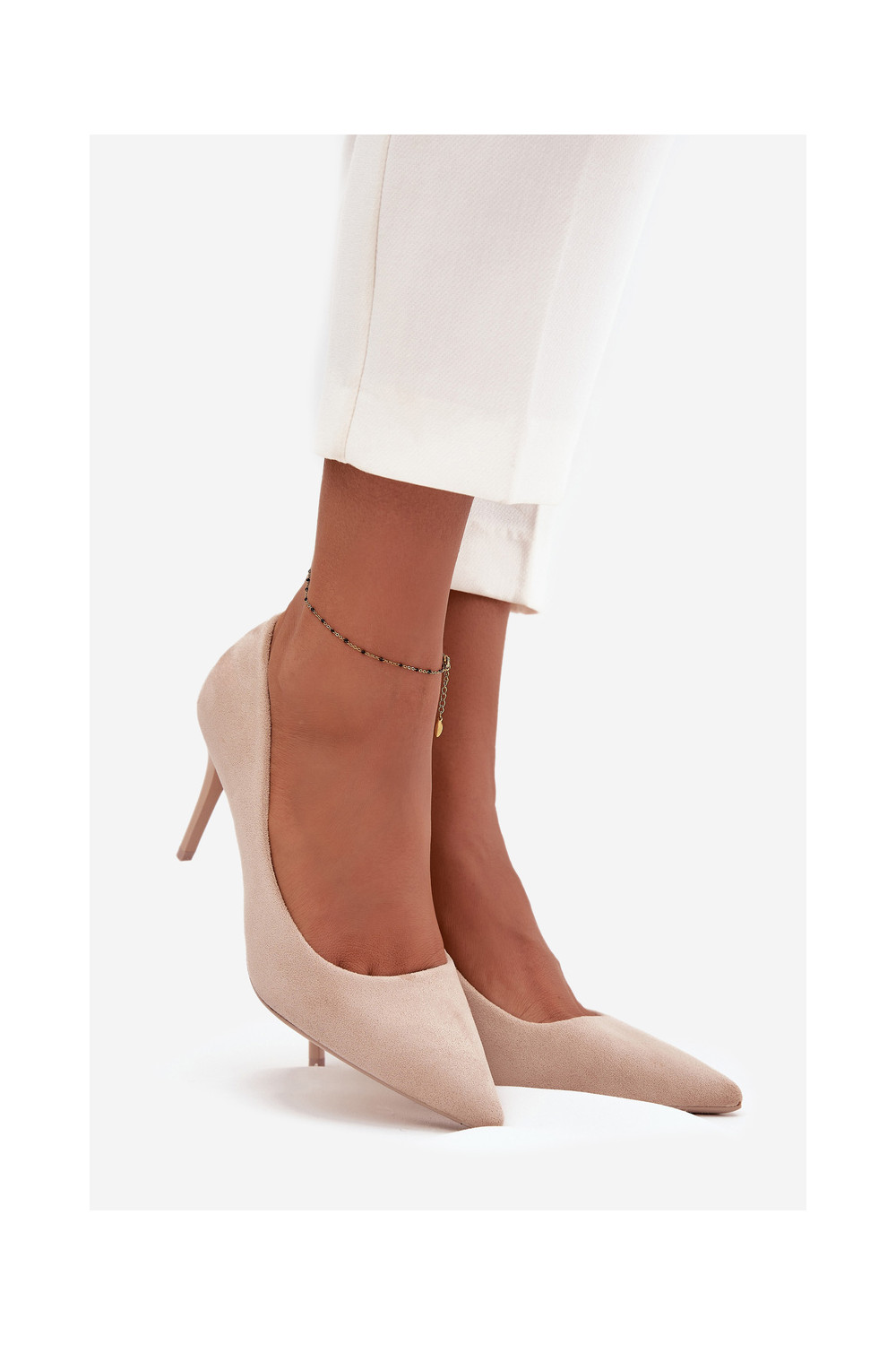 Sieviešu augstpapēžu kurpes „Elvessa" no ekoloģiskā zamšā, smilšu krāsā