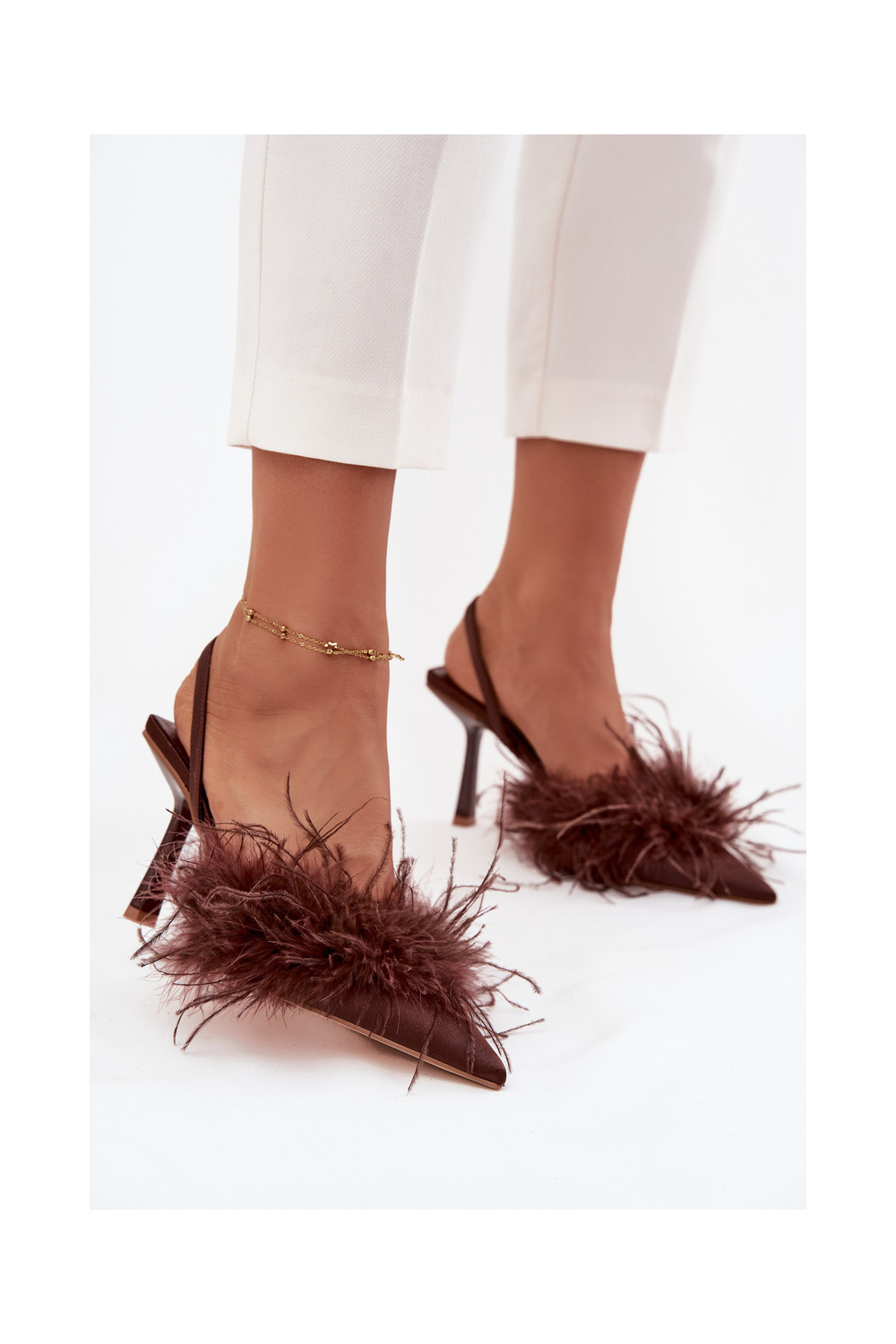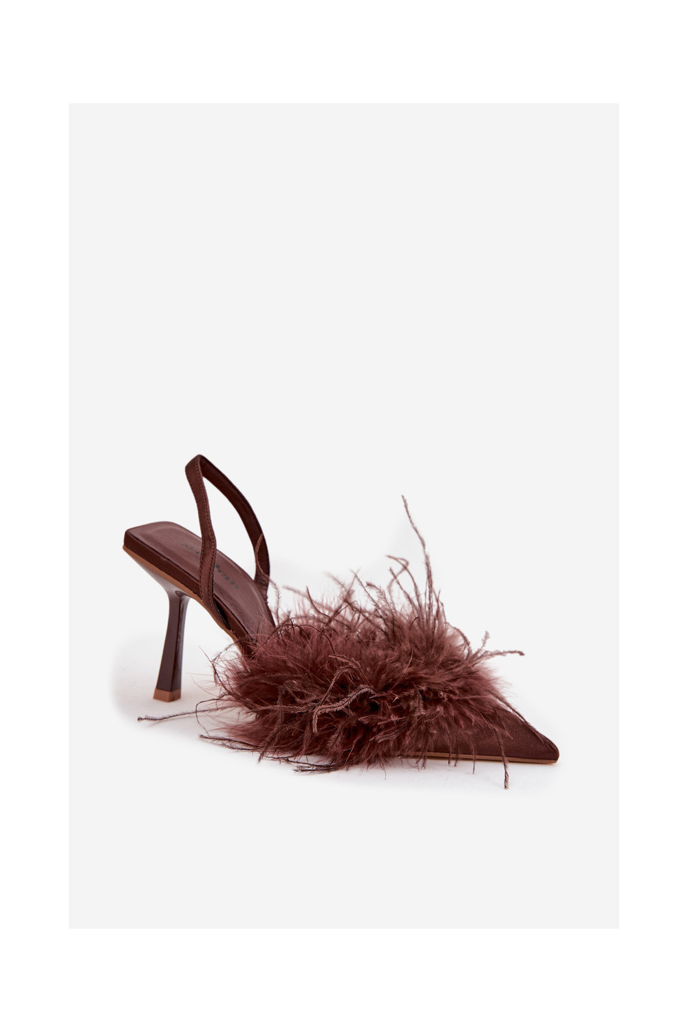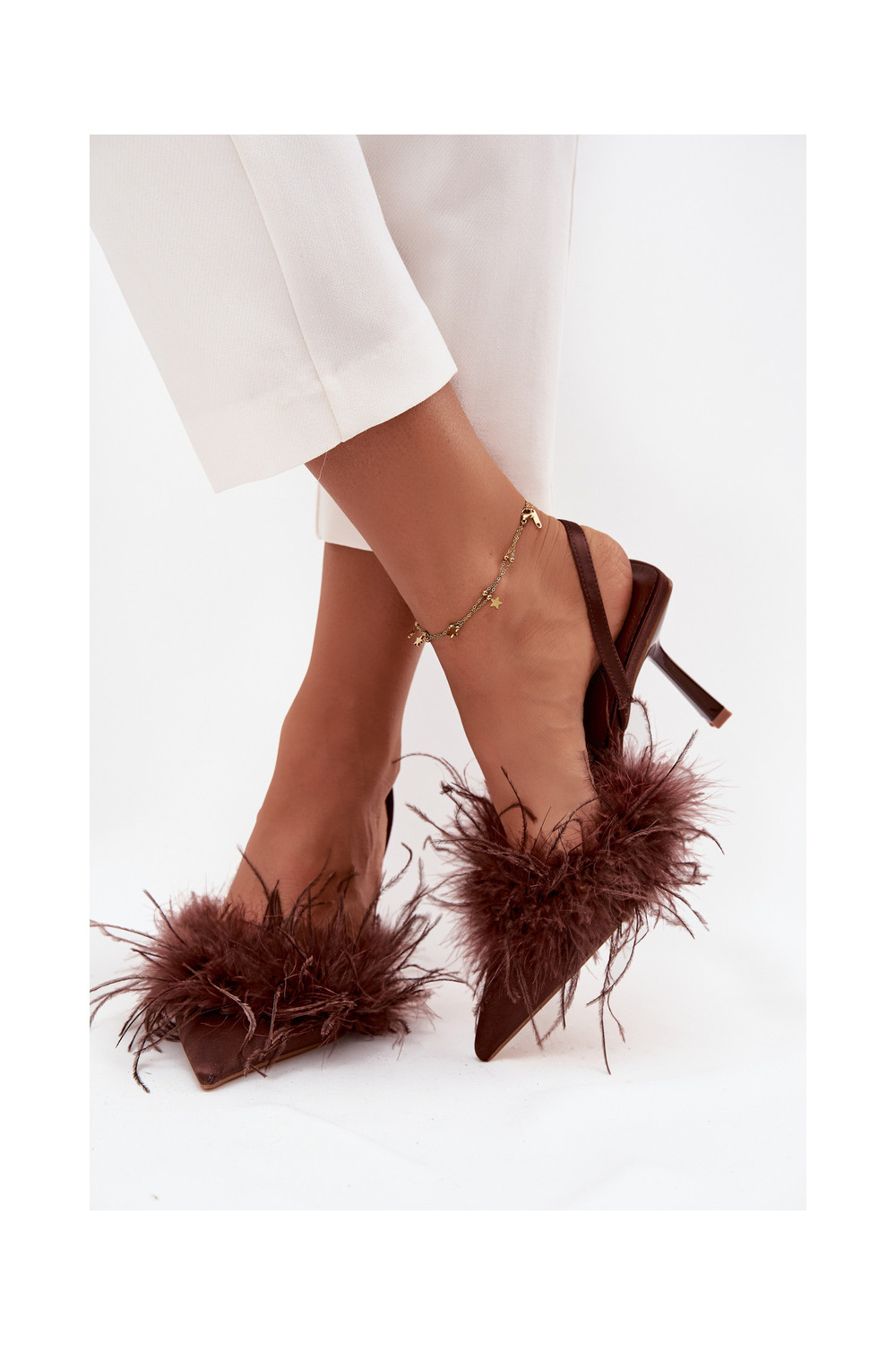 Augstpapēžu kurpes ar spalvām un atvērtu papēdi šokolādes krāsā Belice