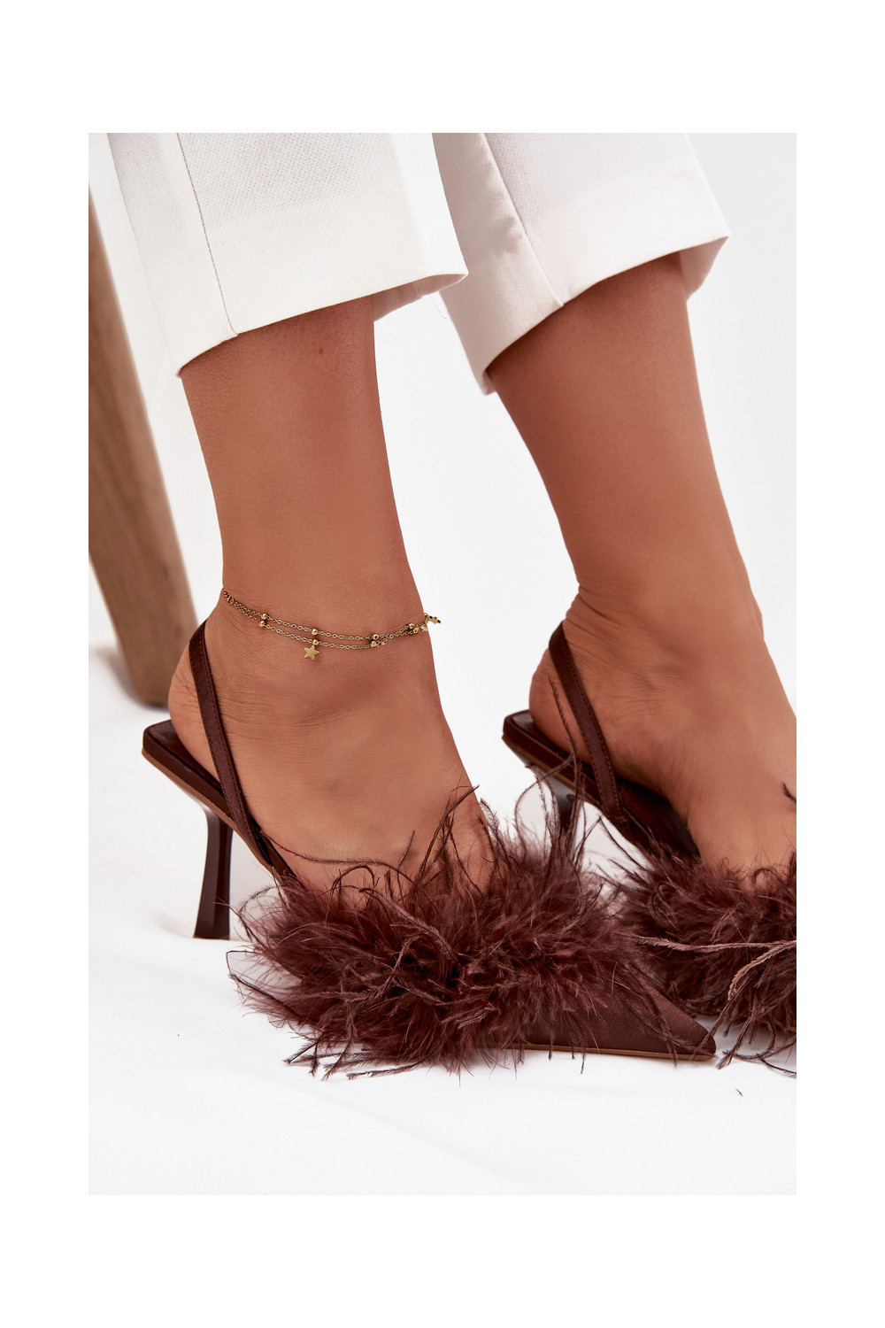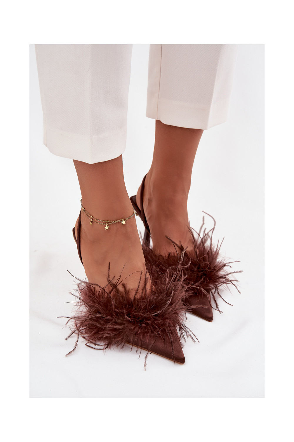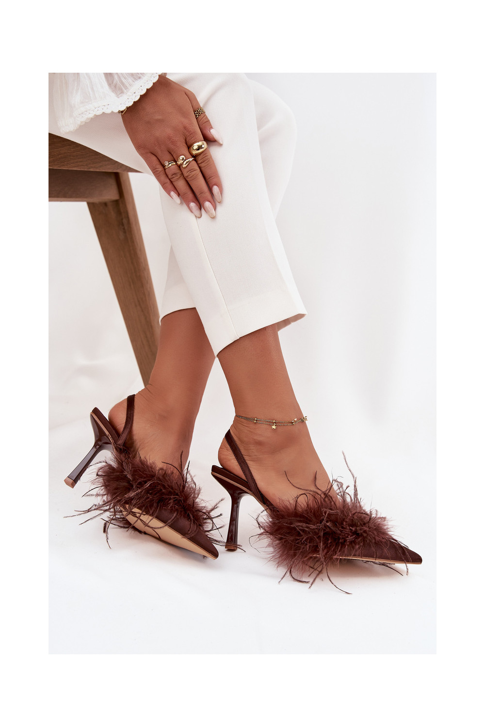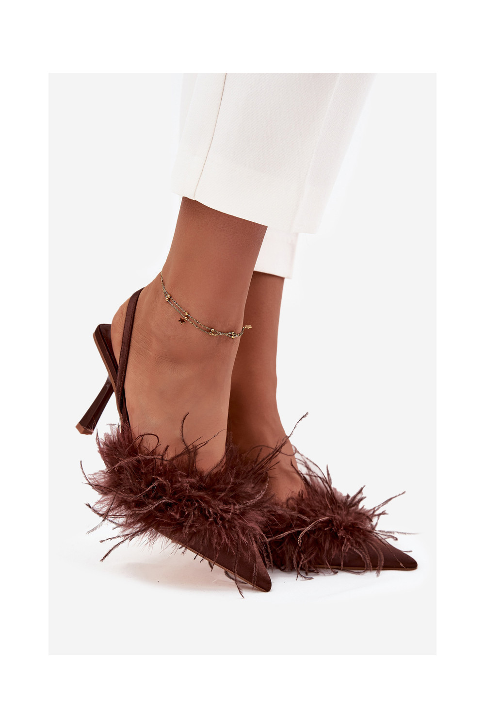 Augstpapēžu kurpes ar spalvām un atvērtu papēdi šokolādes krāsā Belice