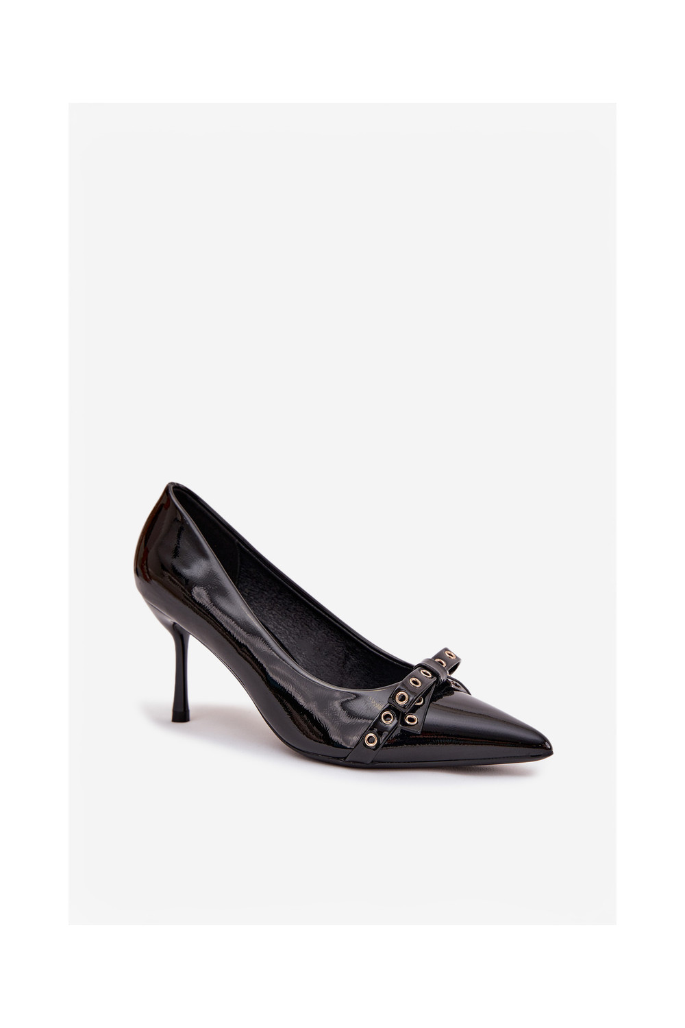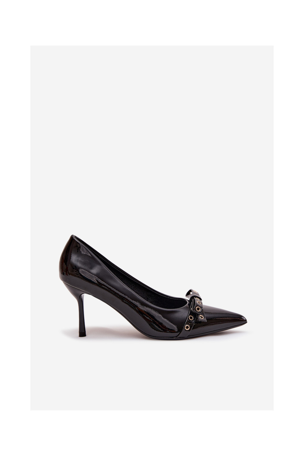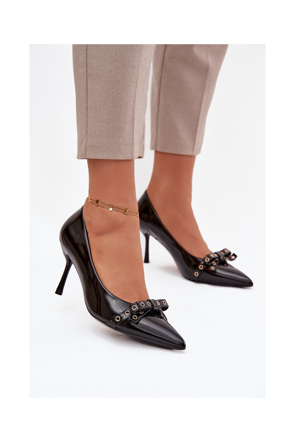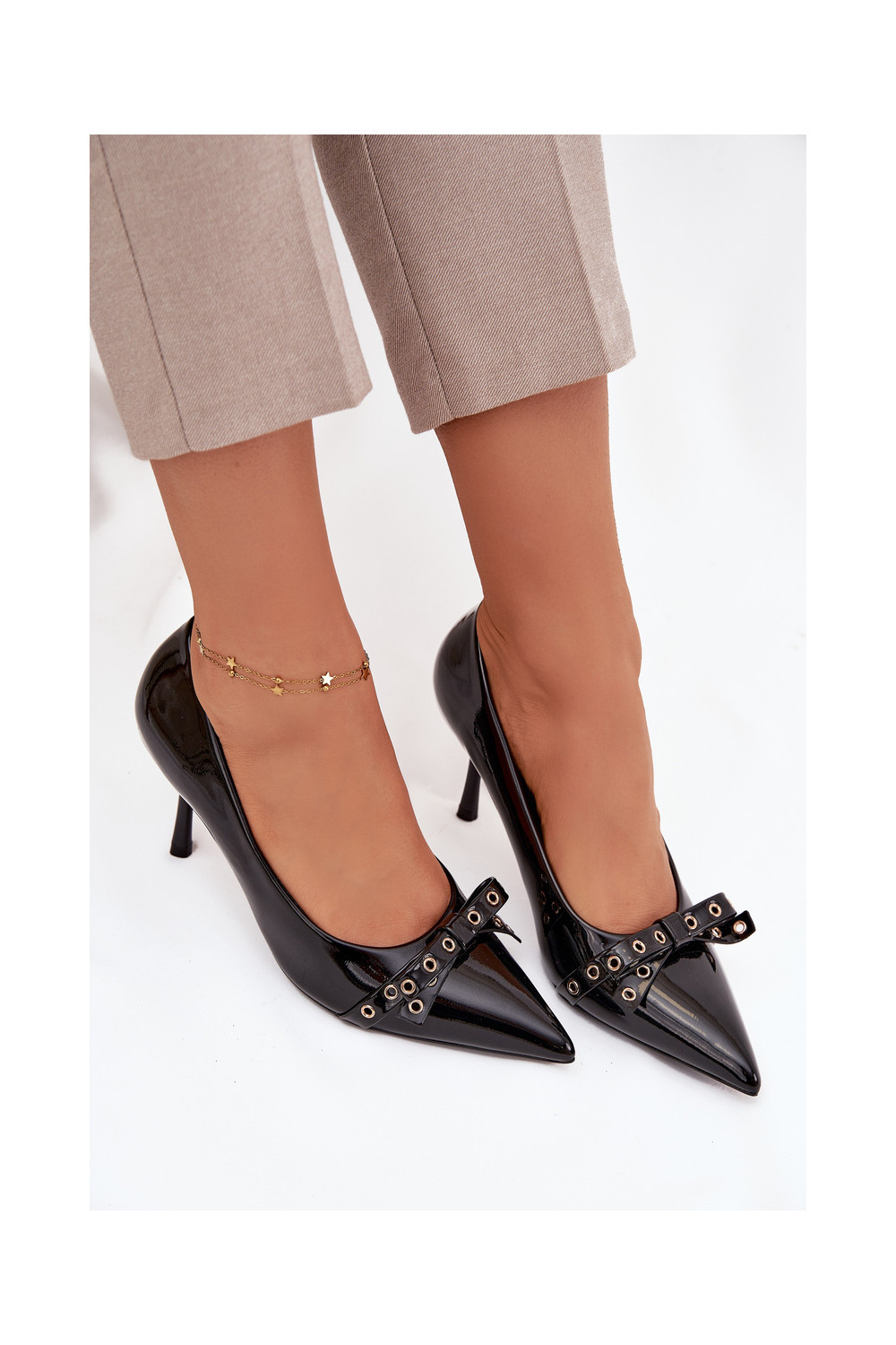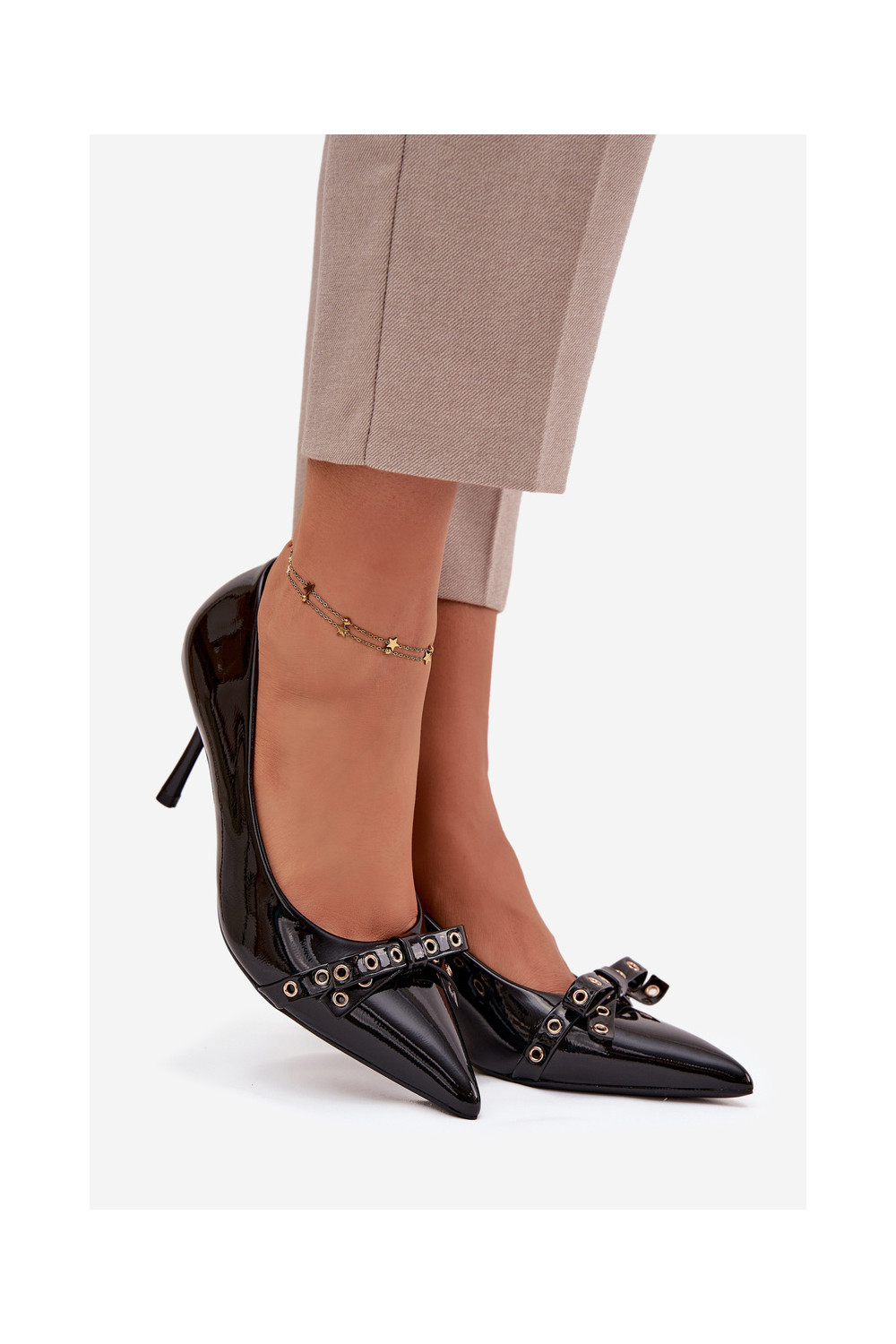 Laque augstpapēžu kurpes ar bantītēm melnas krāsas Janisse