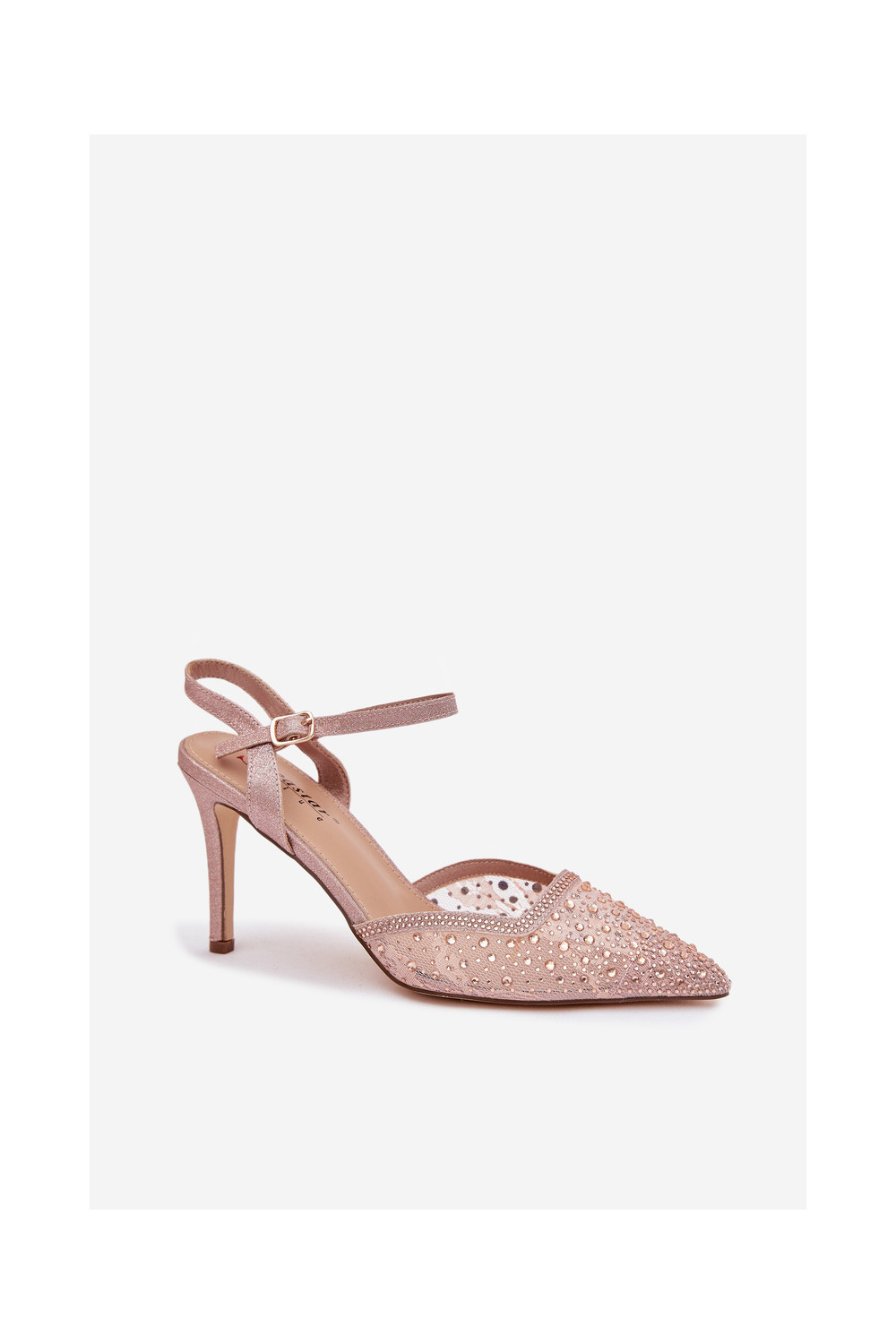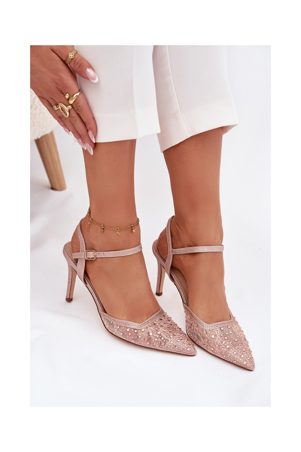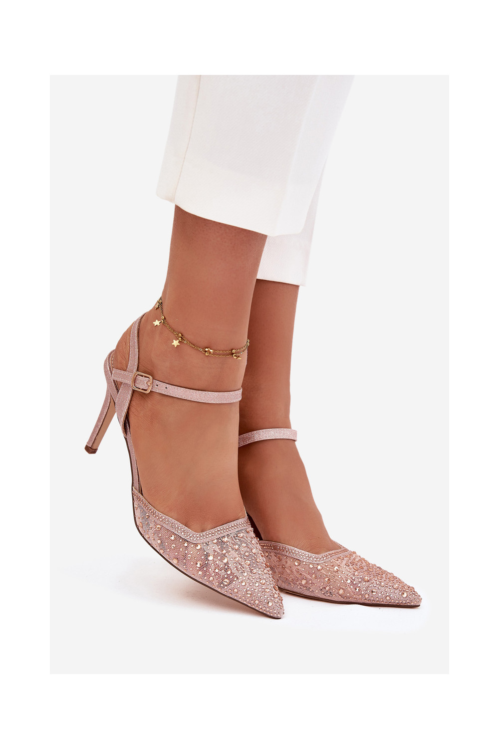 Dekorētas augstpapēžu kurpes Apavi ar spicu purngalu Szampańskie Ieslēgtsnadra