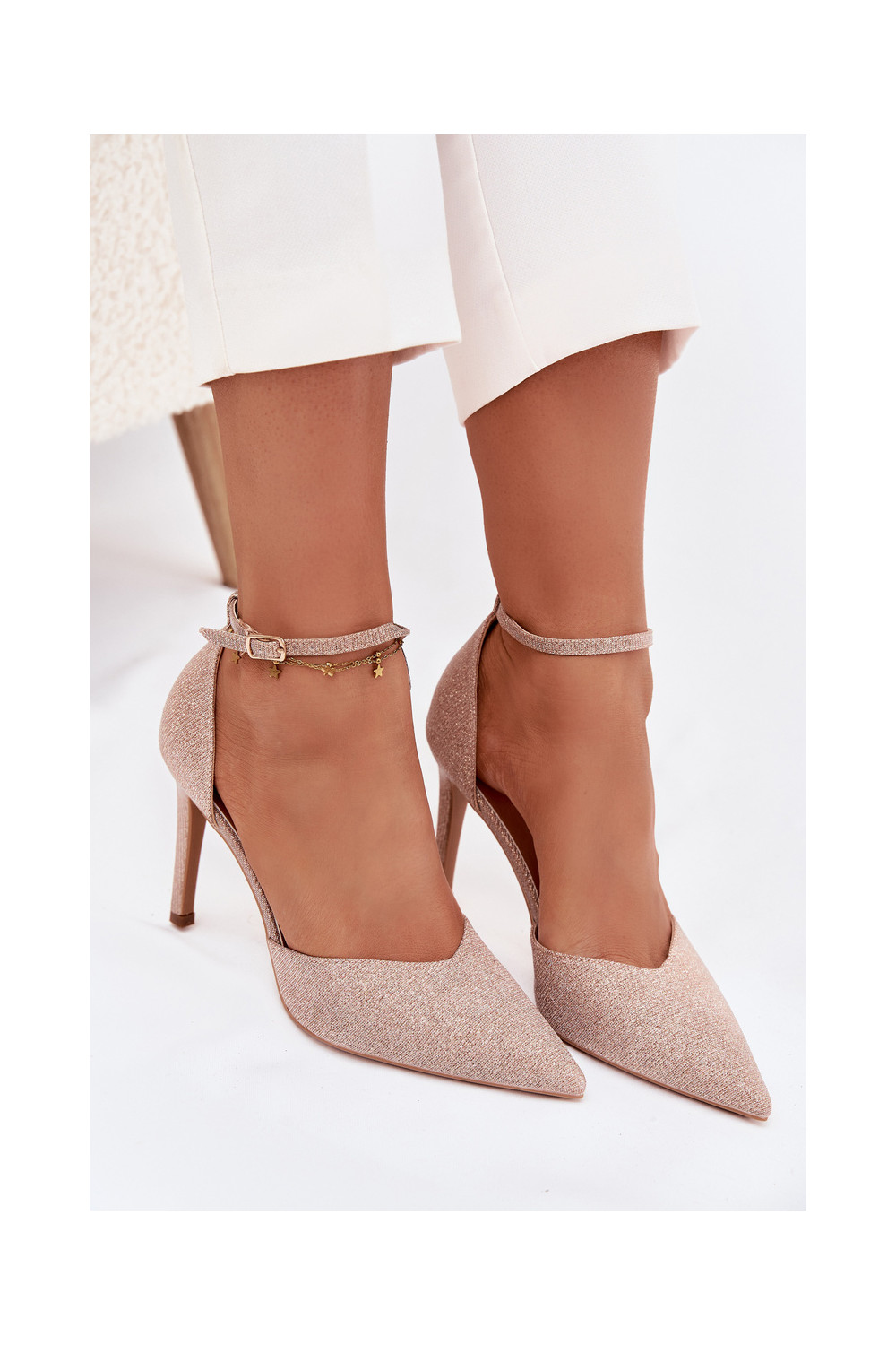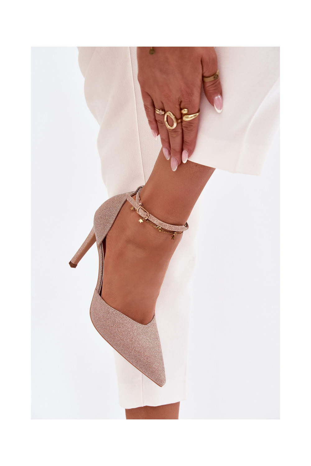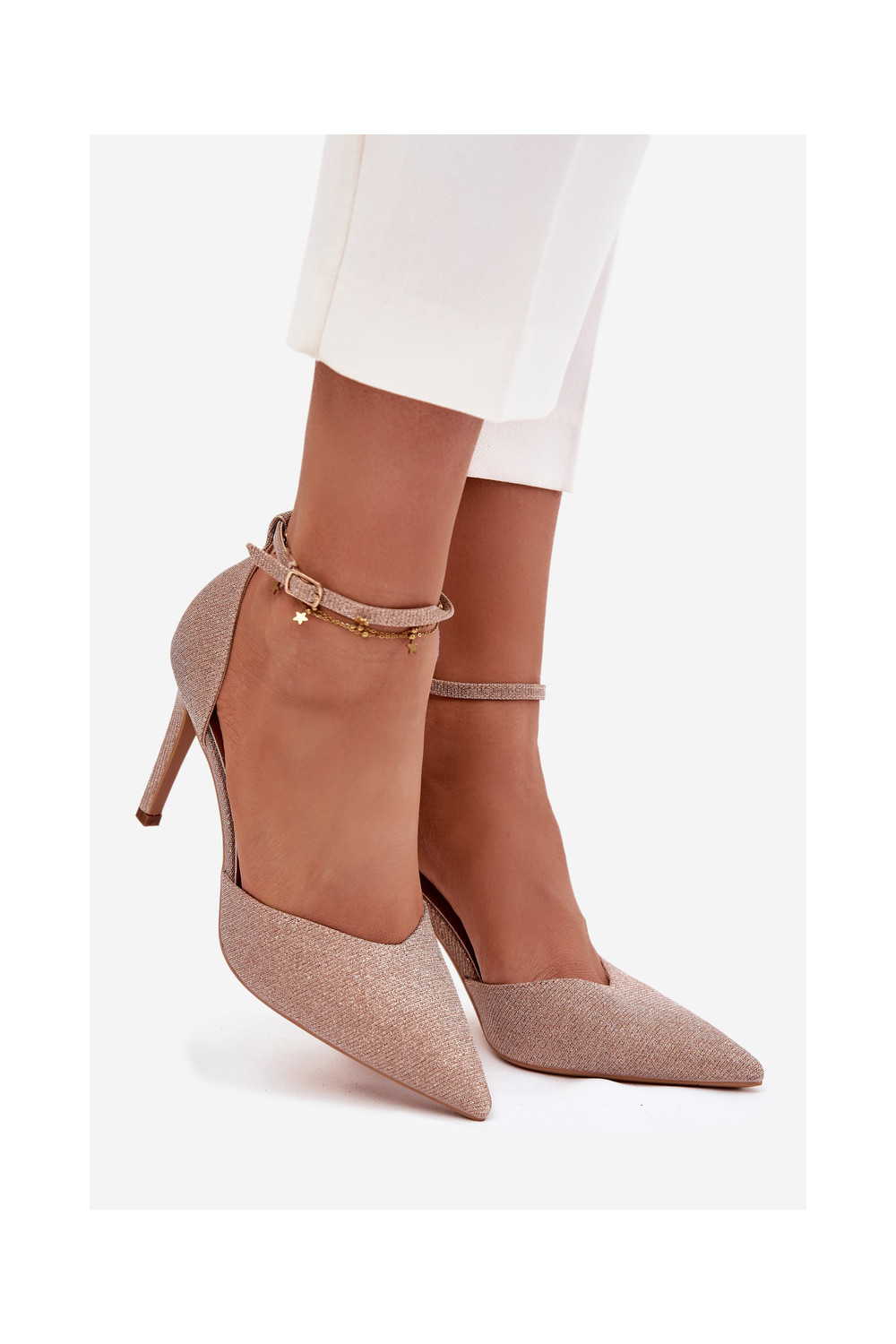 Spīdīgi augstpapēžu kurpes ar siksniņām Szampańskie Joranne