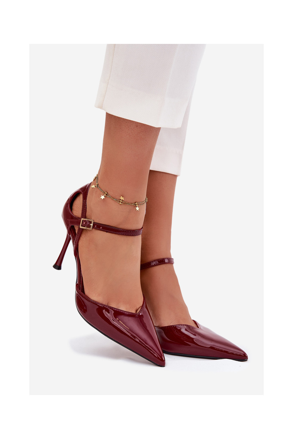 Lakuoti augstpapēžu apavi ar siksniņām, bordo krāsas Tarilin