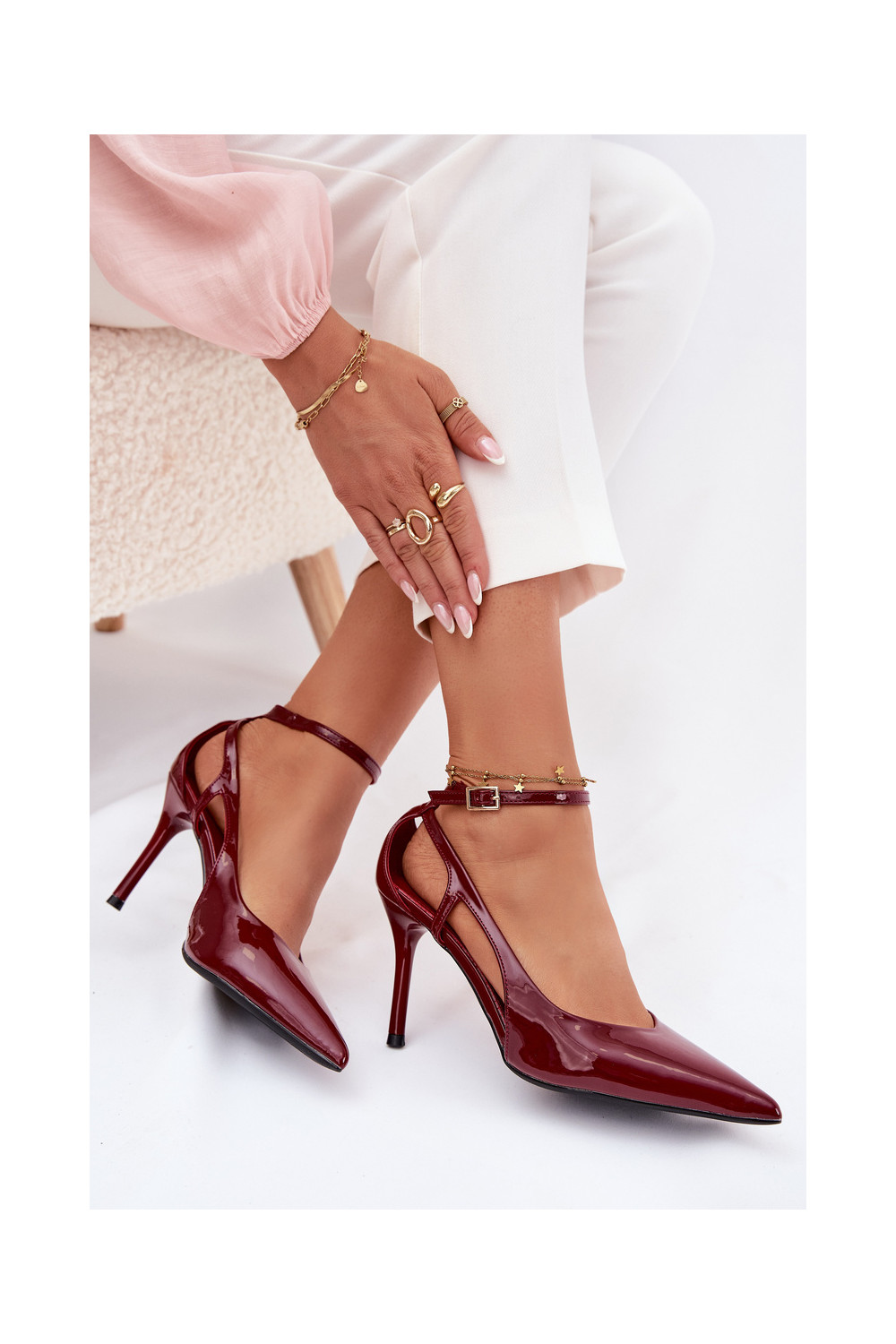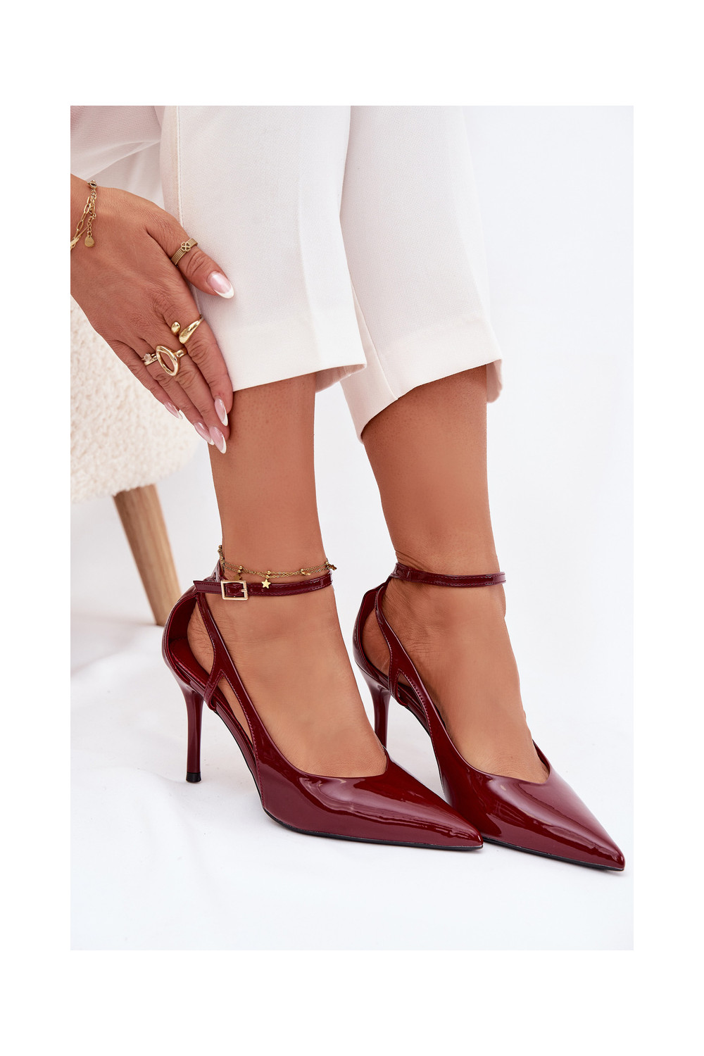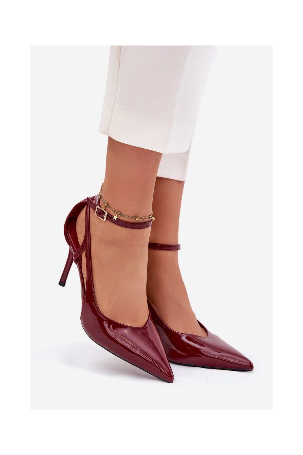 Lakuoti augstpapēžu apavi no mākslīgās ādas, bordo krāsas Fionnel