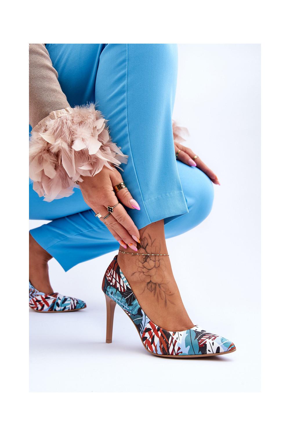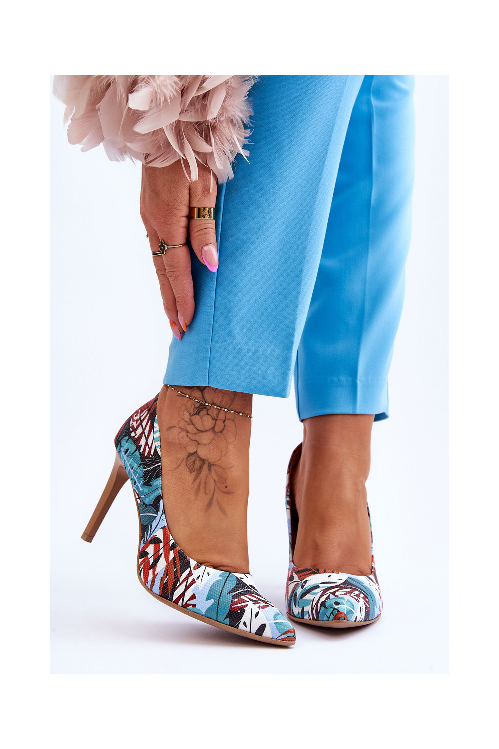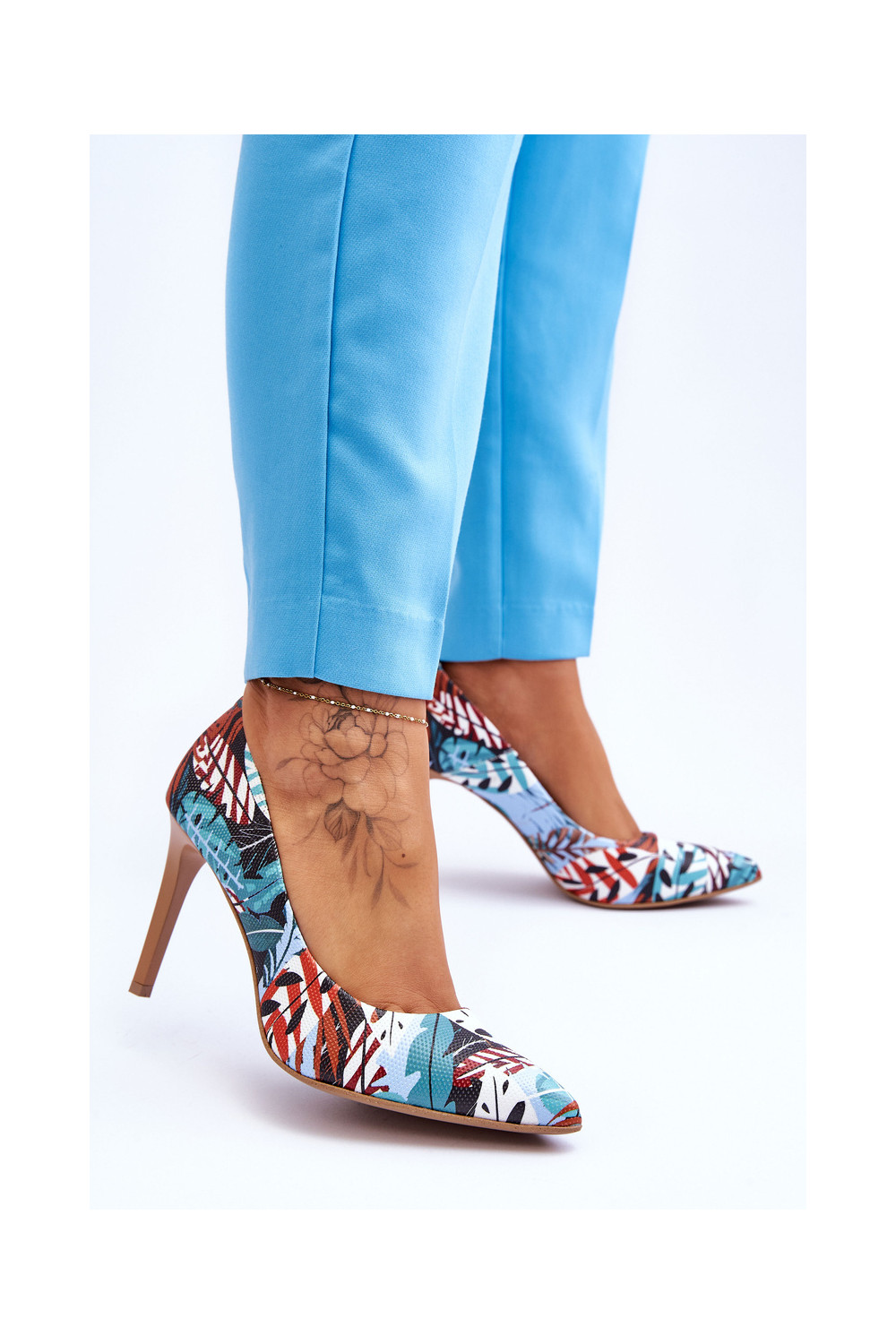Stilīgasrnas Āda augstpapēžu kurpes Ļevskis Shoes 2659 zaļš-Zilas krāsas