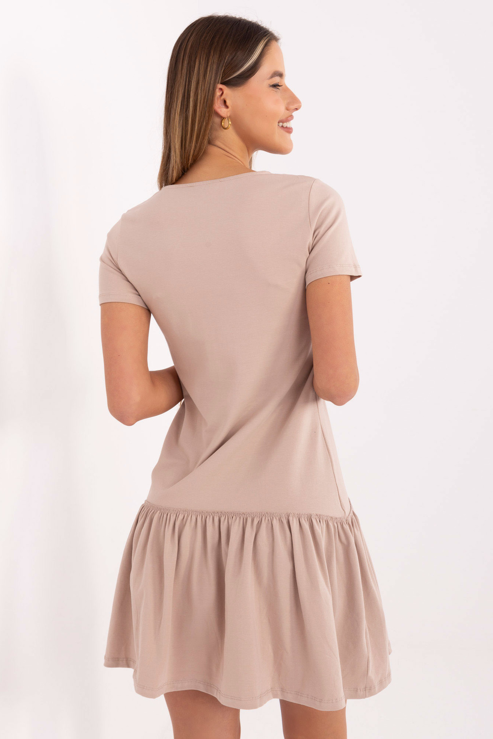 Bēša kleita Sully RUE PARIS . Kokvilnas kleita no vienkārša trikotāžas auduma ir lieliska ideja ikdienas veidošanai, ja jums nav pārāk daudz laika un kad modē patīk minimālisms. Šāda kleita sniegs ne tikai stilīgu izskatu, bet arī lielisku komfortu un komfortu valkāšanā. Šim pamata stila modelim ir apaļš kakla izgriezums, īsās piedurknes, brīvāks piegriezums un dekoratīvs volāns apakšā, kas piešķir apģērbam daudz meitenīga šarma. Pamatkleita ir izgatavota no patīkama pieskāriena un gaisīga materiāla ar augstu tīras kokvilnas saturu. Pateicoties tam, modelis lieliski iekļaujas jebkurā siluetā un maigi izklājas uz figūras, jo ir pareizi elastīgs. Šī pamata kleita mūsu tiešsaistes veikalā ir pieejama vairākās vismodernākajās krāsās, no kurām izvēlēties. Savienojiet to ar džinsa jakām un vasaras apaviem no mūsu jaunās tiešsaistes kolekcijas.