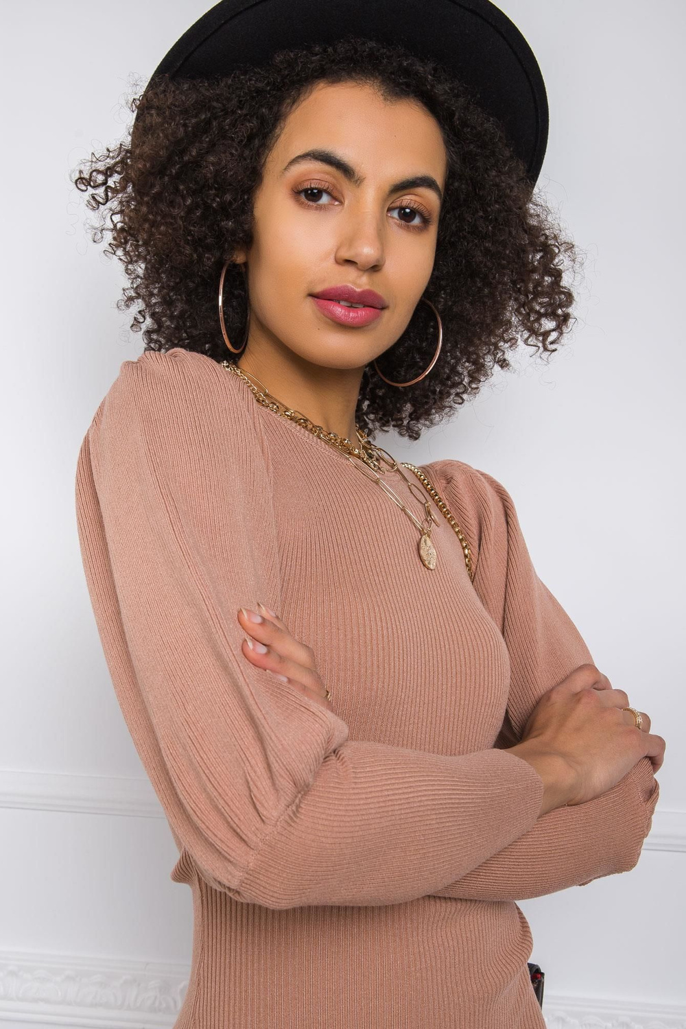 Modelis valkā viena izmēra izmēru. Modeļa izmēri: augums 174 cm, krūtis 83 cm, viduklis 60 cm, gurni 89 cm.