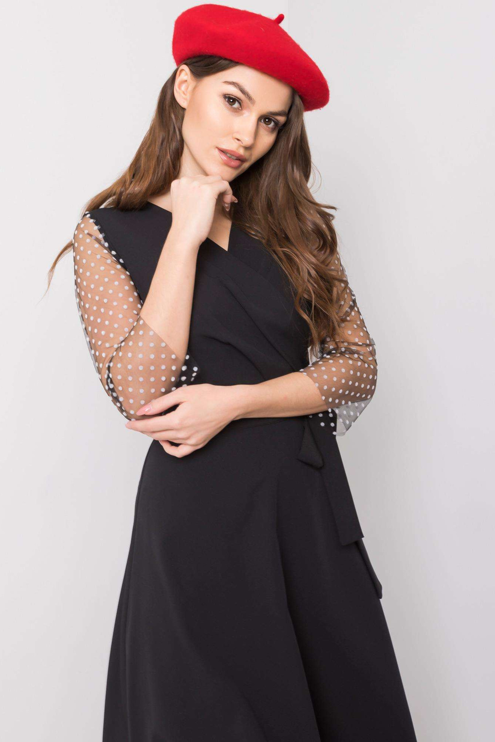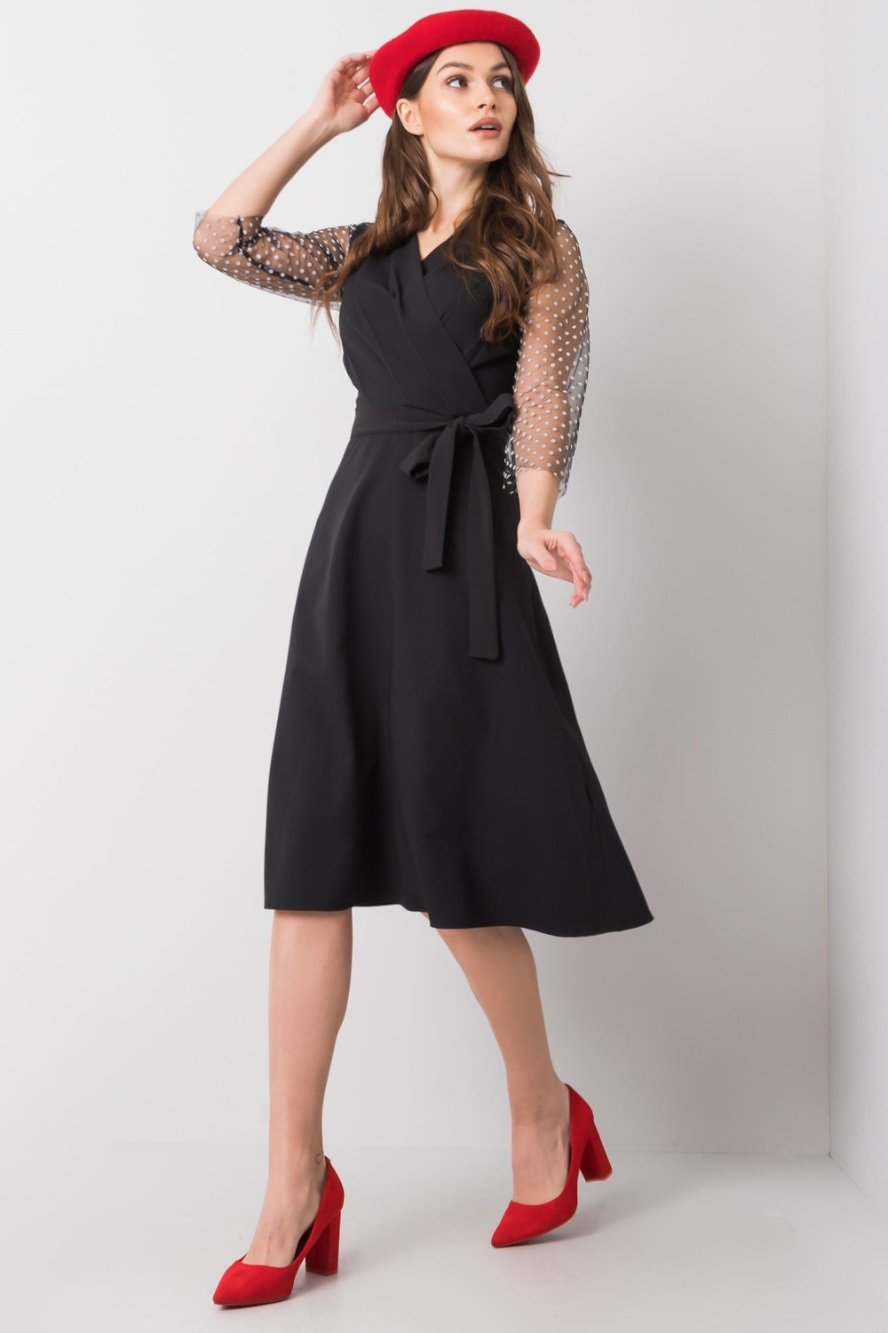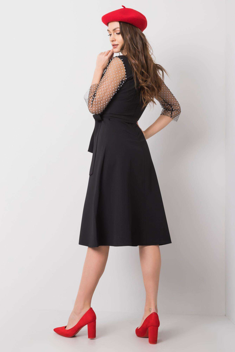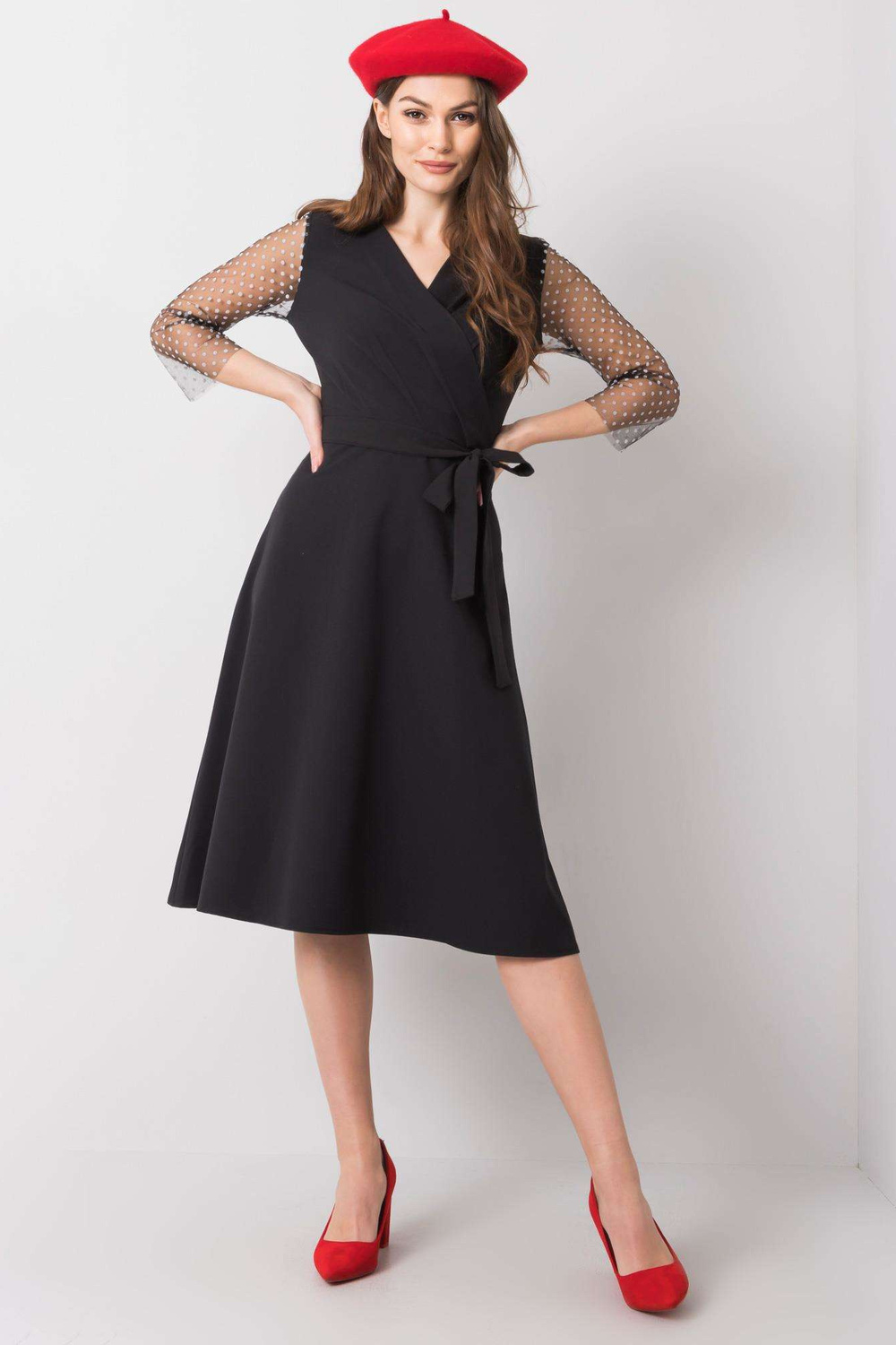 Melnā kleita Ava. piederumi: siksniņa, iešūta rāvējslēdzēja materiālssastāvs: 50% kokvilna, 45% poliesters, 5% likra mazgāšanas metode: veļas mašīna 30°C. Modelis ir valkāšanas izmērs 36. Modeļa izmēri: augums 170 cm, krūtis 93 cm, viduklis 66 cm, gurni 93 cm. Aptumšot