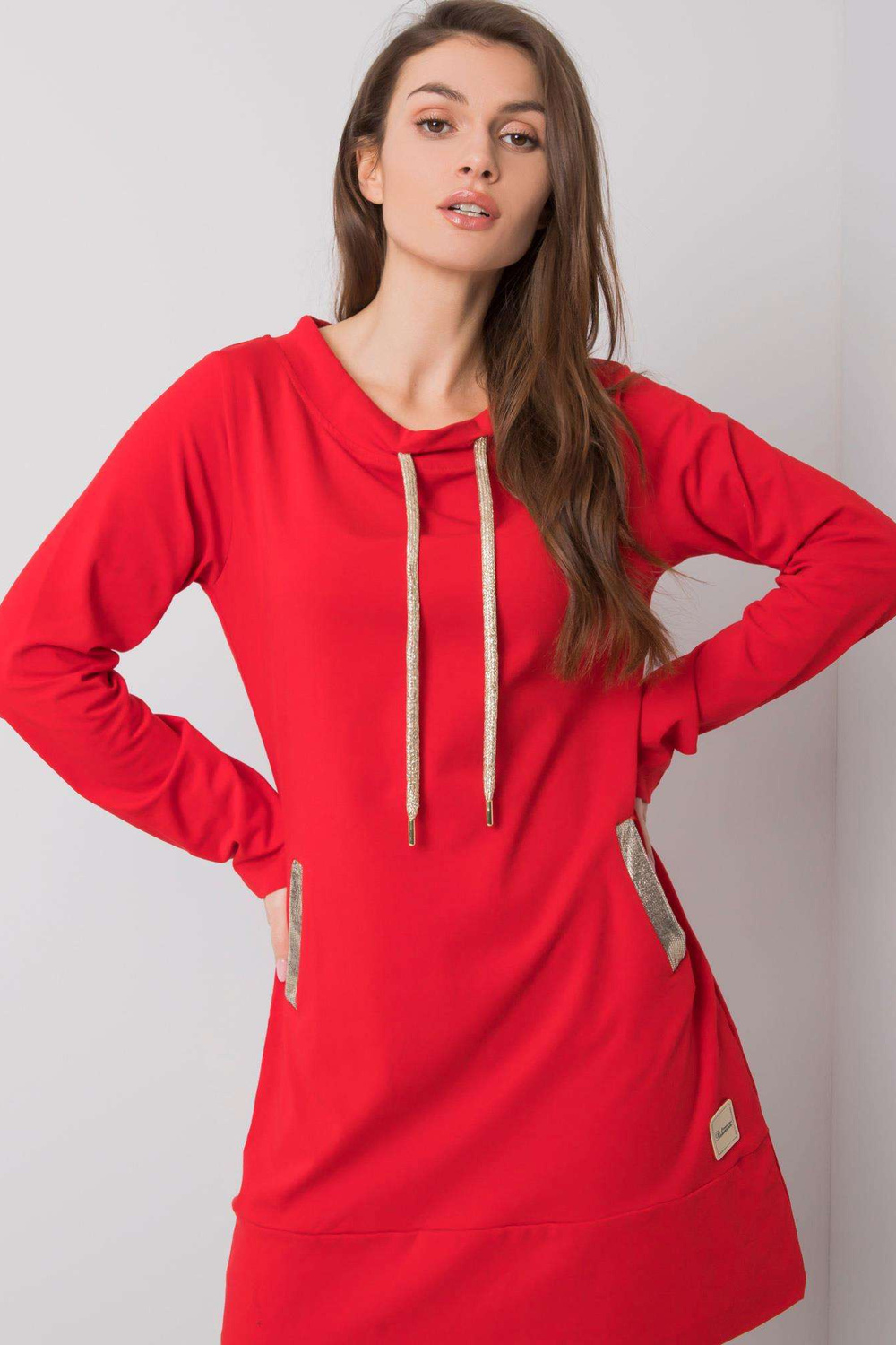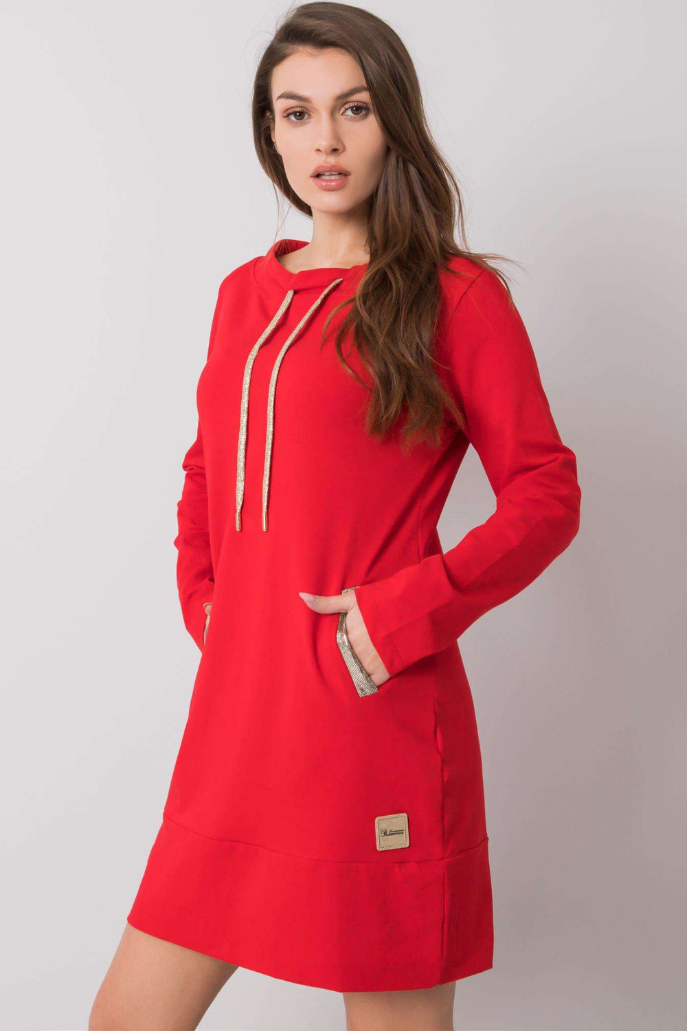Hollijas sarkanā kleita. materiāla sastāvs: 90% kokvilna, 10% elastāns mazgāšanas metode: veļas mašīna 30°C. Modelis valkā S/M izmēru. Modeļa izmēri: augstums 170 cm, krūtis 93 cm, viduklis 66 cm, gurni 93 cm. Kleitas izmēri S/M izmērā plakanā veidā: wi