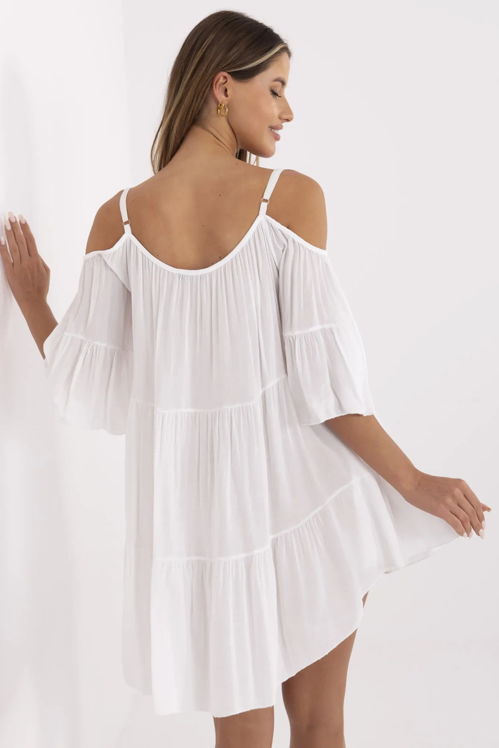 Veronikas balta kleita Šī gaisīgā kleita ir lieliska izvēle, kad runa ir par modernu vasaras izskatu. Rūpīgi izgatavots no patīkama pieskāriena auduma, tas maigi izklājas uz silueta. Piedāvātais modelis ir ideāli piemērots arī lielākajam karstumam. Oriģinālais kakla izgriezums atklās plecus, un garums līdz ceļgalam pievērsīs uzmanību slaidām kājām. Šarmu kopumam pievieno plats volāns apakšā. ja esat moderna boho stila piekritēja, šī sieviešu kleita ir radīta jums! Ja vēlaties radīt izskatu tipiskā brīvdienu klimatā, izvēlieties lielu apaļu grozu un vieglas sandales. Neaizmirstiet par etniskām rotaslietām. Šī oriģinālā sieviešu kleita ir modes izvēle, kuru jūs noteikti nenožēlosiet, tāpēc pasteidzieties un izvēlieties sev vasarīgu kleitu universālā tonī jau tagad.< /font>