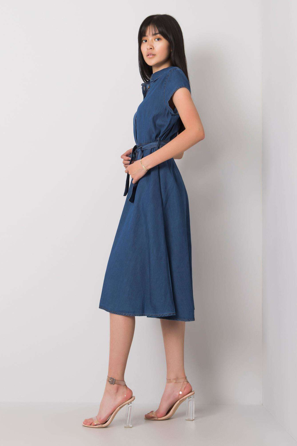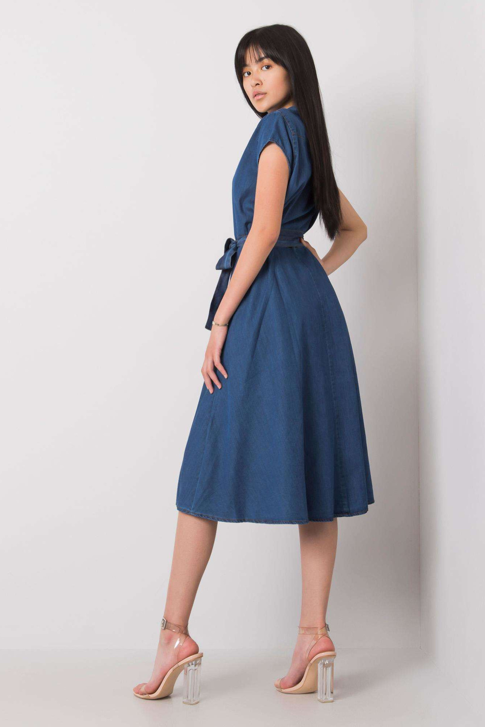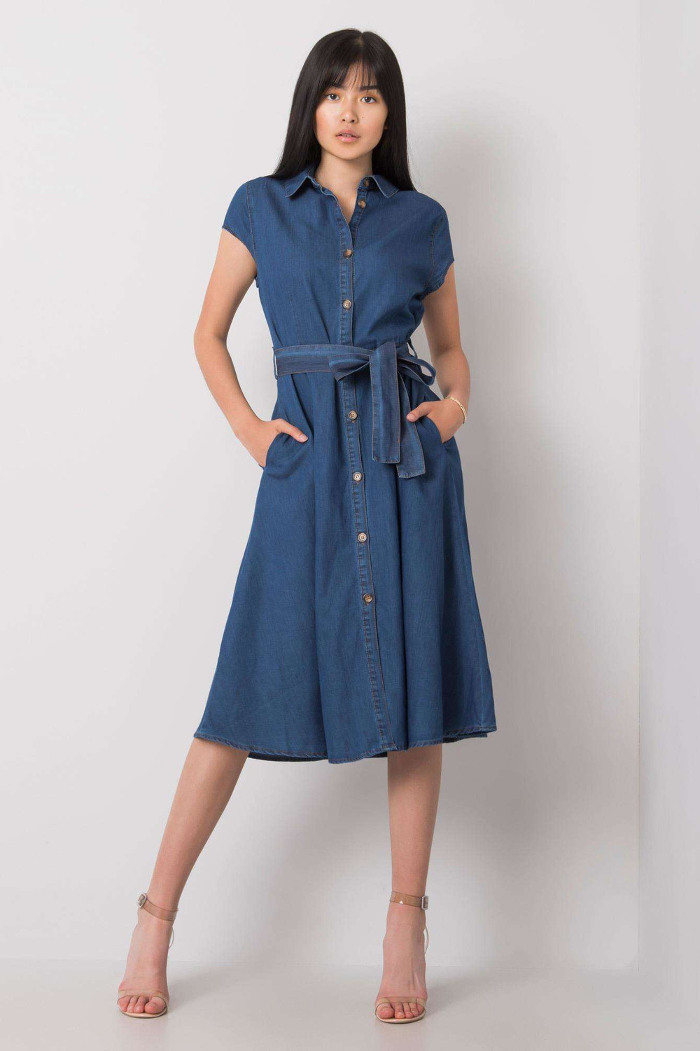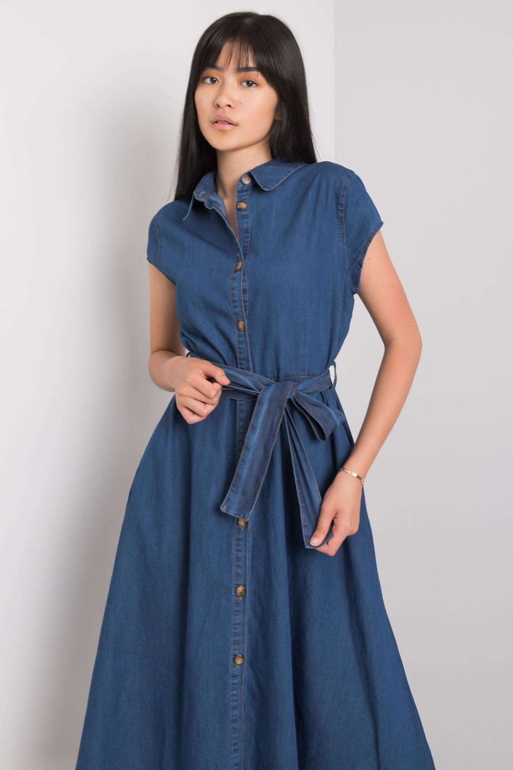 Tumši zila kleita Rosaline RUE PARIS. Aksesuāri: josta, pogu aizdare, kabatu materiālssastāvs: 100% kokvilna Mazgāšanas metode: veļas mašīna 30°C Modelis valkā S izmēru. Modeļa izmēri: augums 167 cm, krūšturis 73 cm, viduklis 64 cm, gurni 91 cm. div>