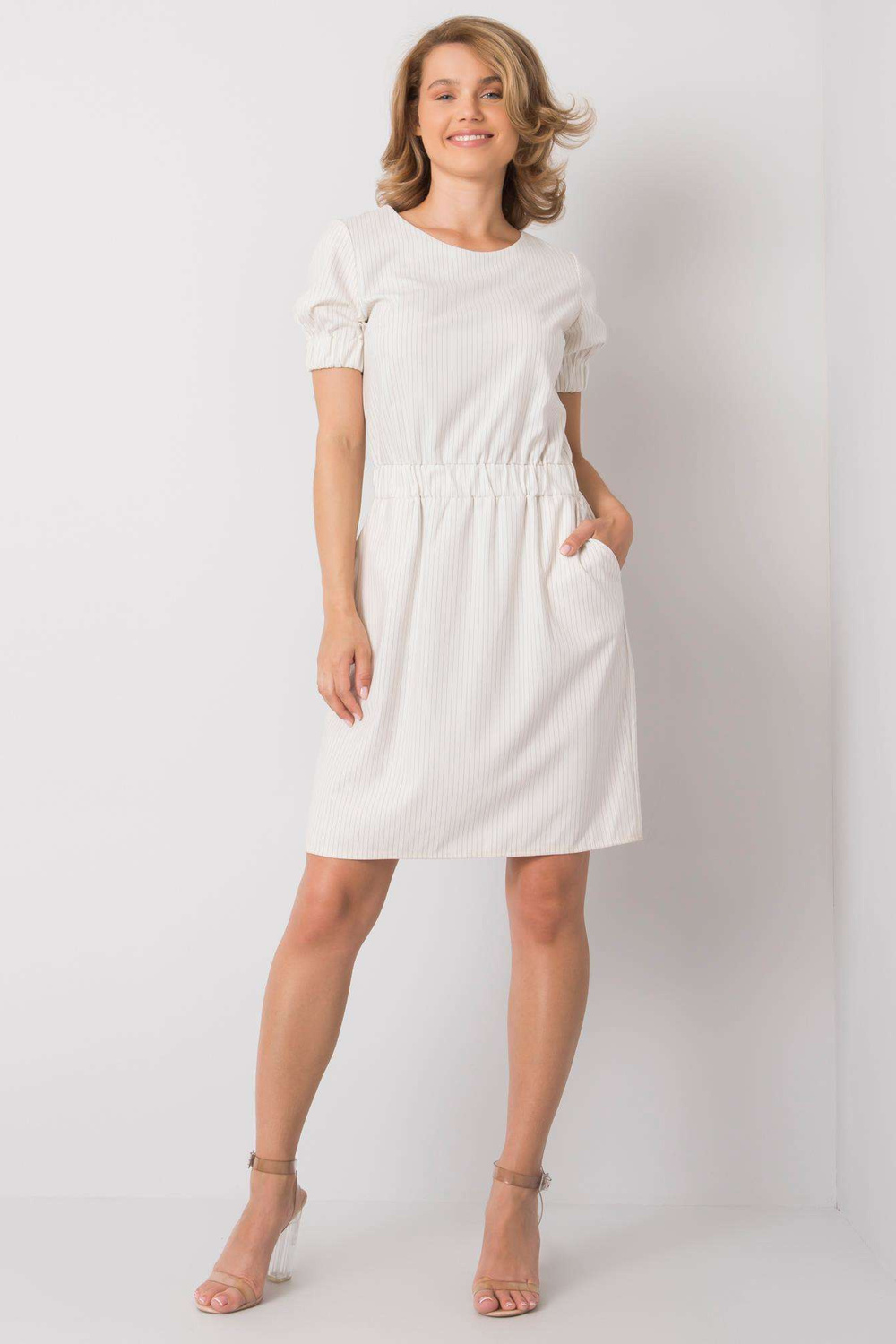 Modele valkā 36. izmēru. Modeļa izmēri: augums 170 cm, krūtis 89 cm, viduklis 59 cm, gurni 85,5 cm.
