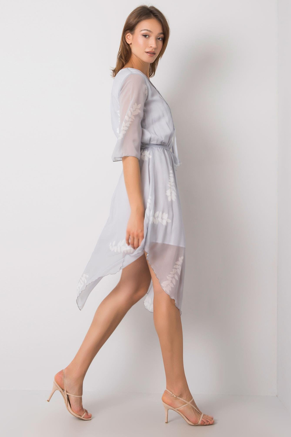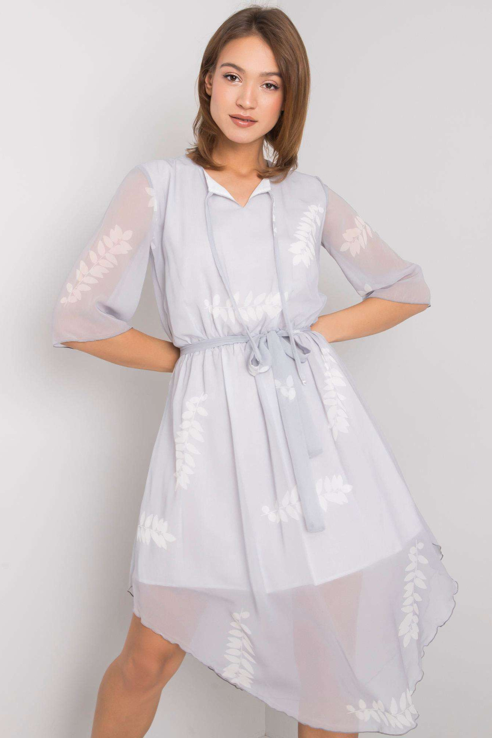 Jareli pelēkā kleita. ekstras: siksnas materiālssastāvs: 65% kokvilna, 30% poliesters, 5% elastāns mazgāšanas metode: mazgāšana veļasmašīnā 30°C Modelis valkā 36.izmēru. Modeļa izmēri: augstums 180 cm, krūtis 89 cm, viduklis 63 cm, gurni 93 cm . Dre