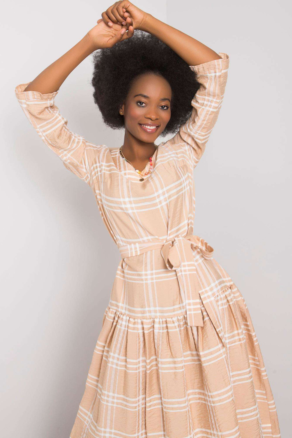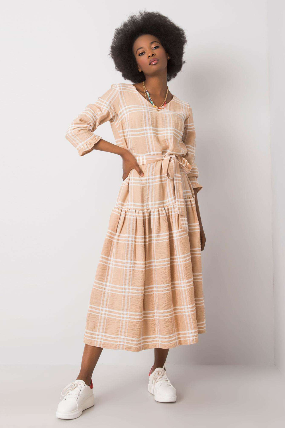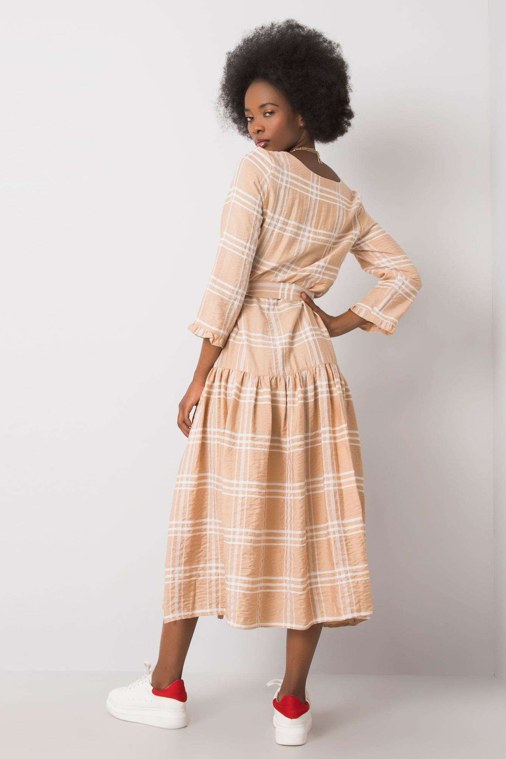 Kleitas izmēri 36. izmēra plakani: platums zem padusēm - 44 cm, kopējais garums - 118 cm, piedurkņu garums - 45 cm