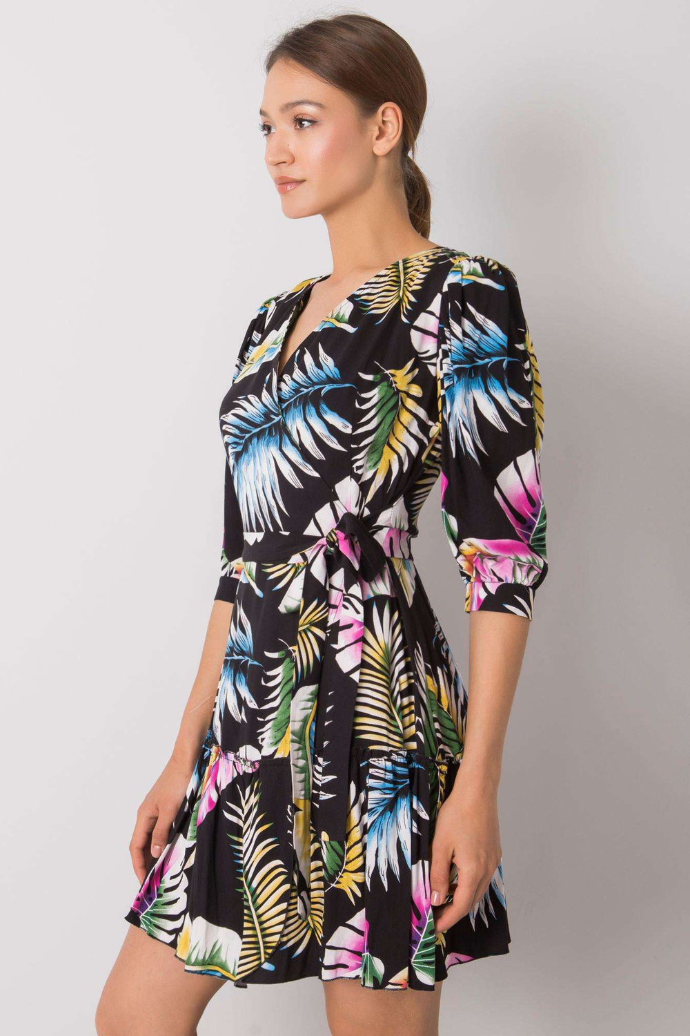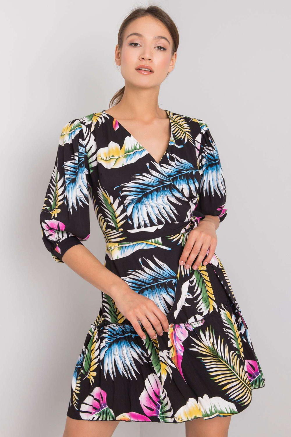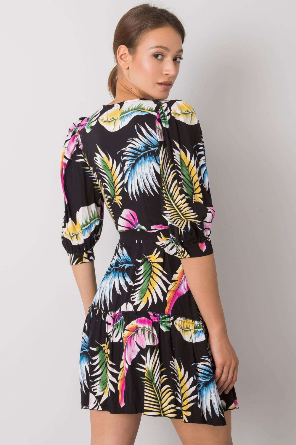 Melnā kleita ar Cerise rakstiem.