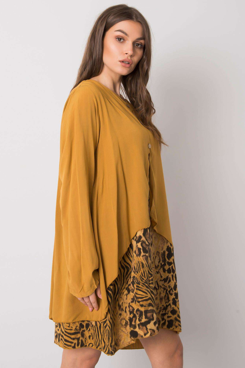 Kleitas izmēri vienā izmērā, mērot plakani: platums zem padusēm - 59 cm, kopējais garums - 84 cm, piedurkņu garums - 63 cm