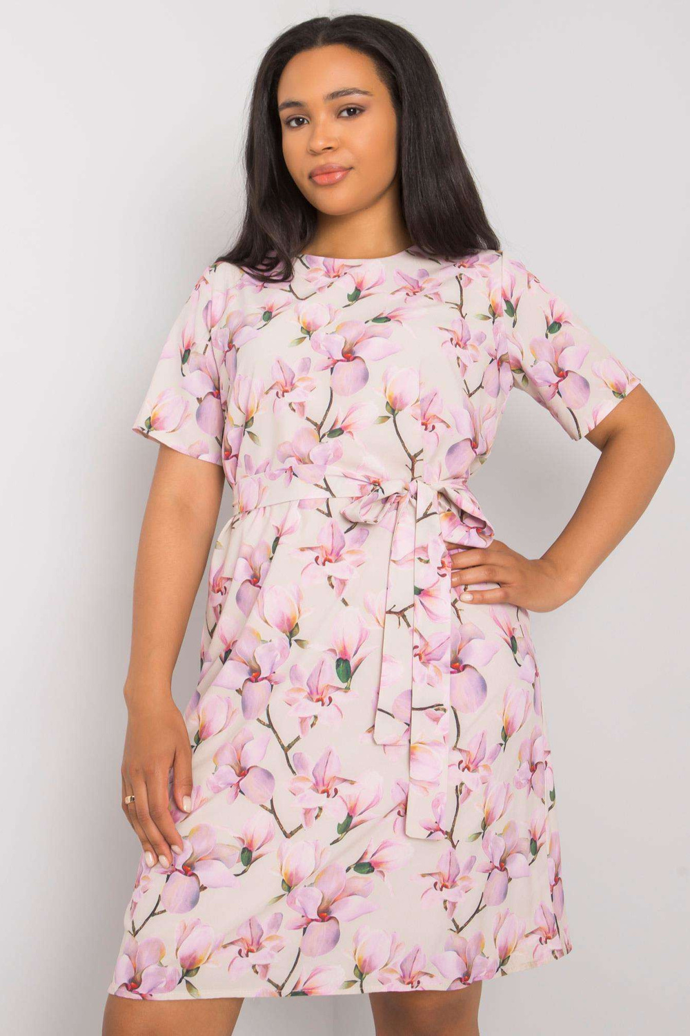 Celenas lielizmēra kleita ar smilškrāsas rakstu .