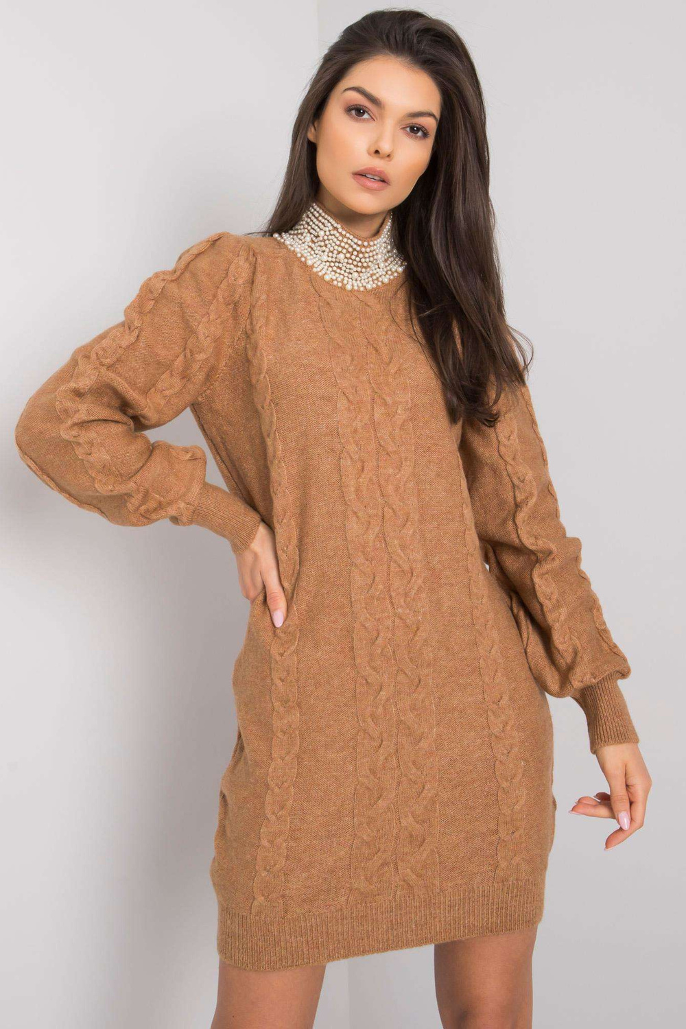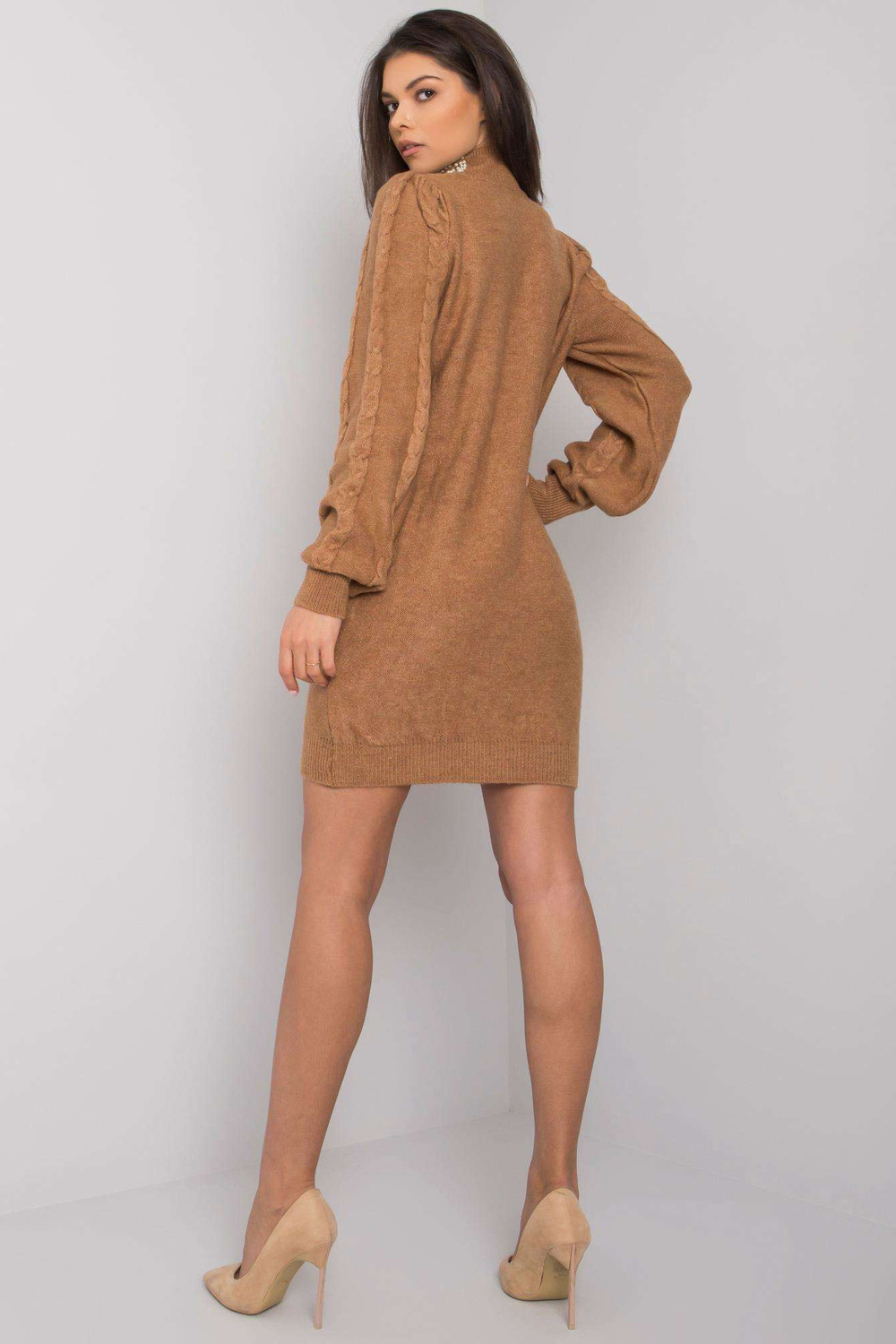 Kameli trikotāžas kleita ar Shandee RUE PARIS aplikāciju.