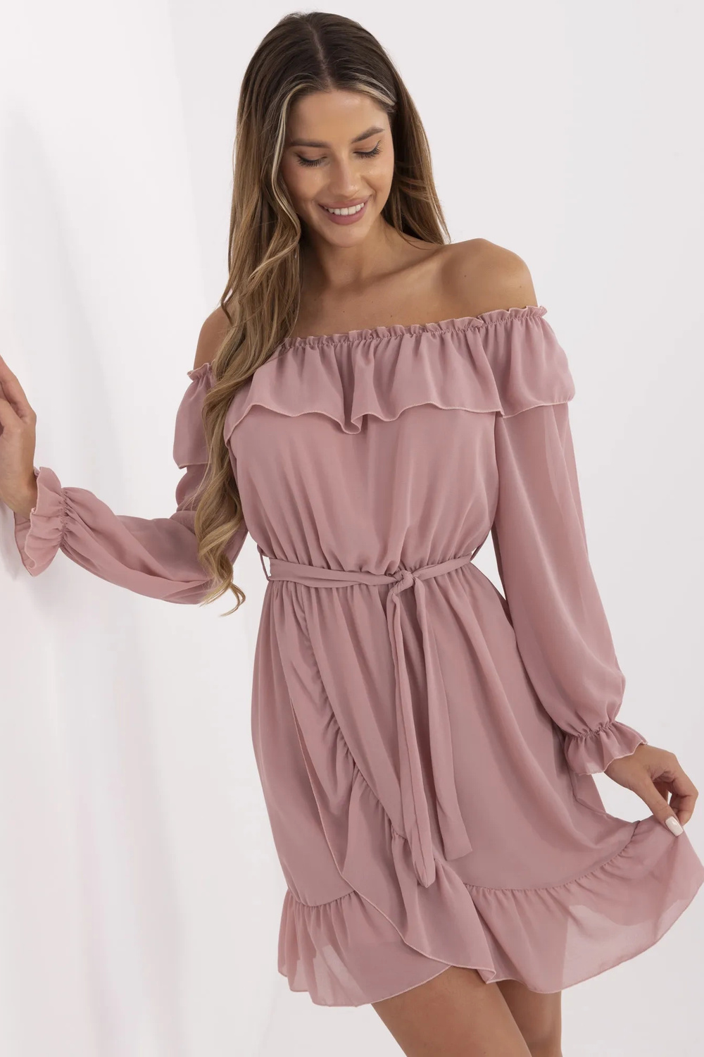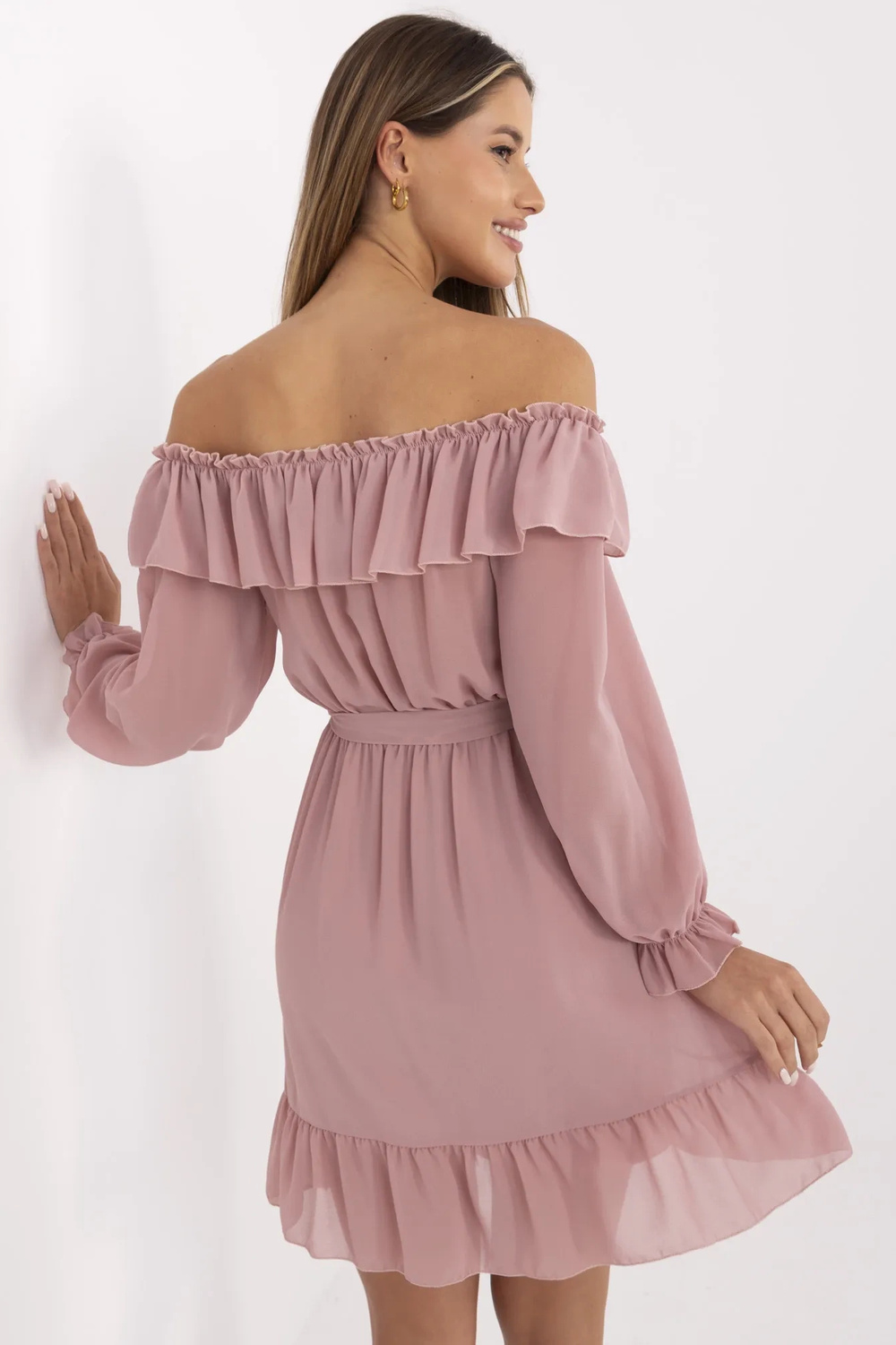 Modelis valkā viena izmēra izmēru. Modeļa izmēri: augums 170 cm, krūtis 93 cm, viduklis 66 cm, gurni 93 cm.