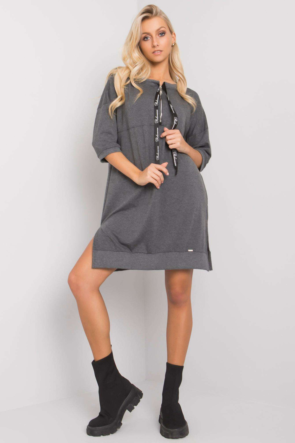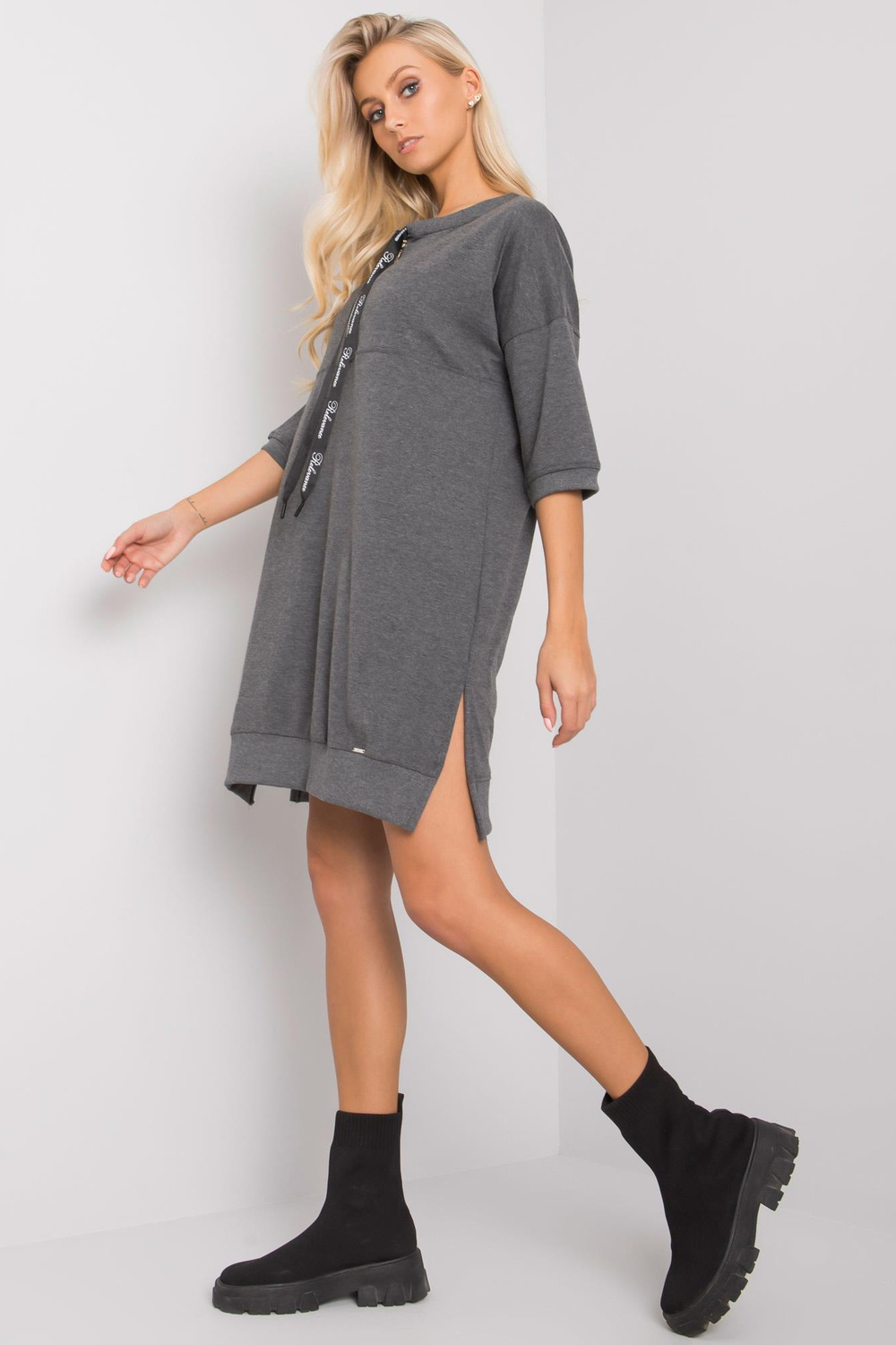 Earnestine tumši pelēka ikdienas kleita.
