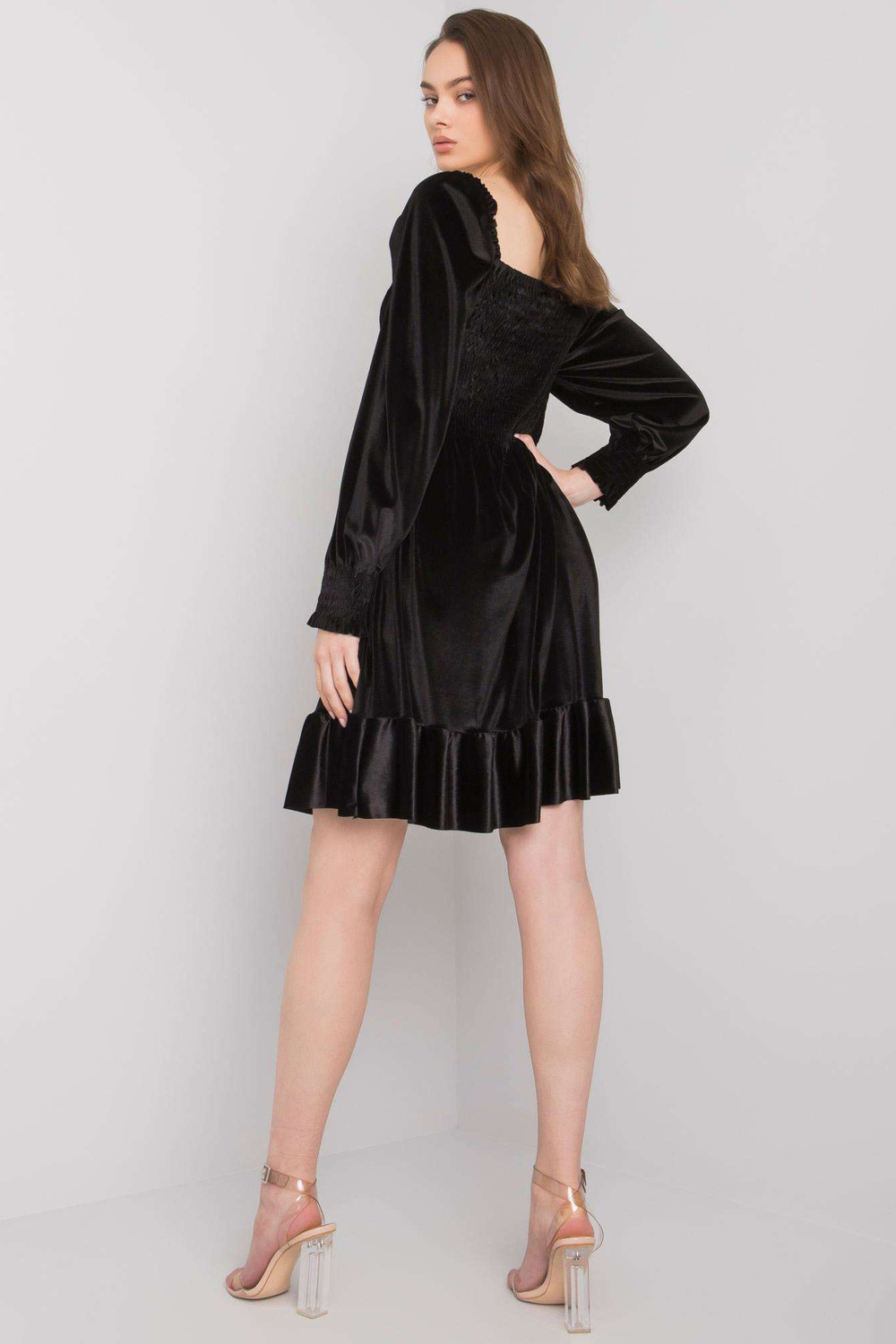 < p>Modele valkā viena izmēra izmēru. Modeļa izmēri: augums 176 cm, krūtis 85 cm, viduklis 61 cm, gurni 91 cm.Kleitas izmēri vienā izmērā, mērot plakani: platums zem padusēm - 35 cm, kopējais garums - 89 cm, piedurkņu garums - 57 cm