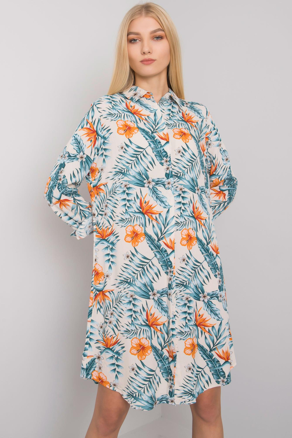 Kleitas izmēri S izmērā mērīti plakaniski: platums zem padusēm - 49 cm, piedurknes garums - 62 cm, kopējais garums - 92 cm