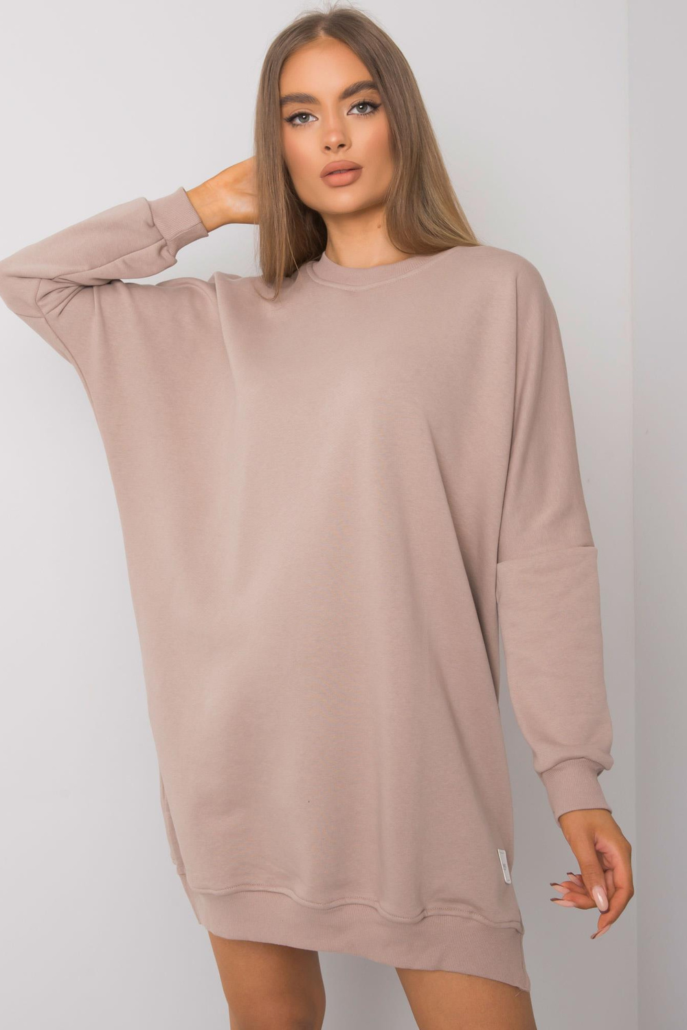 Tumši bēša sporta kreklkleita ar garām piedurknēm Odile RUE PARIS. materiāla sastāvs: 90% kokvilna, 10% elastāns mazgāšanas metode: veļas mašīna 30°C. Modelis valkā S/M izmēru. Modeļa izmēri: augums 174 cm, krūtis 83 cm, viduklis 62 cm, gurni 96 cm. Izmērs