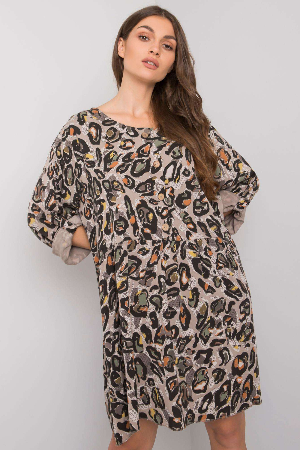 Ērlīnas pelēkā viskozes kleita. Materiāla sastāvs: 100% viskoze mazgāšanas metode: veļas mašīna 30°C. Modelis valkā vienu izmēru. Modeļa izmēri: augums 170 cm, krūtis 93 cm, viduklis 66 cm, gurni 93 cm. Viena izmēra kleitas izmēri plakanā formā: platums