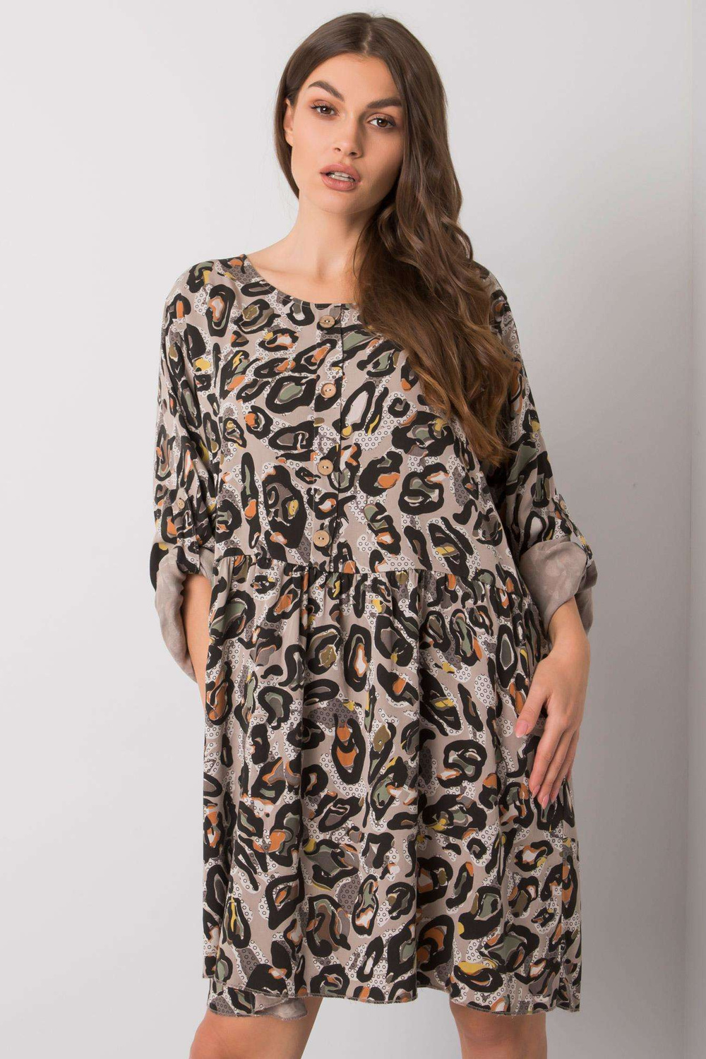 Ērlīnas pelēkā viskozes kleita.