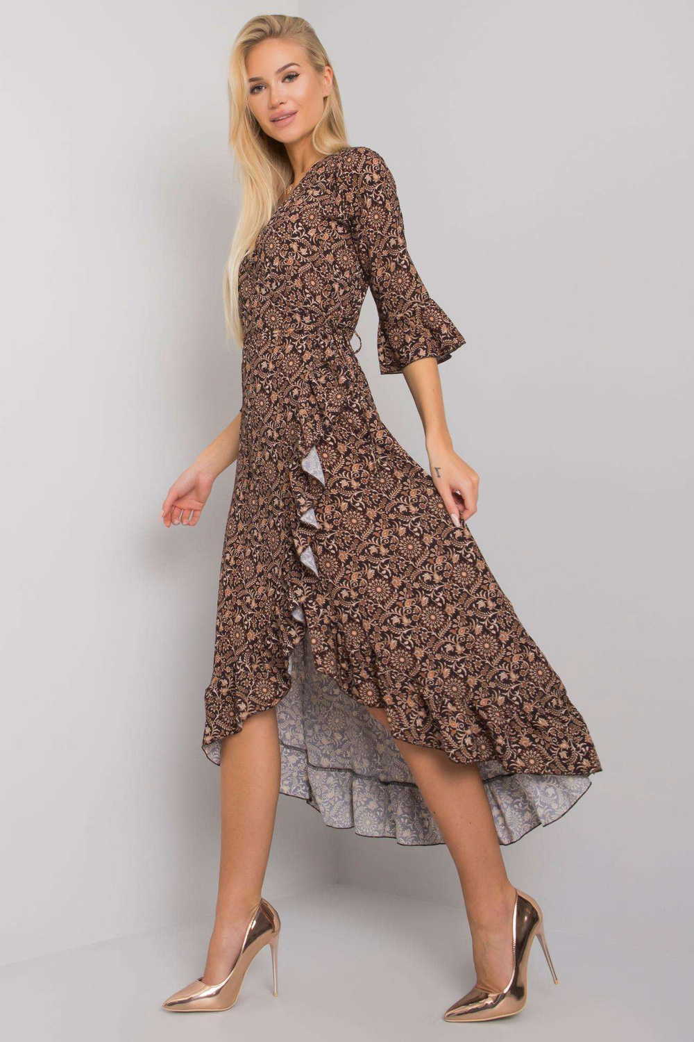 Kleita ar melnu rakstu ar volānu Williamson OCH BELLA . materiālssastāvs: 97% poliesters, 3% elastāns Mazgāšanas metode: veļas mašīna 30°C Modelis valkā S izmēru. Modeļa izmēri: augums 175 cm, krūtis 84 cm, viduklis 62 cm, gurni 93 cm. Izmēri