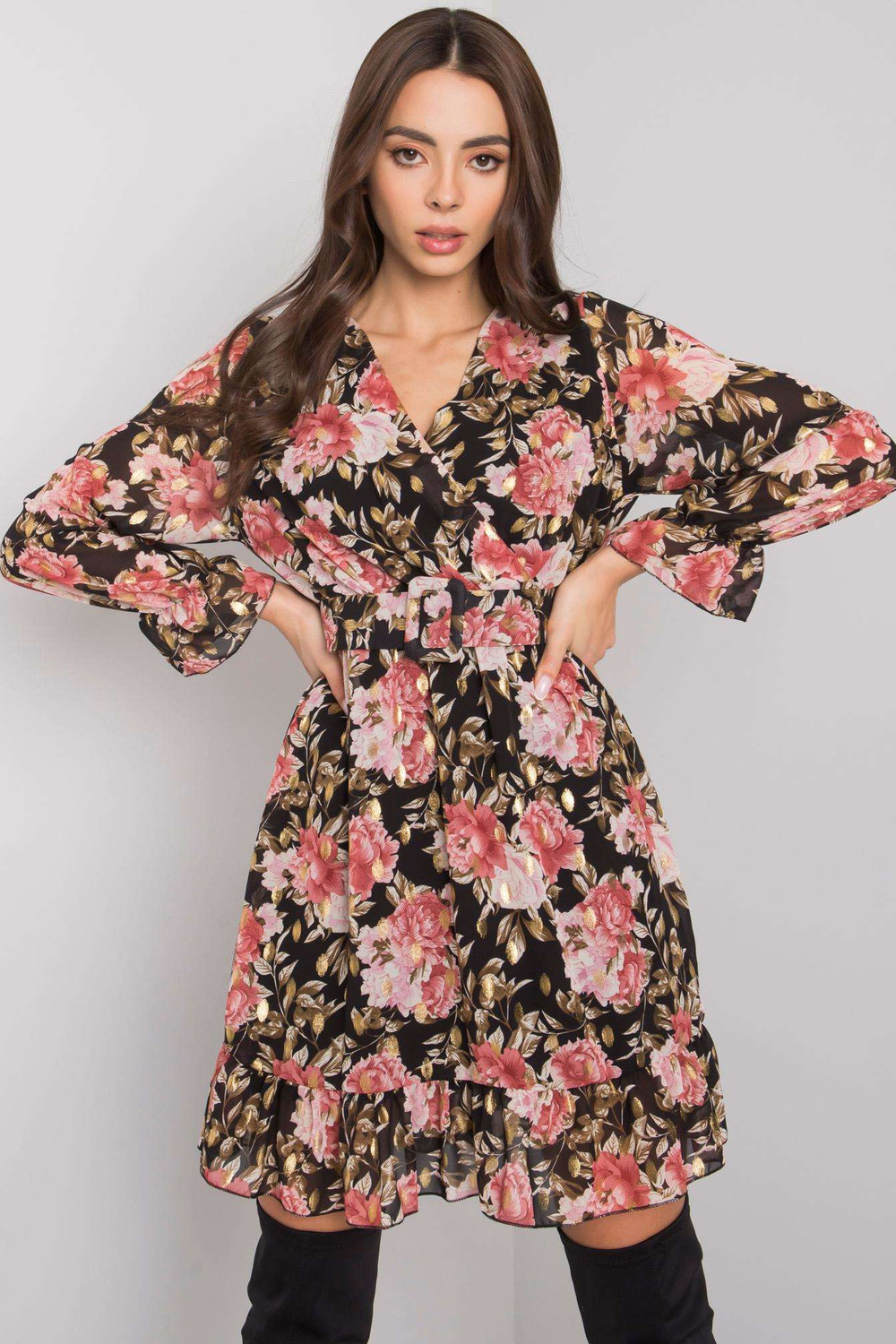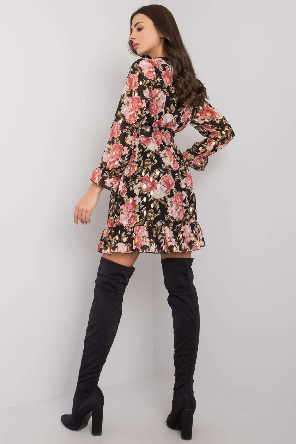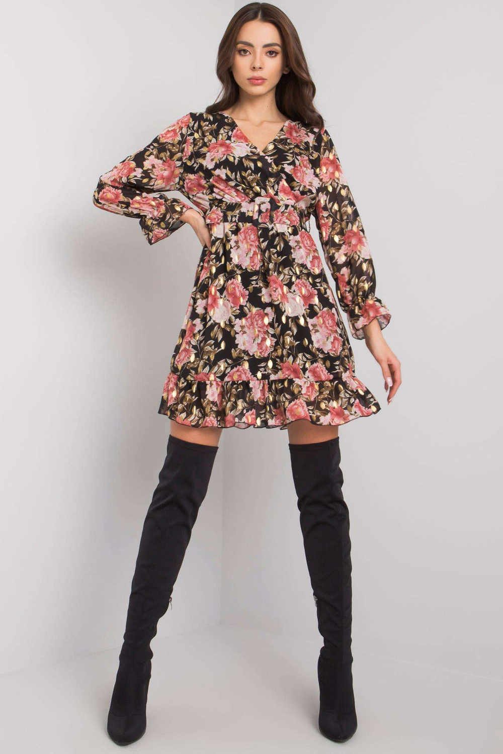 Melnā rozā kleita ar volānu Alisia. aksesuāri: odere, siksniņas materiālssastāvs: 50% poliesters, 45% viskoze, 5% elastāns mazgāšanas metode: veļas mašīna 30°C. Modelis valkā viena izmēra izmēru. Modeļa izmēri: augums 175 cm, krūtis 84 cm, viduklis 6