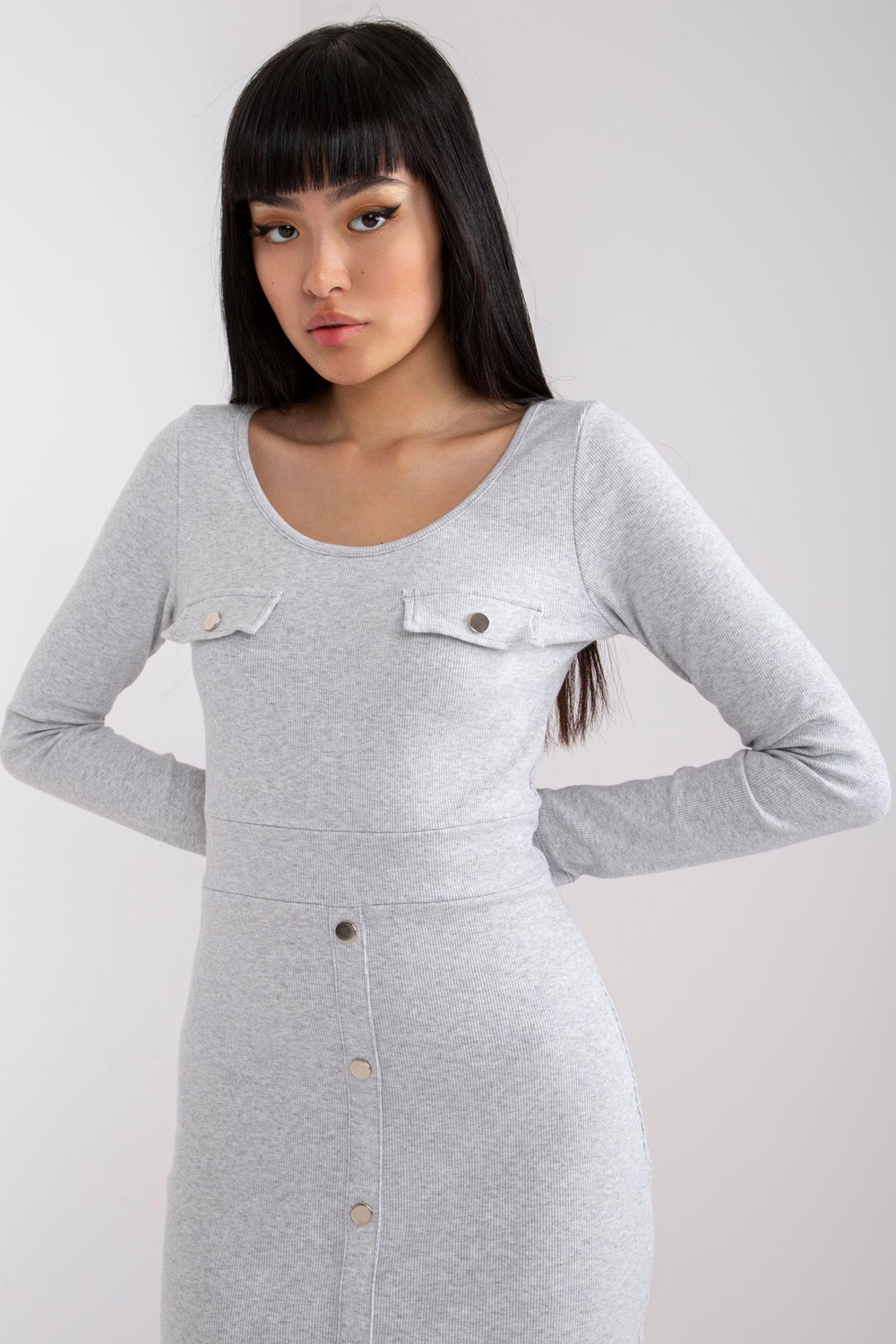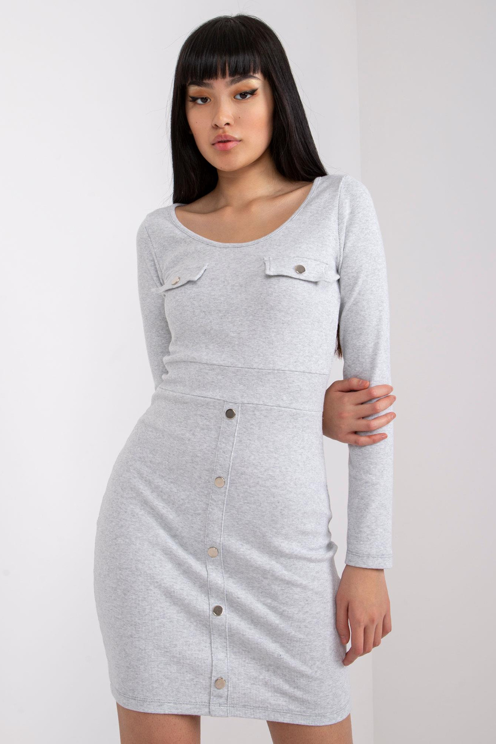 Gaiši pelēka melanža pieguloša kleita ar svītrām no Barletta RUE PARIS. aksesuāri: dekoratīvās pogas materiālssastāvs: 90% kokvilna, 10% elastāns mazgāšanas metode: mazgāšana veļasmašīnā 30°C Produkta kods: RV-SK-7437.67 dominējošais raksts: bez raksta Stils: ikdienas opp