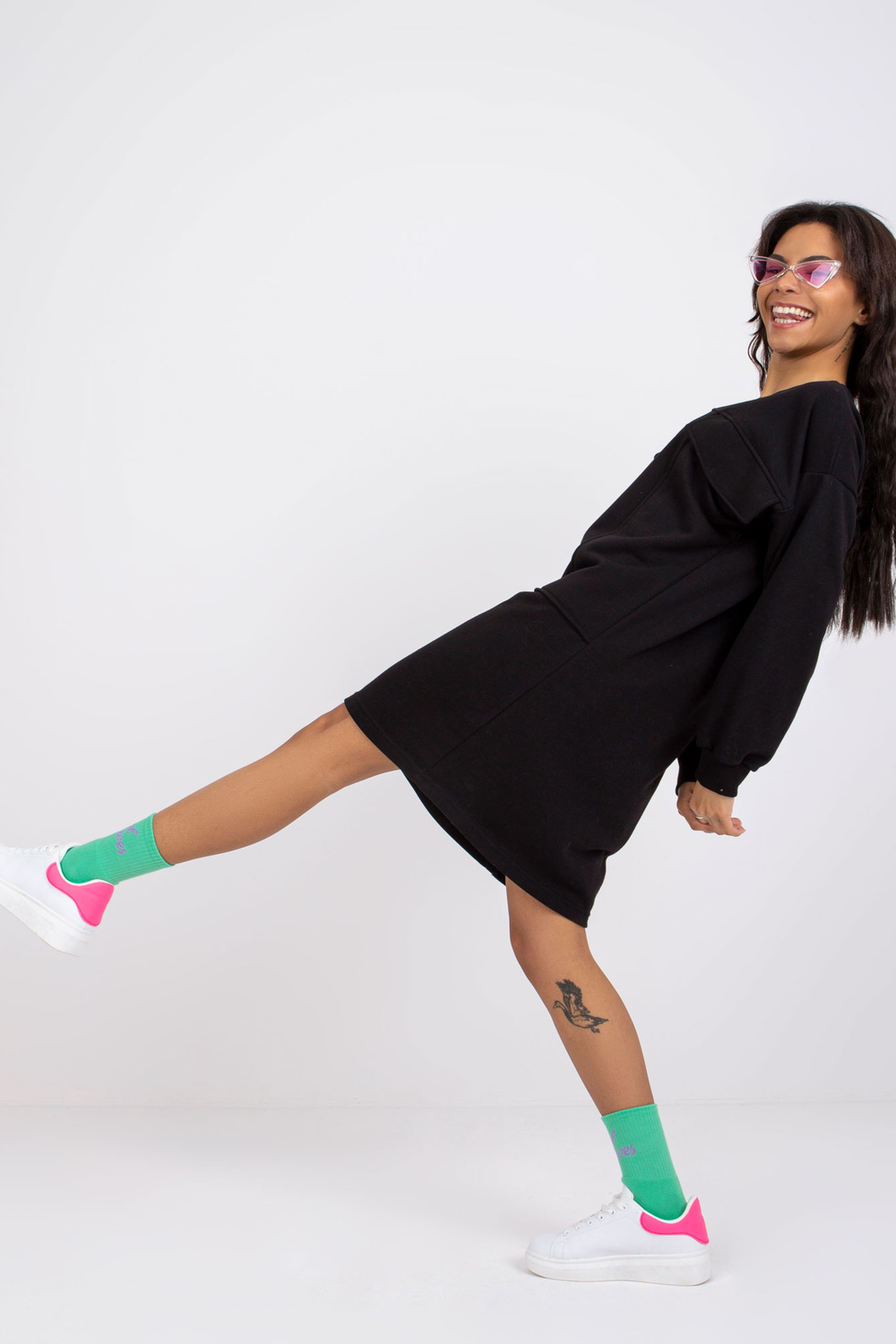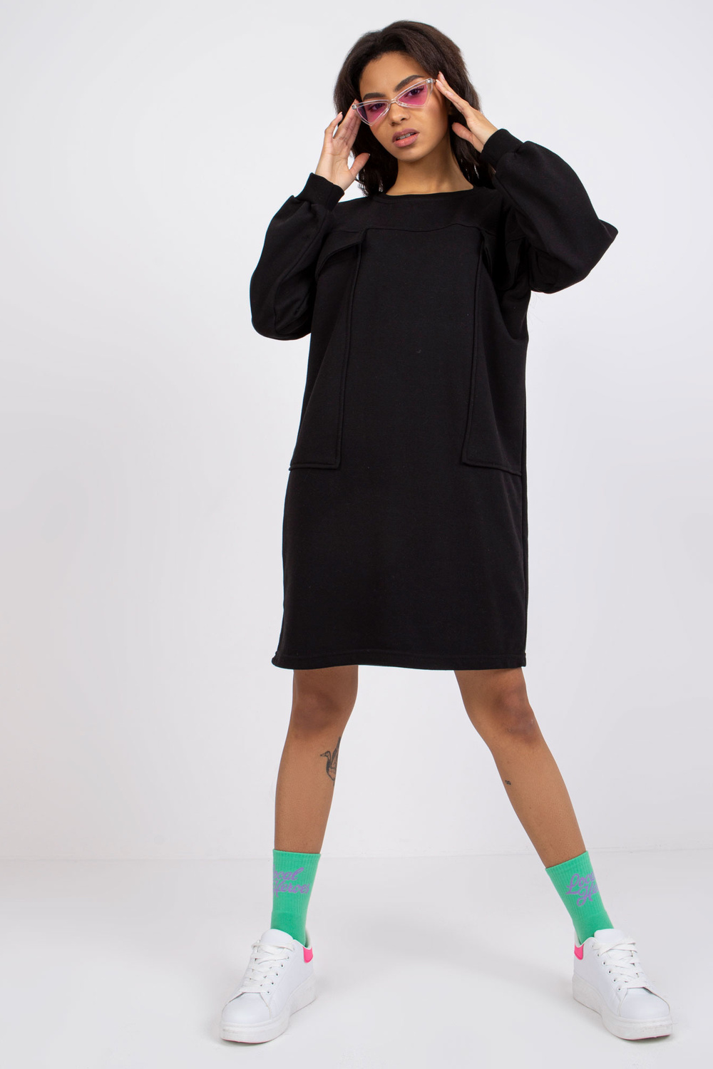 Melna kleita ar Carrara kabatām. materiāla sastāvs: 70% kokvilna, 30% poliesters mazgāšanas metode: mazgāšana veļasmašīnā 30°C Produkta kods: EM-SK-717.33X dominējošais raksts: bez raksta Stils: ikdienišķs Notikums: pilsētā, ikdienišķs Modelis valkā viena izmēra izmēru