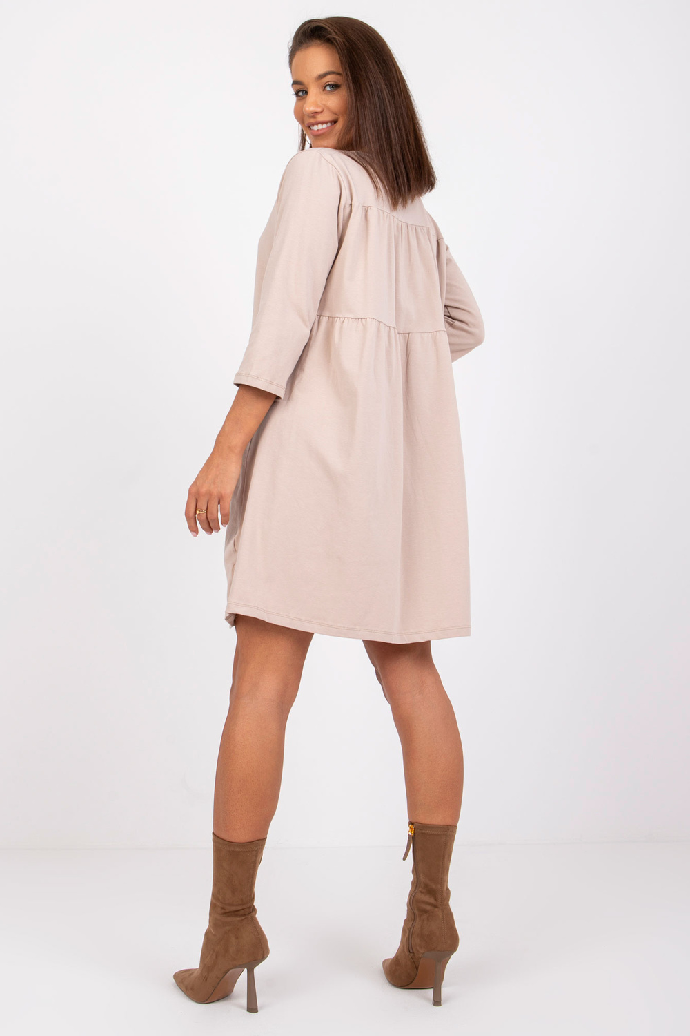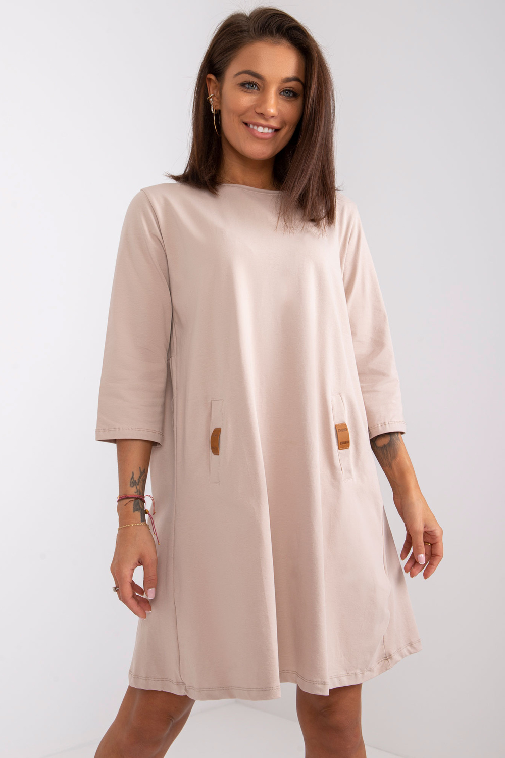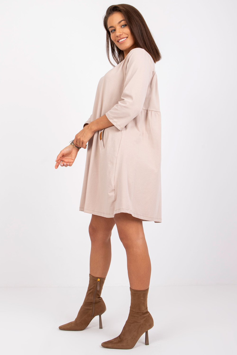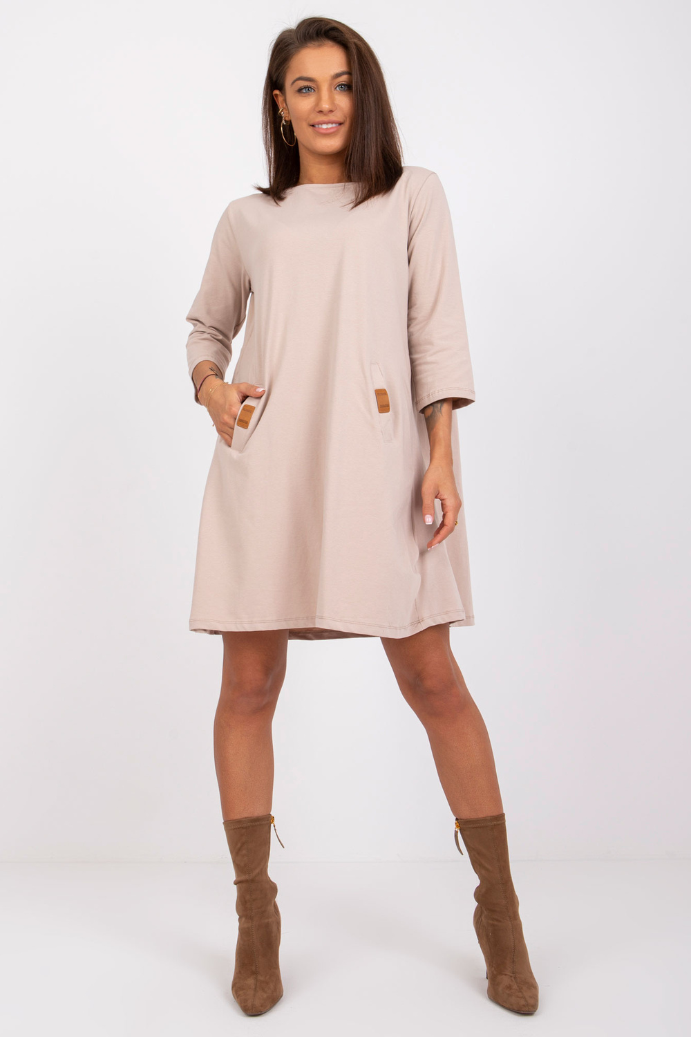 Gaiši bēša kleita ar Dalenne kabatām. materiāla sastāvs: 90% kokvilna, 10% elastāns mazgāšanas metode: veļas mašīna 30°C Produkta kods: RV-SK-6274.36P dominējošais raksts: bez raksta Stils: gadījuma iespēja: ikdienišķs, pilsētai, darbam Modelis ir wea