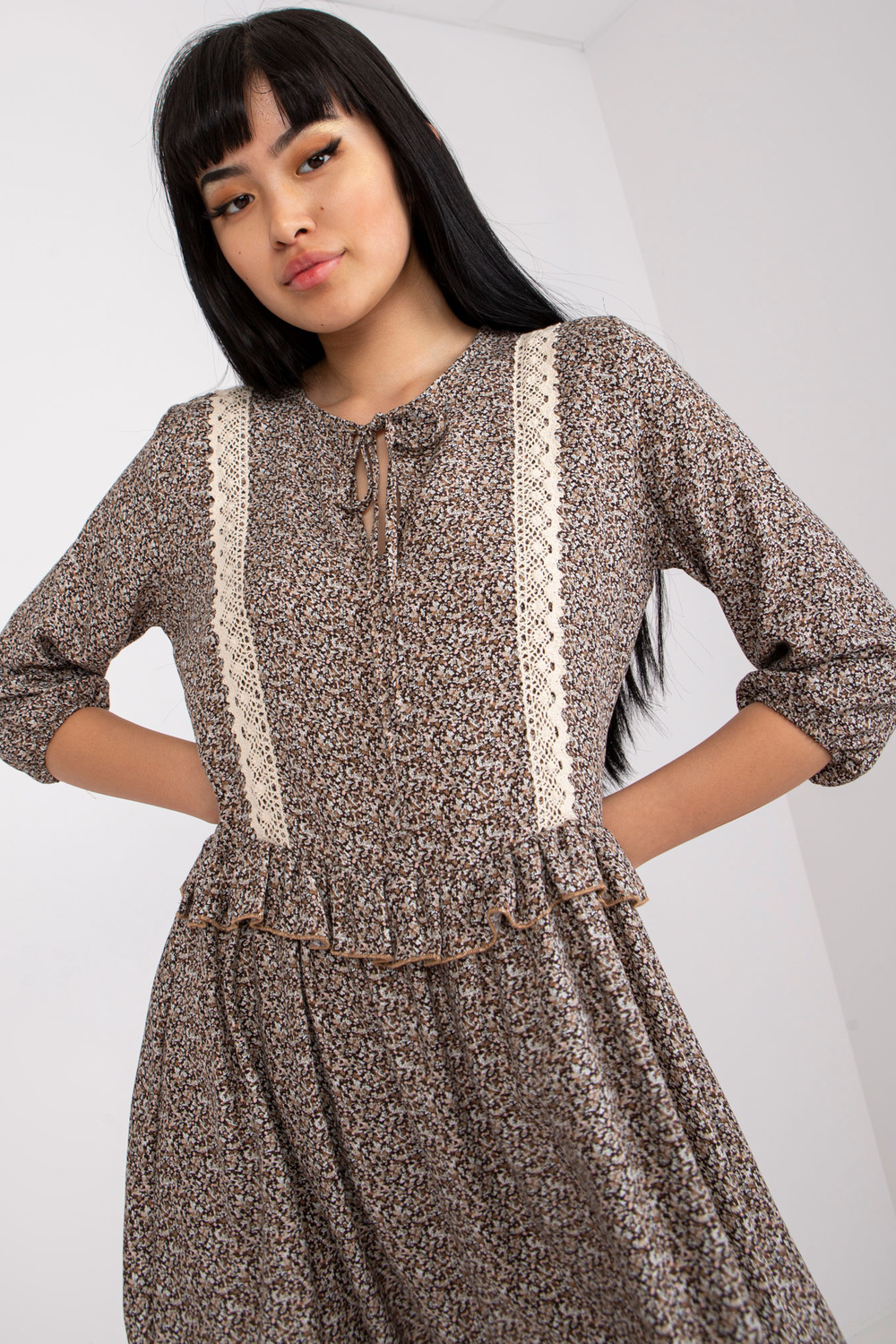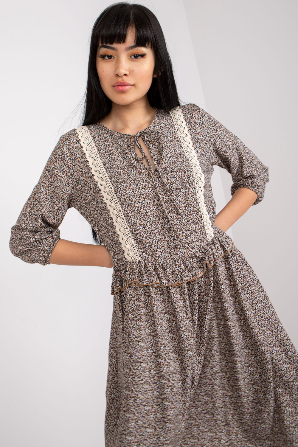 Brūna ikdienas kleita ar 3/4 piedurknēm RUE PARIS .