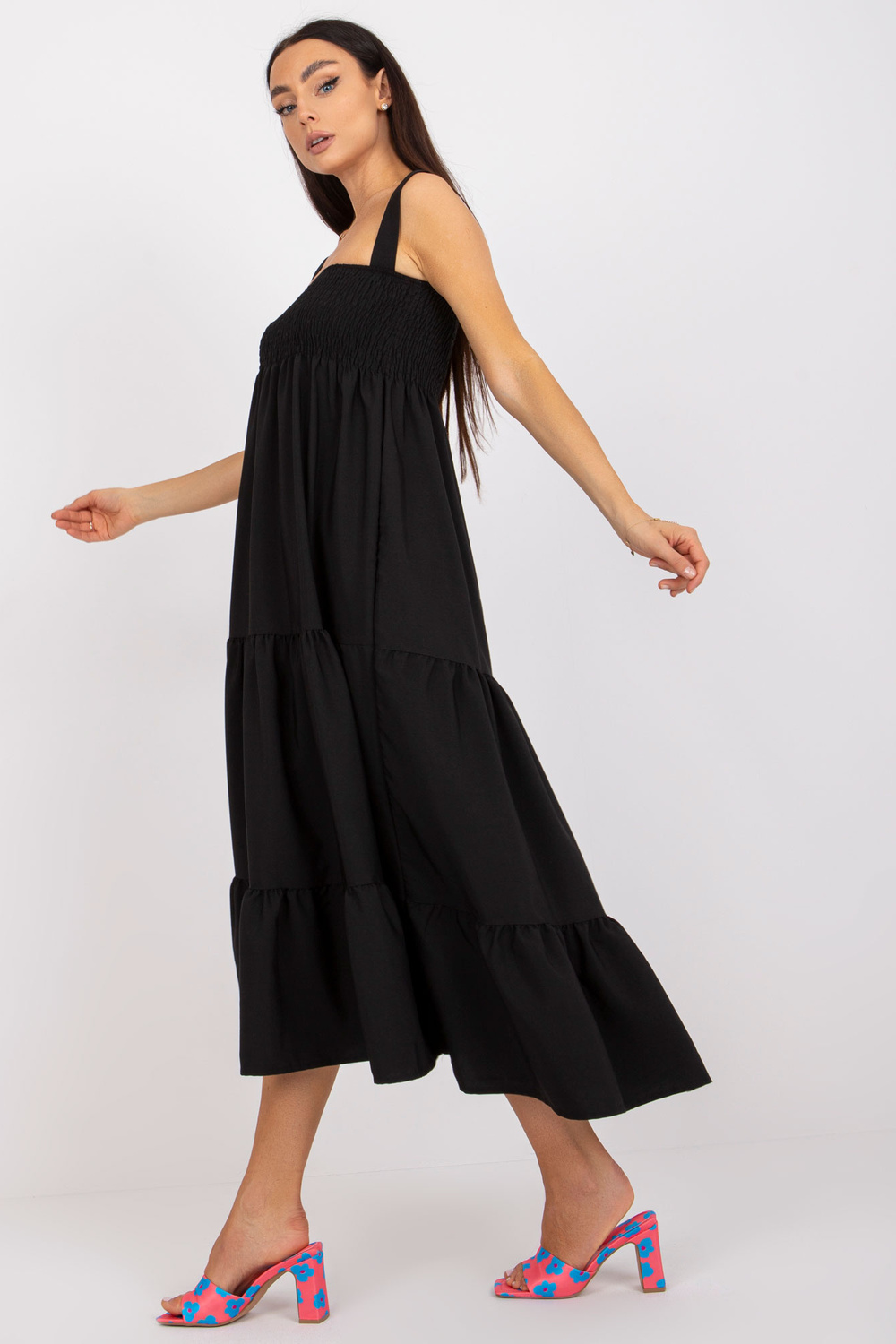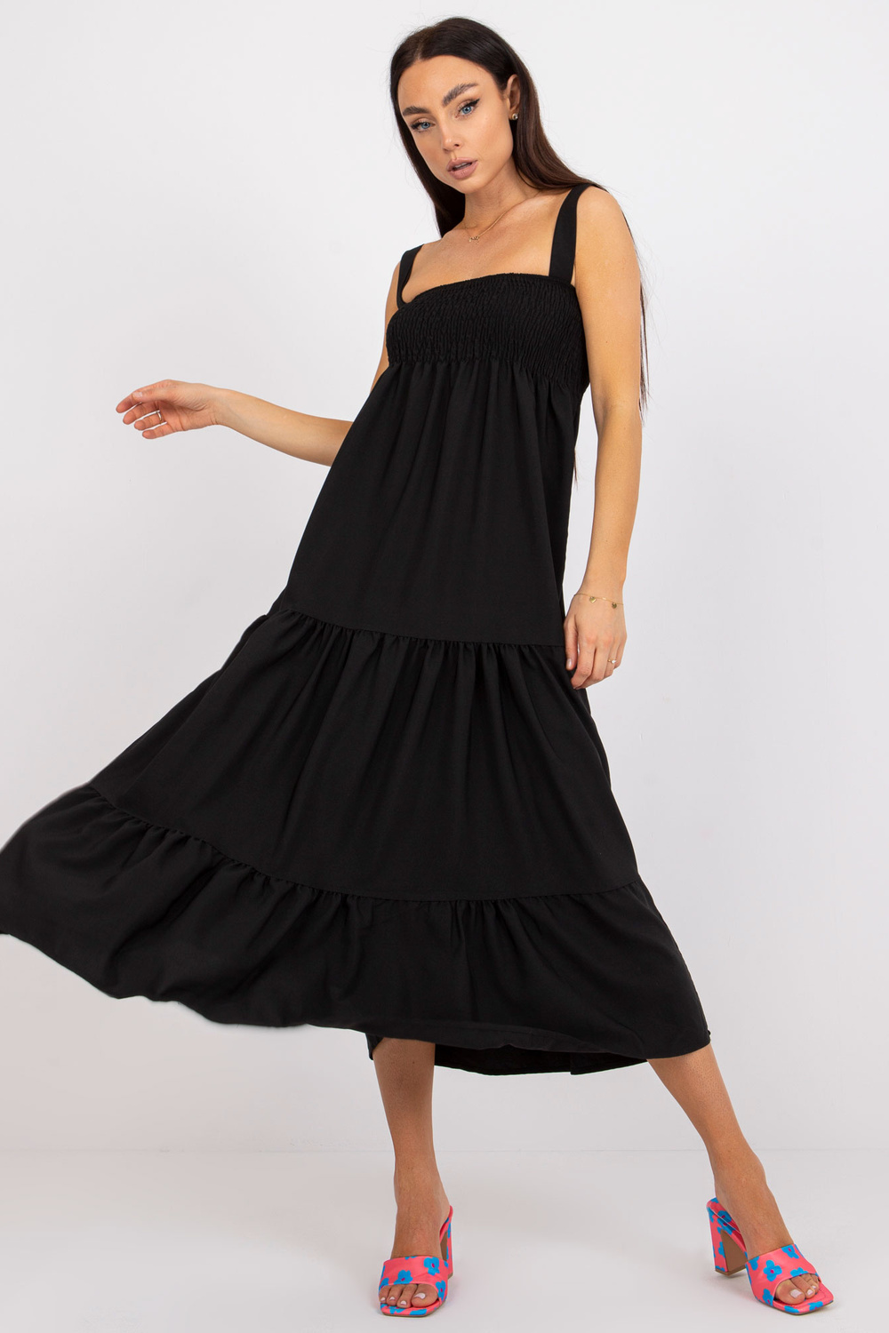 Kleitas izmēri S izmēram mērīti plakaniski: platums zem padusēm - 25 cm, kopējais garums - 128 cm.