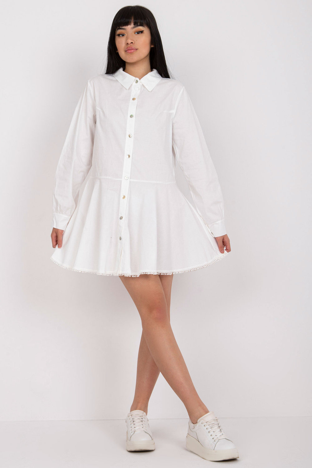 Balta kleita ar garām piedurknēm . materiāla sastāvs: 95% poliesters, 5% elastāns mazgāšanas metode: mazgāšana veļasmašīnā 30°C Produkta kods: DHJ-SK-6801.63P dominējošais raksts: bez raksta Stils: krekls, ikdienišķs gadījums: ikdienišķs, randiņam, pilsētai Modelis valkā div>
