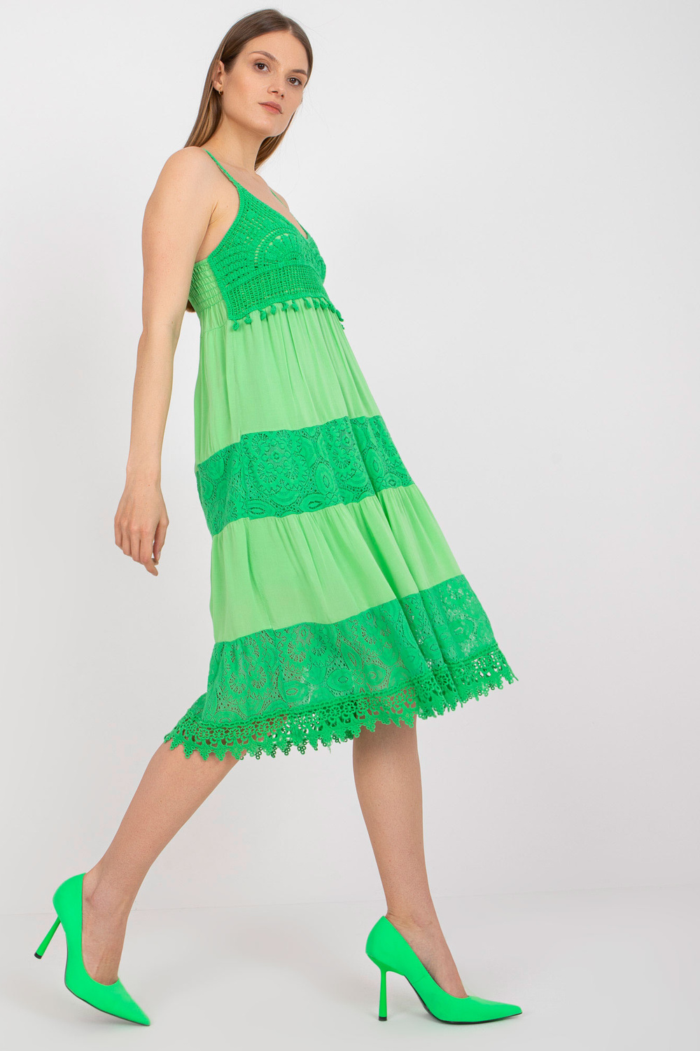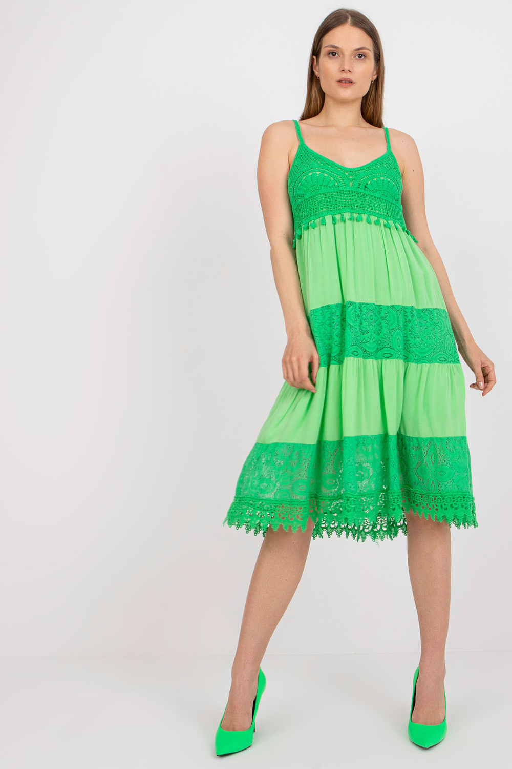 Kleitas izmēri S izmēram mērīti plakaniski: platums zem padusēm - 37 cm, kopējais garums - 109 cm.