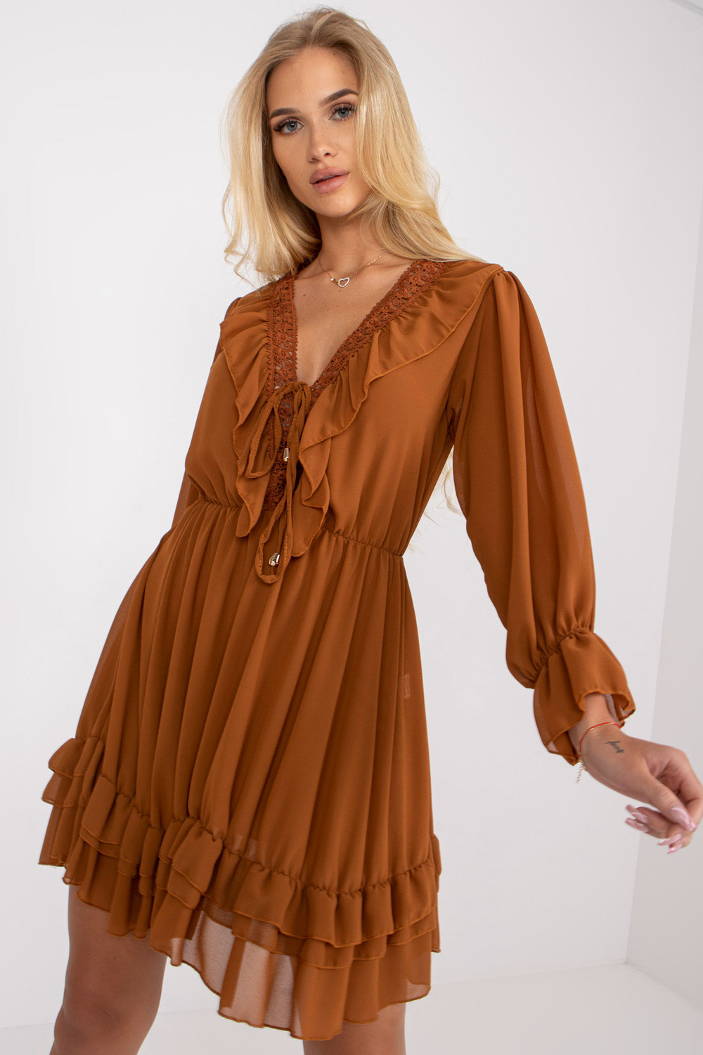 Brūna, īsa kleita ar flīsu un garām piedurknēm Winona OCH BELLA .