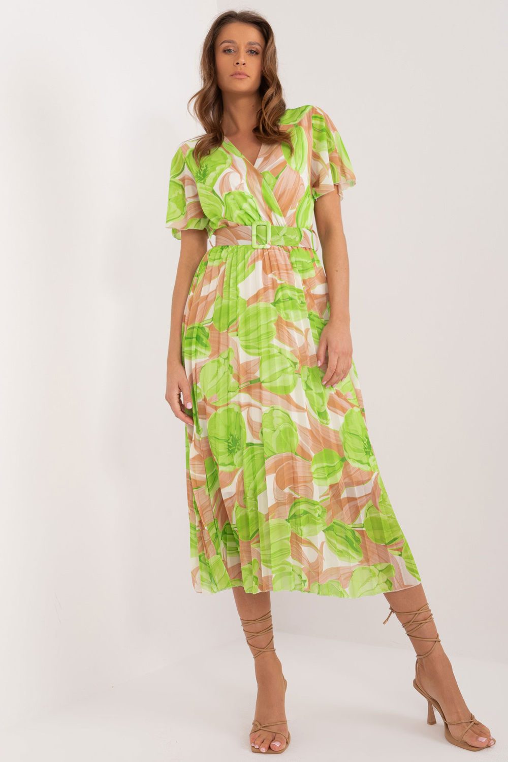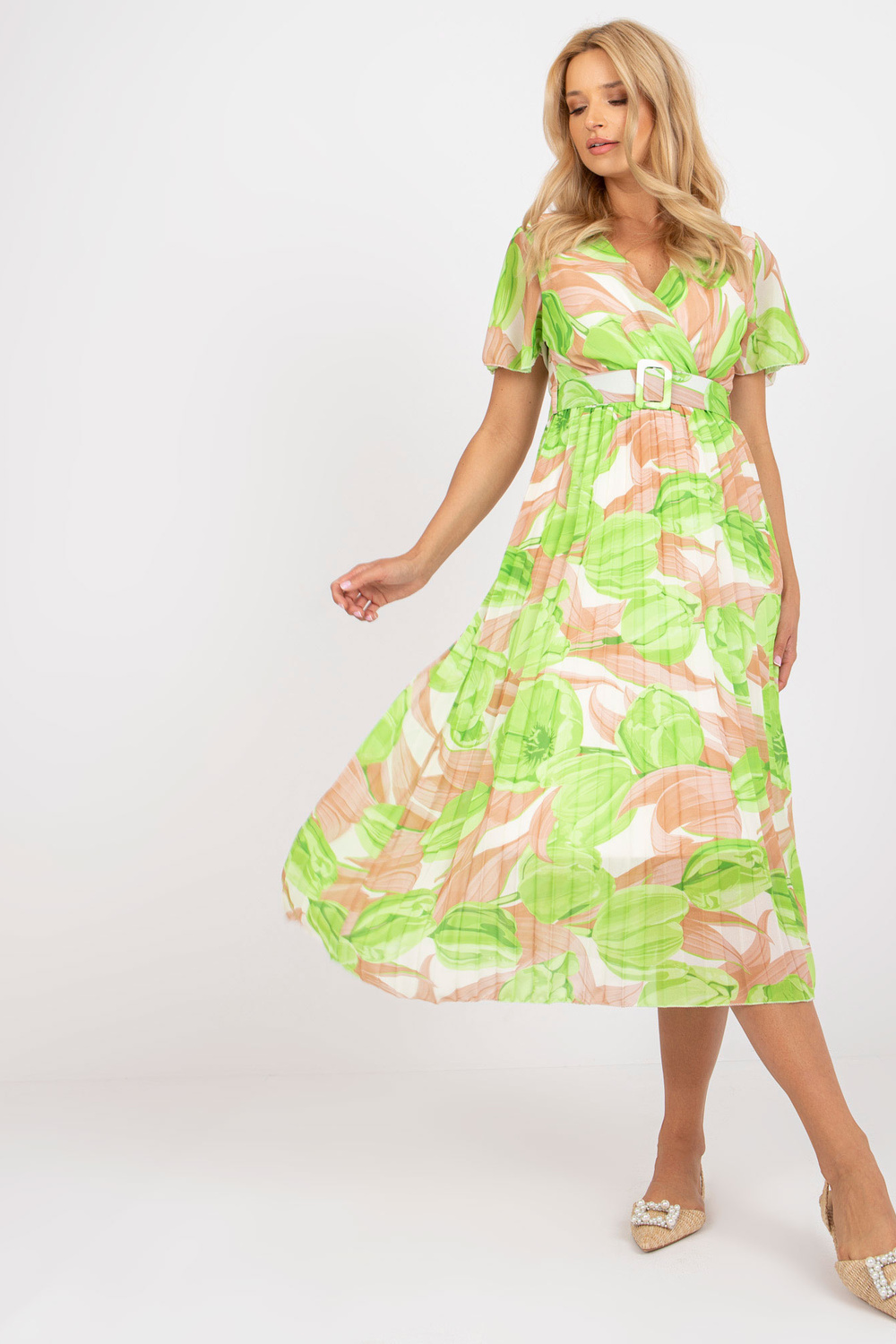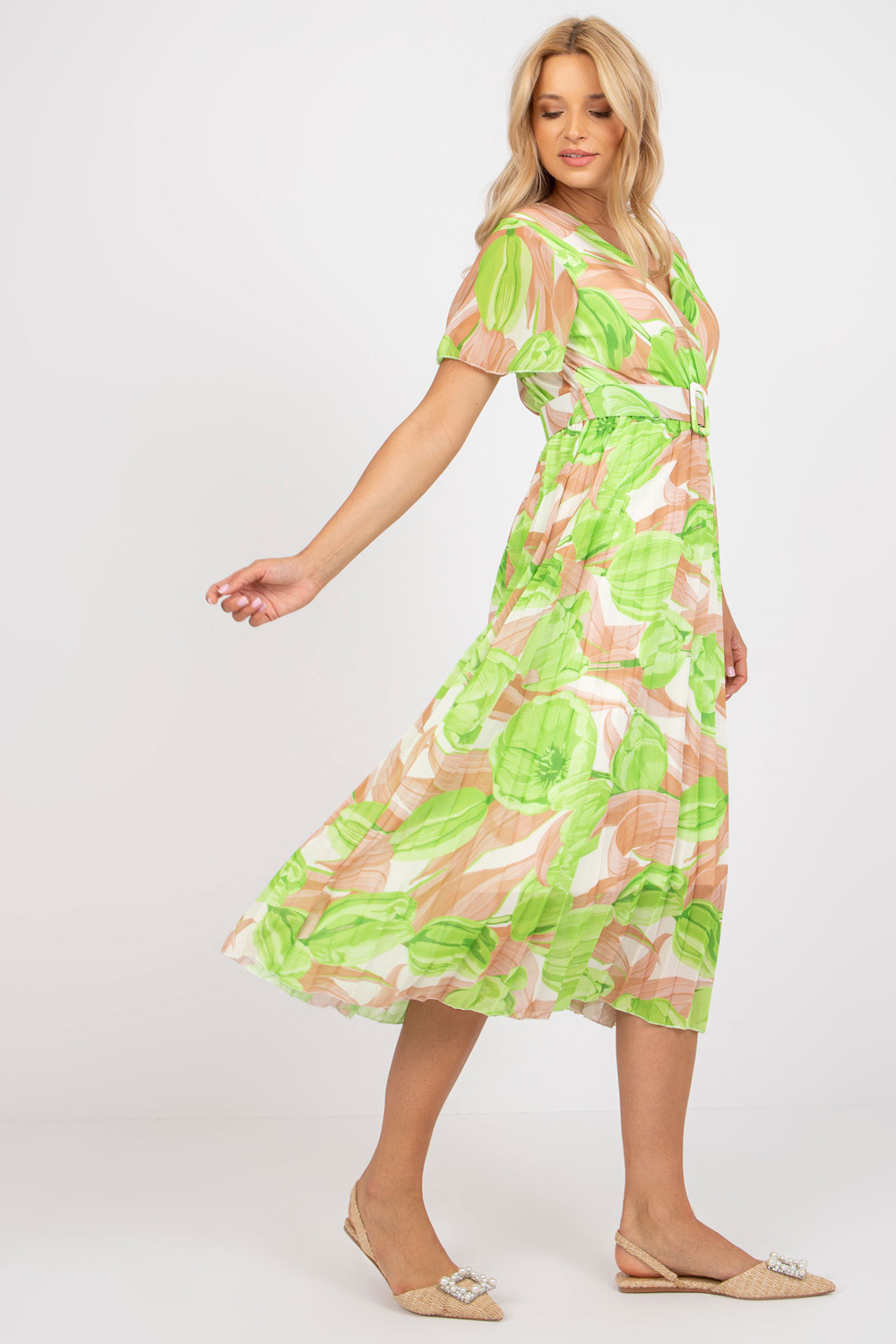 Bēša un zaļa midi kleita viena izmēra ar kroku. aksesuāri: odere, siksnas materiālssastāvs: 50% poliesters, 45% viskoze, 5% elastāns mazgāšanas metode: veļas mašīna 30°C Produkta kods: DHJ-SK-11331-2.32 dominējošais raksts: ziedi Stils: neformāls pasākums: