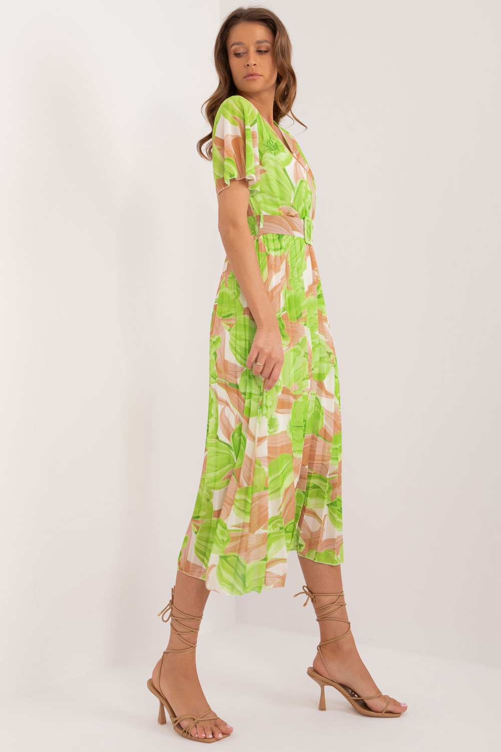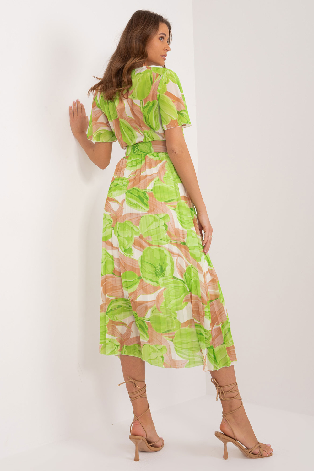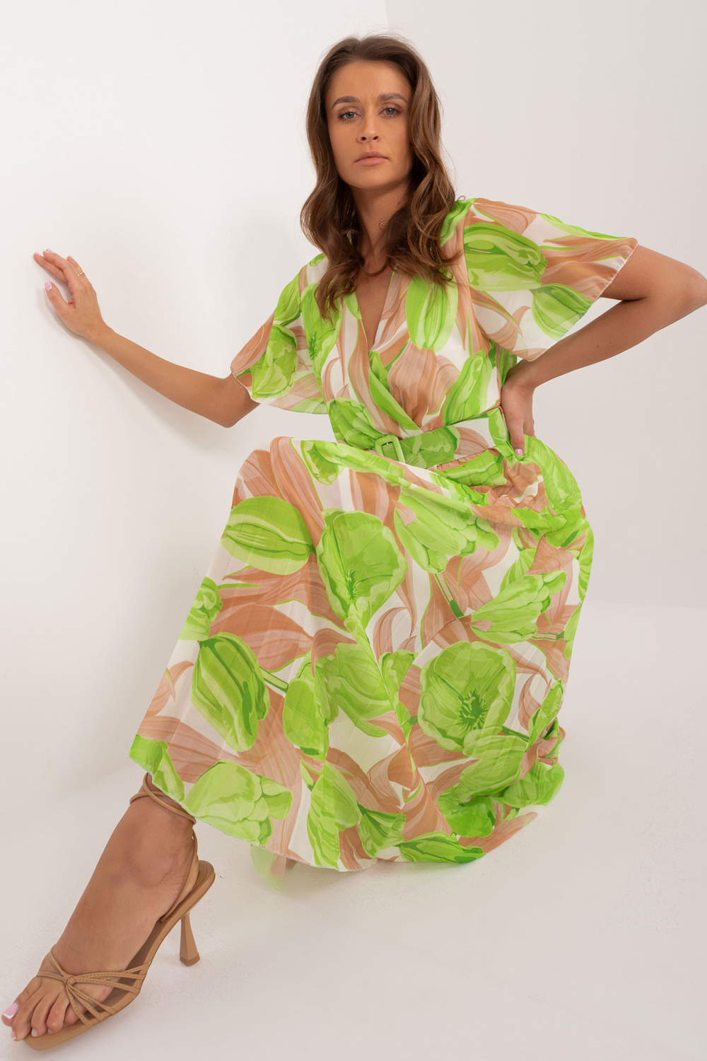 Bēša un zaļa midi kleita viena izmēra ar kroku. aksesuāri: odere, siksnas materiālssastāvs: 50% poliesters, 45% viskoze, 5% elastāns mazgāšanas metode: veļas mašīna 30°C Produkta kods: DHJ-SK-11331-2.32 dominējošais raksts: ziedi Stils: neformāls pasākums: