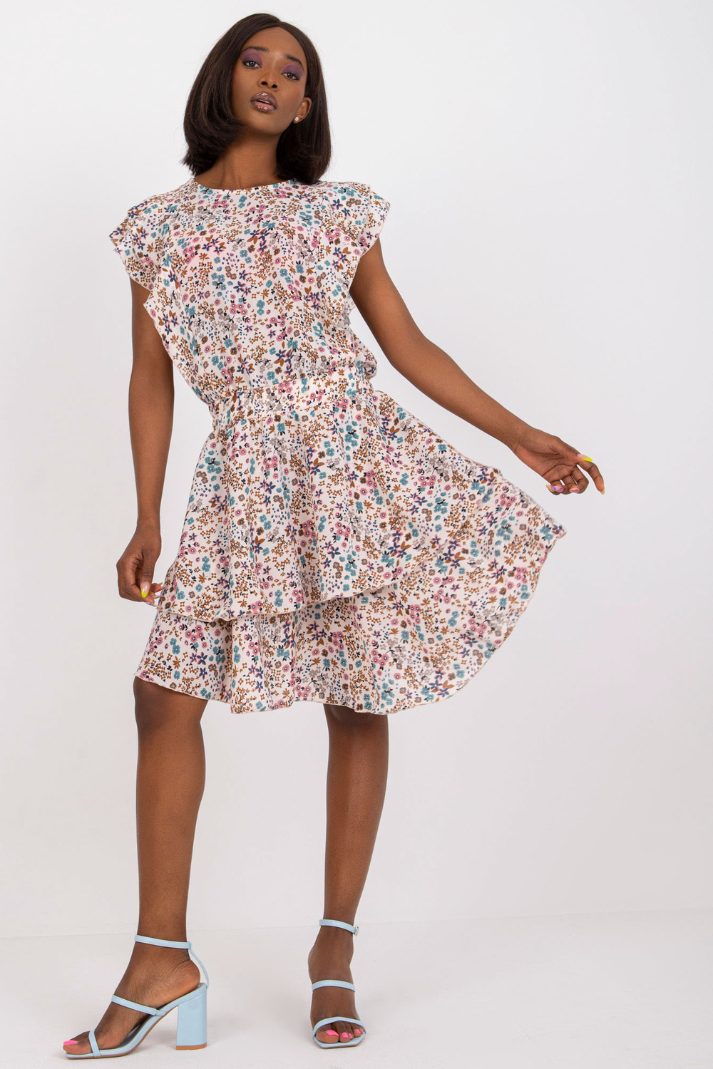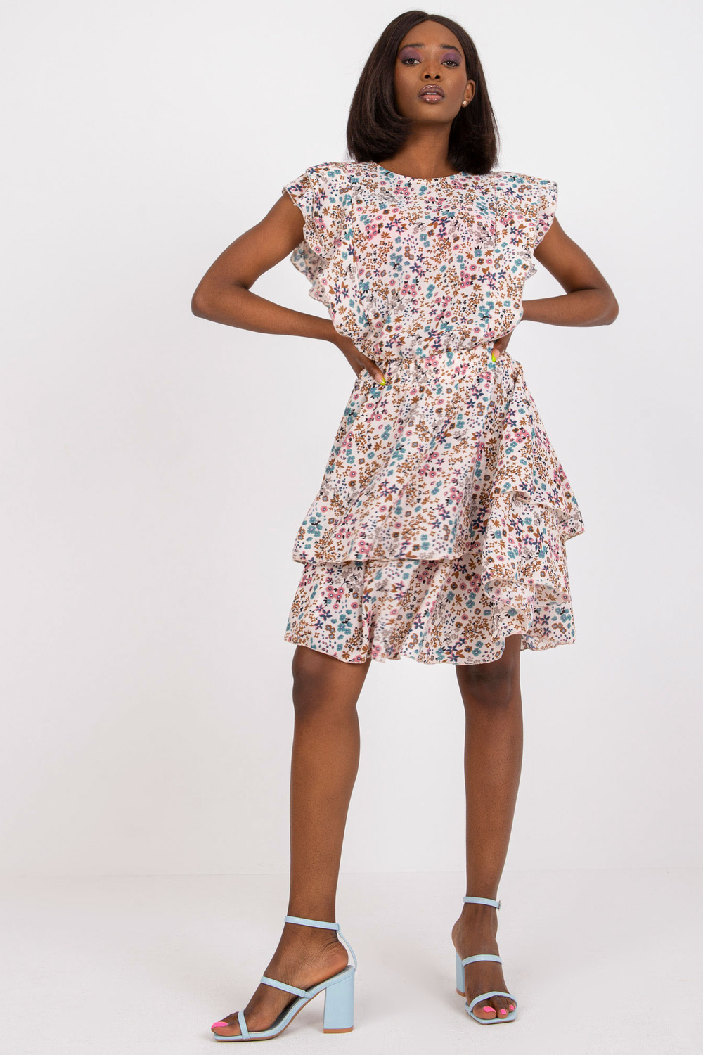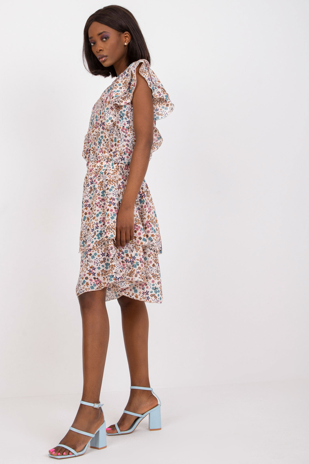 Bēša kleita ar volāniem un ziedu apdruku ZULUNA strong> .