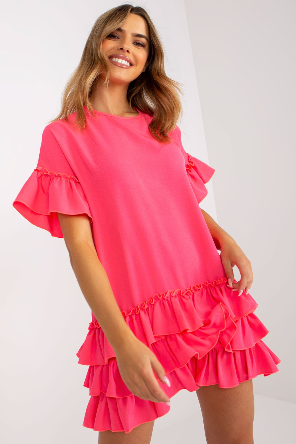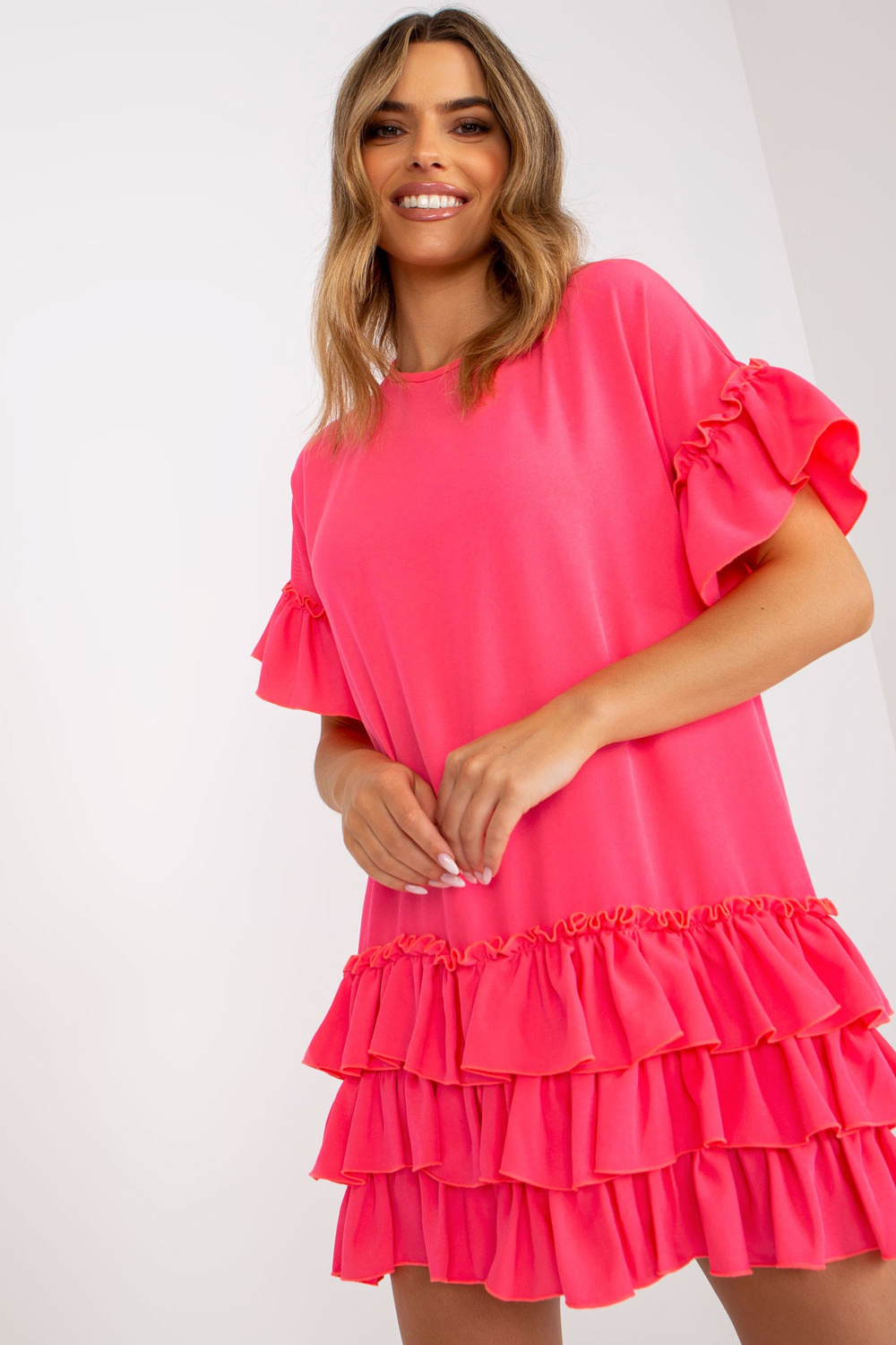 Fluopink kleita ar volāniem un īsām piedurknēm RUE PARIS .